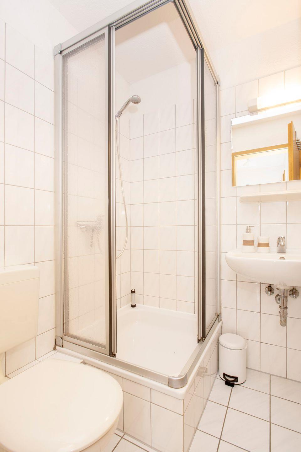 Der Wohn- Essbereich verfügt über eine offene Küche mit dazugehörigem Essplatz und angrenzendem Balkon. Dieser lädt mit einer gemütlicher Sitzecke und Blick in das idylische Grün zum Verweilen ein. Die integrierte Couchecke bietet TV und Stereoanlage. Das Schlafzimmer hat ein Doppelbett ( 160x200 ). Das helle Bad verfügt über eine Dusche mit Waschtisch und WC.
