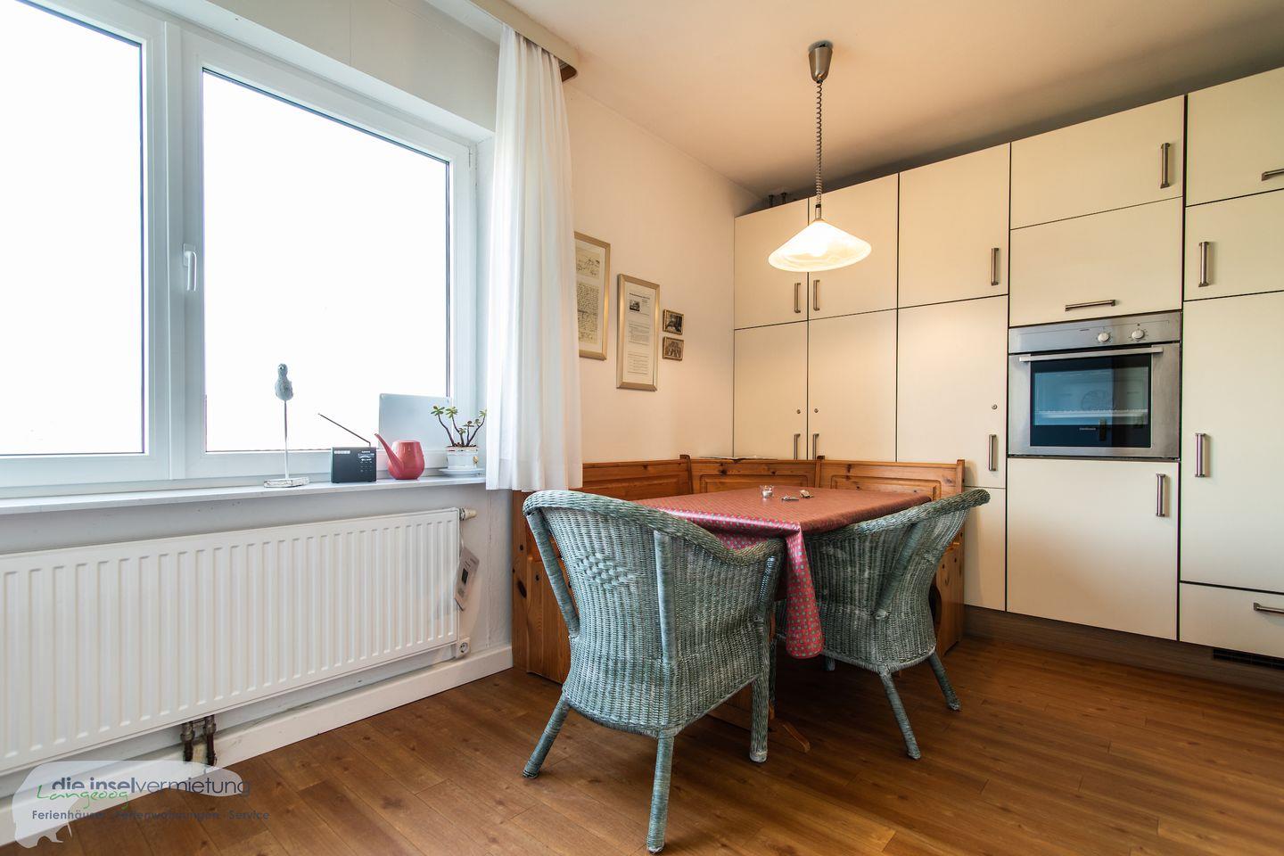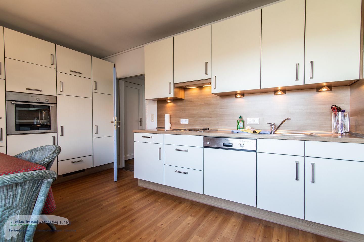 Der großzügige Wohn- und Essbereich hat eine gemütliche große Couchecke mit Blick auf die angrenzende Terrasse und über die bunten Wiesen. Der schöne Essplatz, ebenfalls mit Blick in die Natur, grenzt an die offene Küche. Die beiden Schlafzimmer haben einmal ein Doppelbett und das andere zwei Einzelbetten. Des Weiteren verfügt diese FeWo auf Langeoog über ein großes Bad mit barrierefreier Dusche und WC sowie einem extra Gäste-WC. Die Ferienwohnung ist eine Hunde-FeWo und bietet Ihrem Hund rundherum genügend Auslauf.