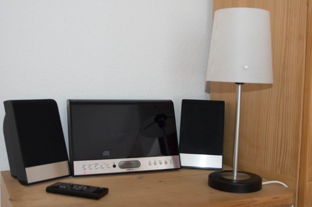 Das Appartement verfügt über einen geräumigen Wohnbereich, der mit einer offenen Küche sowie dem Essbereich verbunden ist. Bei der gemütlichen Couchecke befinden sich ein Fernseher sowie eine HiFi-Anlage. Vom Wohn- und Essbereich aus gelangen Sie ins Schlafzimmer, das mit einem Doppelbett (180x200 cm) sowie einem großen Kleiderschrank ausgestattet ist. Das helle Tageslichtbad hat ein WC, einen Waschtisch sowie eine Dusche.