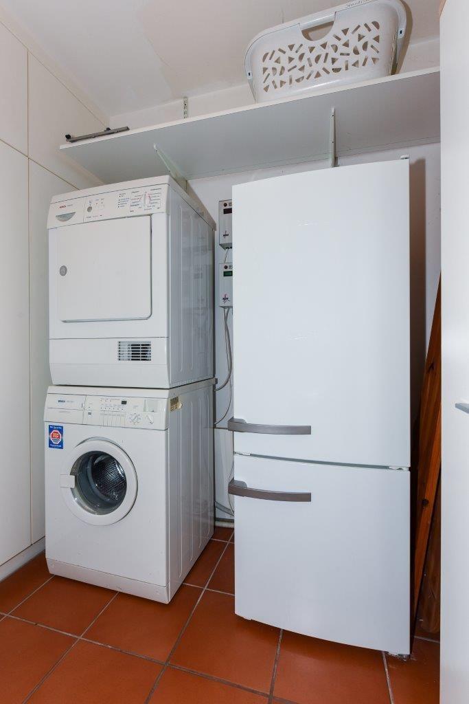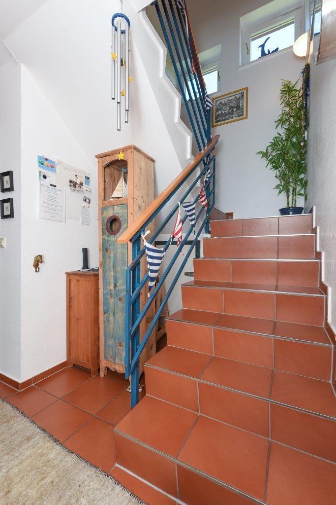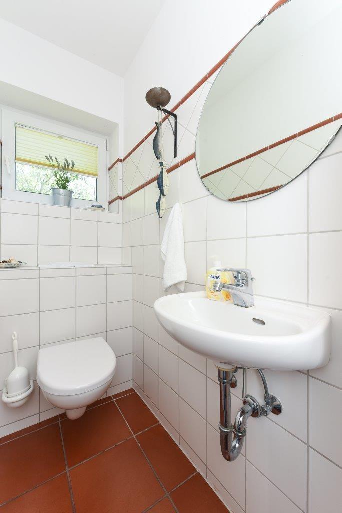 im Badezimmer, im Hauswirtschaftsraum sowie im Flur, ist der Fußboden gefliest.