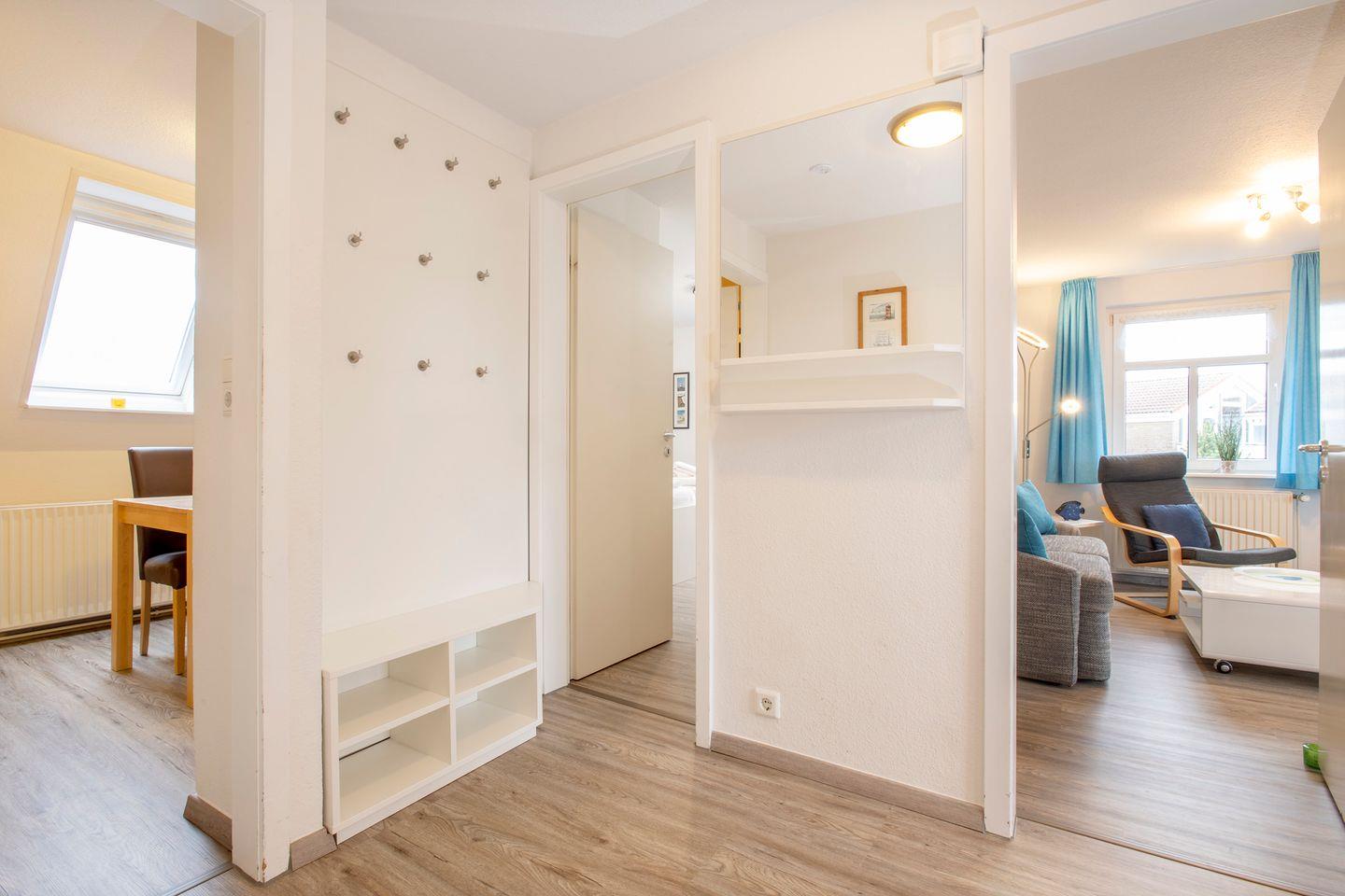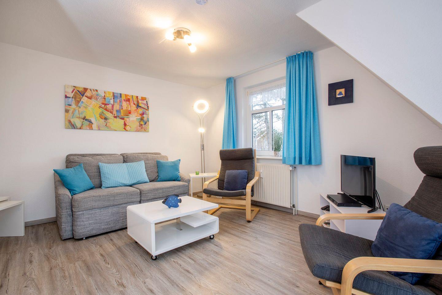 Unsere gemütliche Ferienwohnung „Strandvogt 3“ im ersten Obergeschoss des Ferienhauses bietet mit circa 50 Quadratmetern Platz für bis zu vier Personen.