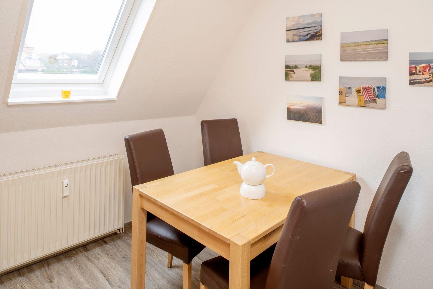 auf Langeoog. Am Esstisch in der Küche finden bis zu vier Personen Platz zum Schlemmen.