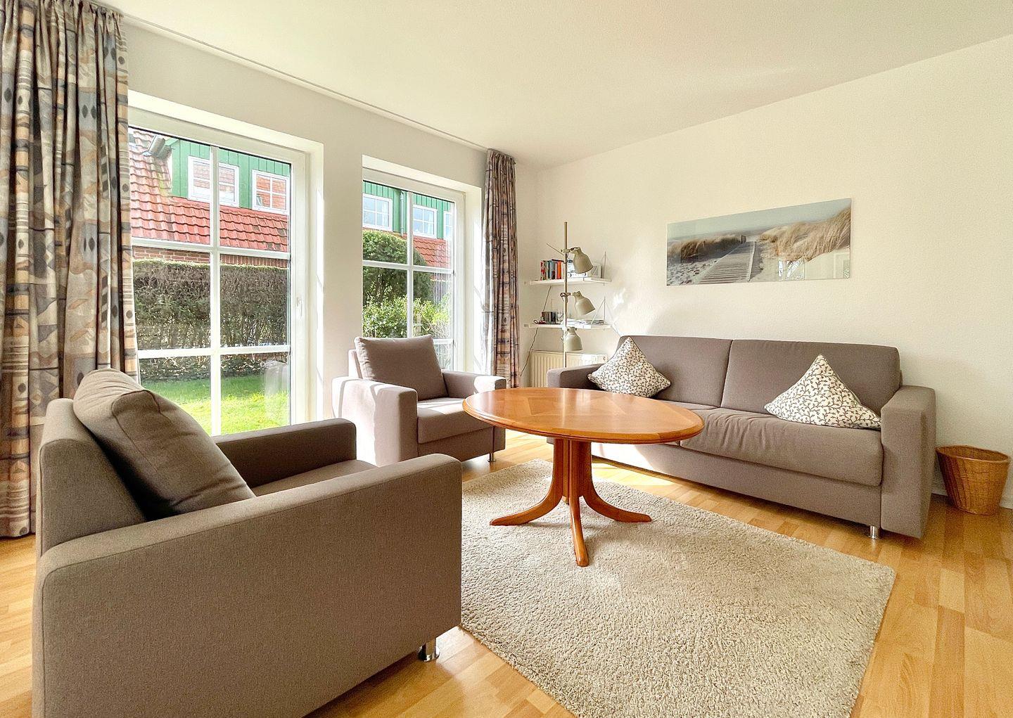 Gemütliche Ferienwohnung Edes Huus am ruhigen Ortsrand von Langeoog mit Terrasse und Gartenblick.