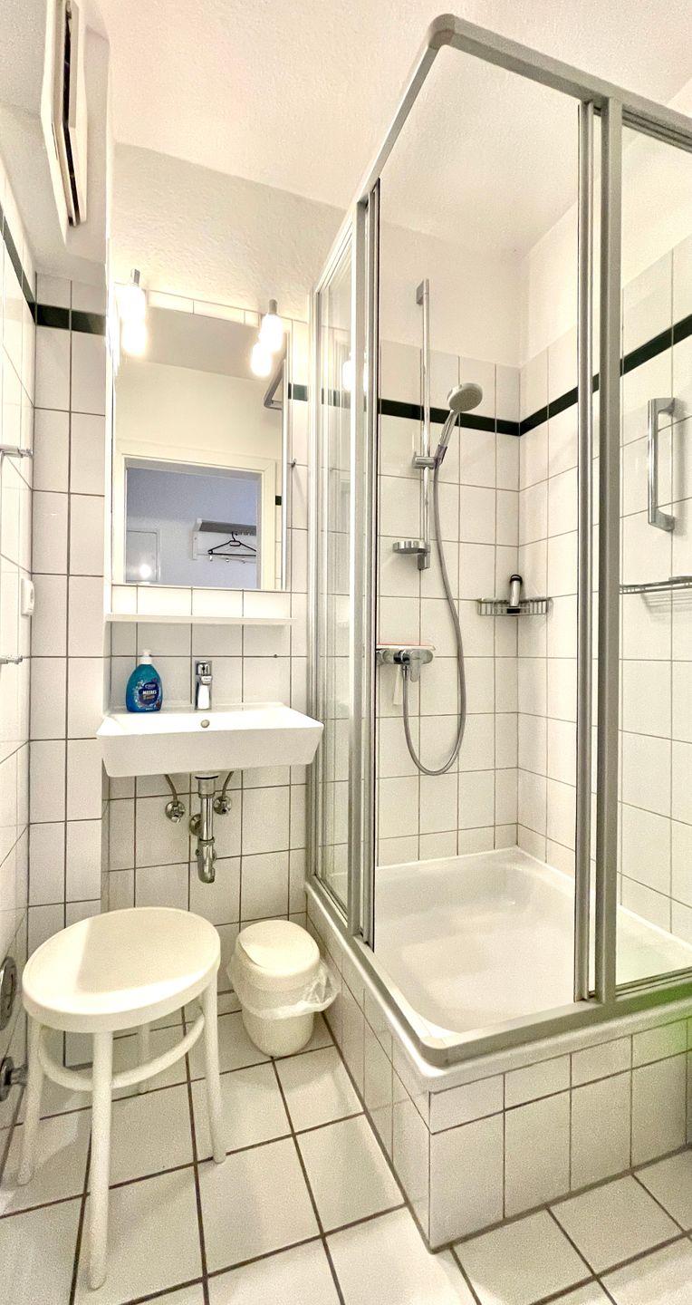 Das Bad enthält Dusche und WC.