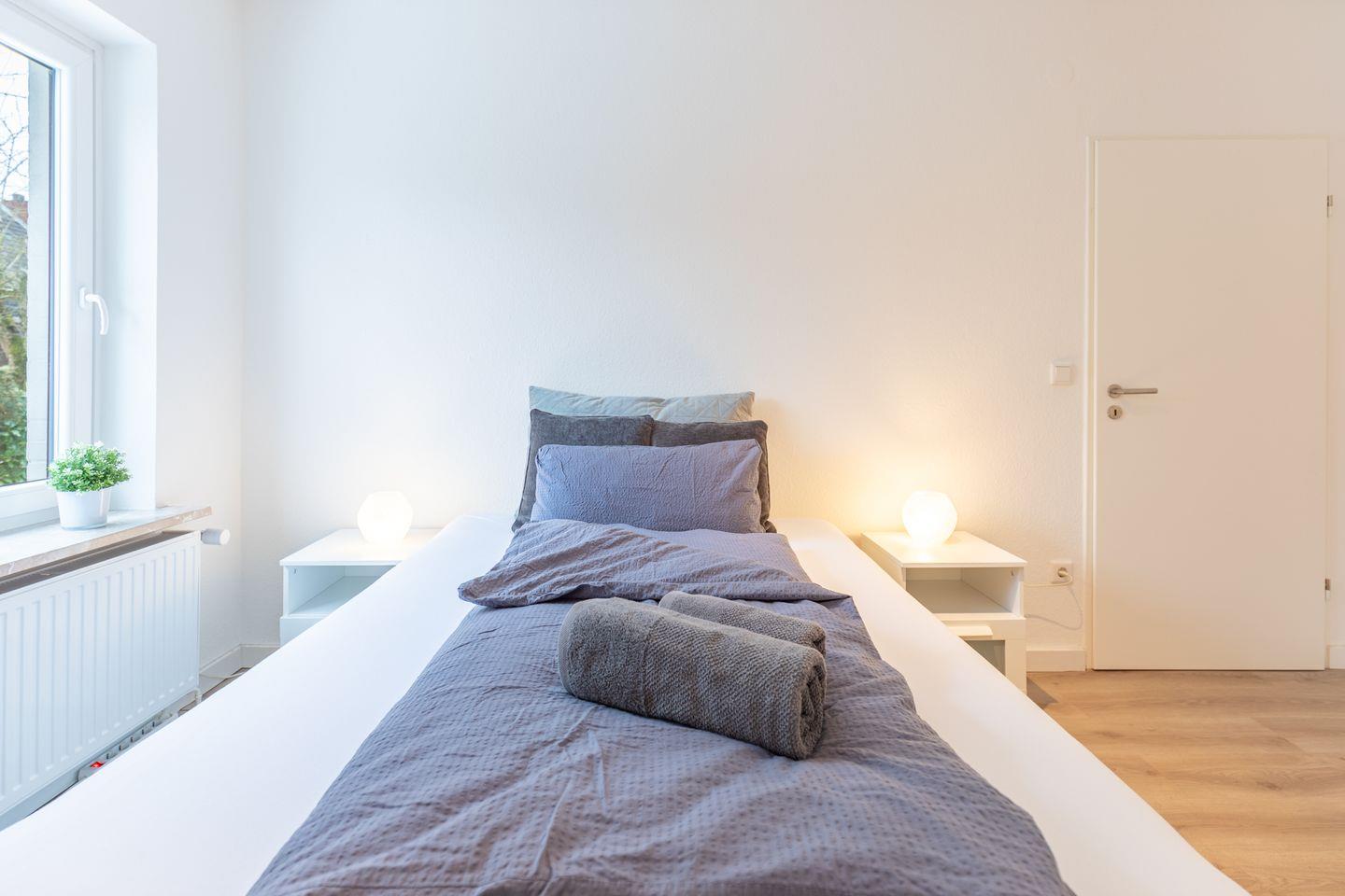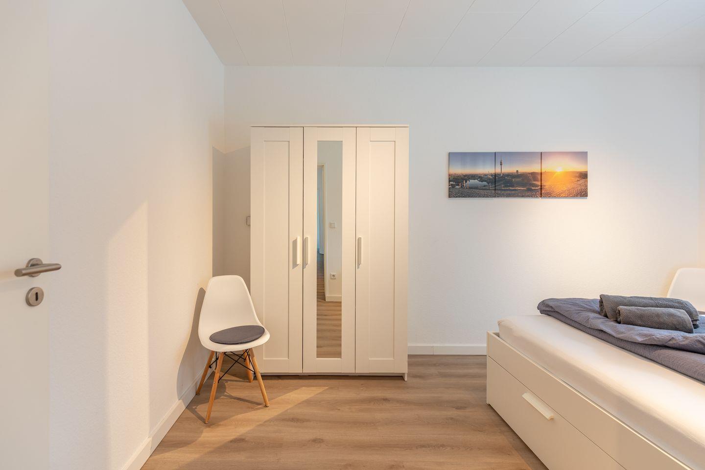 Sie können mit bis zu 4 Personen in den 2 Schlafzimmern übernachten. Das helle erste Schlafzimmer bietet Ihnen ein Doppelbett mit der Größe 1,80 × 2,00 m, sowie einen großen Kleiderschrank. Das zweite Schlafzimmer verfügt über ein kleineres Doppelbett mit der Größe 140 × 200 cm, sowie ebenfalls einen Kleiderschrank mit einem Ganzkörperspiegel. Ein Kinderbett, sowie ein Hochstuhl stehen Ihnen für die Kleinen mitreisenden ebenfalls zur Verfügung.