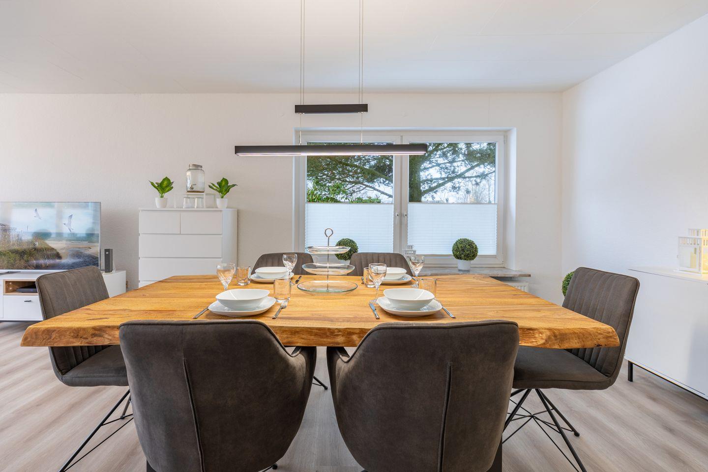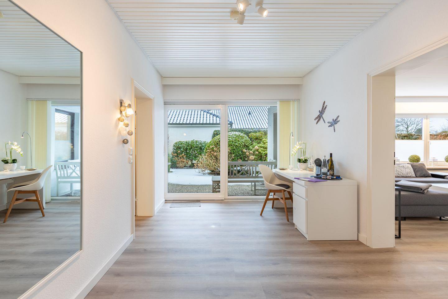 Haus Libelle in Leck: modern renoviertes (2023) 110 m² Parterre-Haus mit 3 Zimmern, 2 Schlafzimmern, Bad mit Dusche plus Gäste-WC. Für bis zu 4 Personen, mit Babybett, Hochstuhl und 1 Zustellbett. Komfort mit WLAN, TV, Radio/HiFi, Schreibtisch, Waschmaschine zur Eigennutzung. Voll ausgestattete Küche mit Induktion, Backofen, Spülmaschine und Nespresso. Eingezäunter Garten mit Möbeln, Liegewiese, Strandkorb und Gasgrill, Heizpilz auf der Terrasse, Privatparkplatz. Einkauf und Restaurants ca. 1,4 km, Bahnhof 11 km, Strand 20 km.