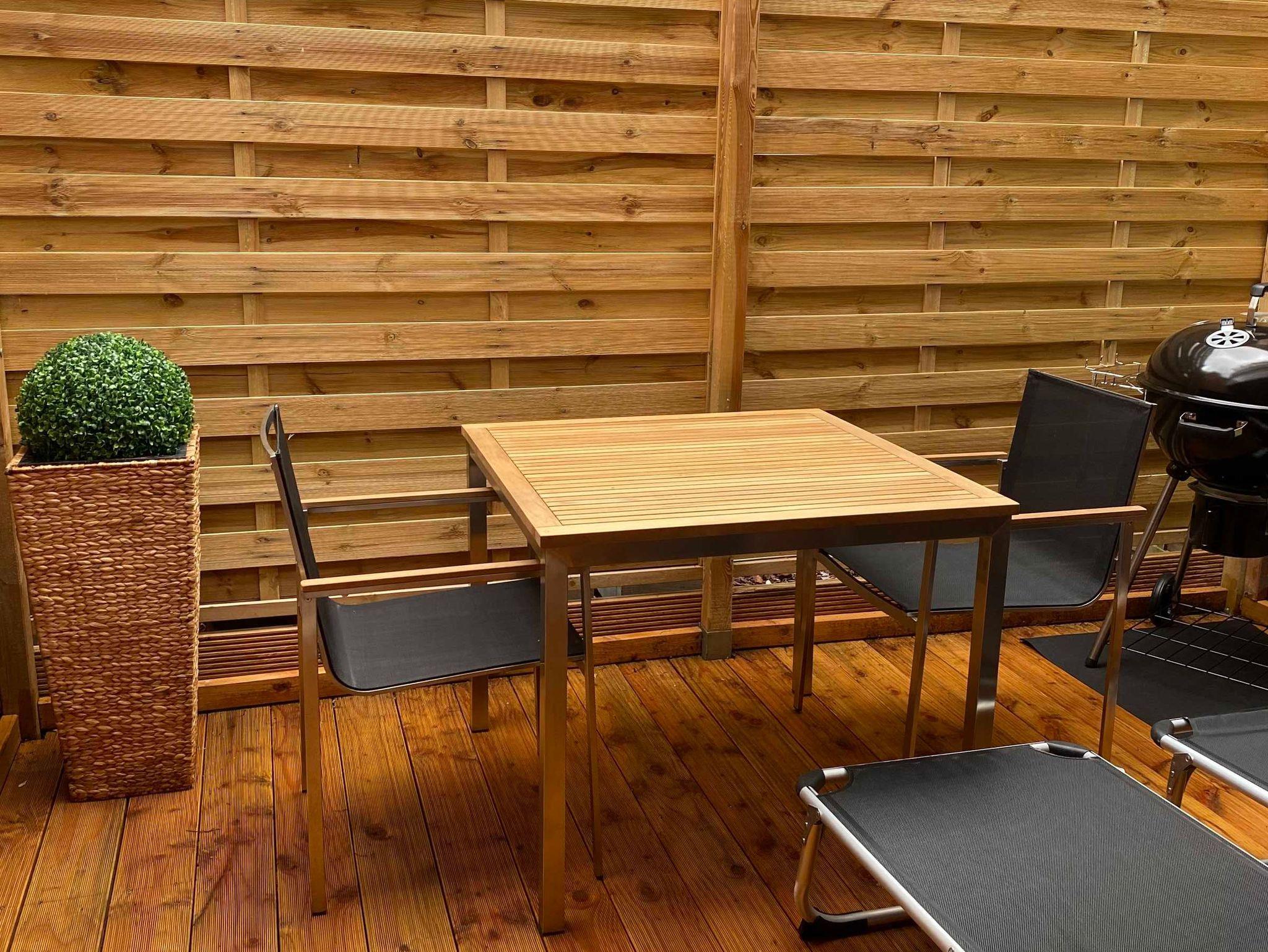 Die Ferienwohnung Altstadt Perle hat eine eigene Garage, wo Ihr Auto sicher und ohne Unkosten geparkt werden kann. Außerdem befindet sich im EG der Innenhof mit Sitz-Liege- und Grillmöglichkeit.