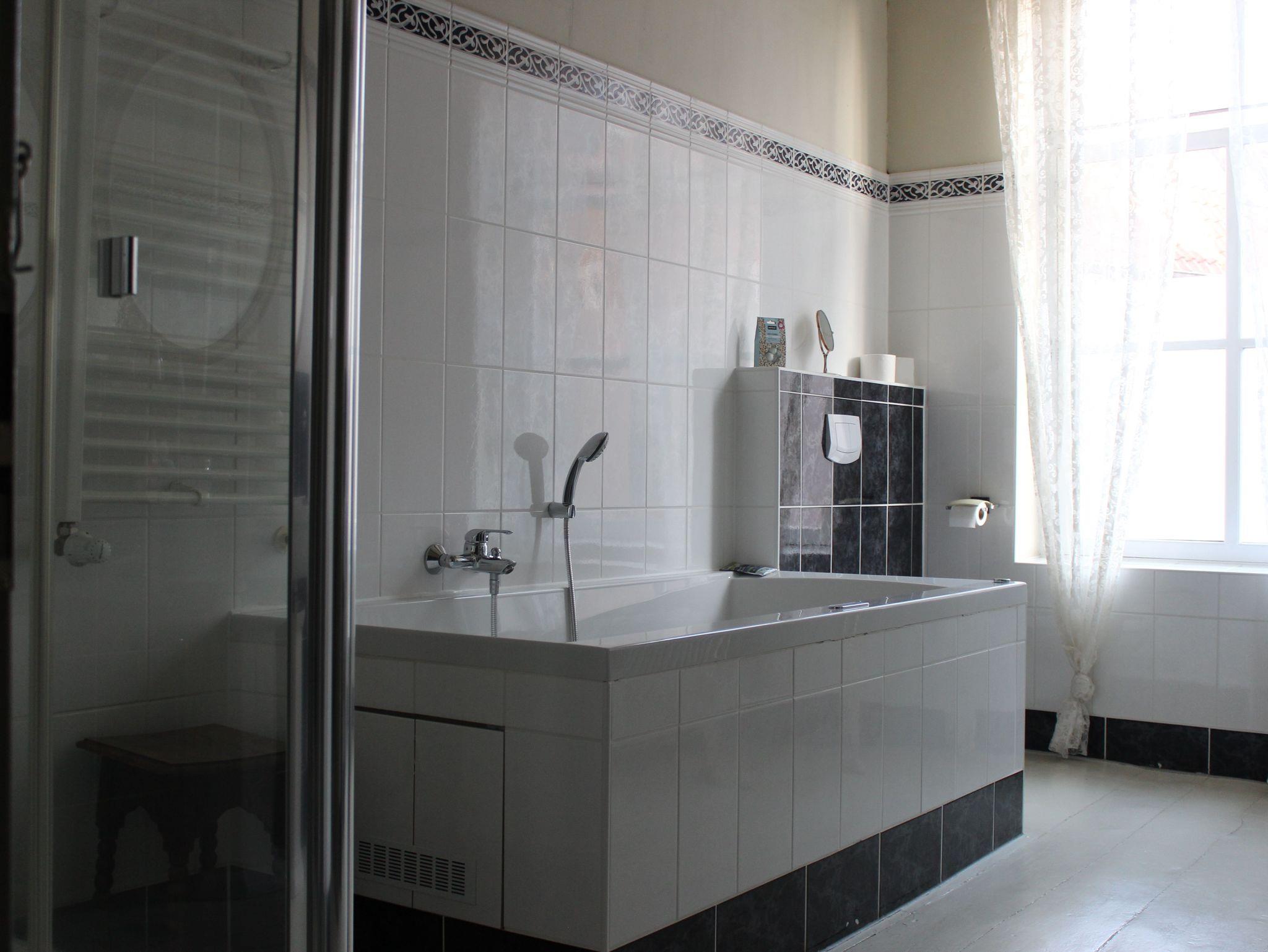 Diese fünf Sterne Wohnung von ca. 120 m² Größe ist mit zwei Schlafzimmern und einem großen Wohnzimmer mit ausgesuchten Antiquitäten ausgestattet. Ein gemütlicher Kaminofen lädt im Winter zum Verweilen ein. Das große Luxus-Badezimmer mit beleuchtetem Whirlpool für zwei Personnen bietet jede Menge Wellness. Zwei Waschbecken und eine Dusche sind ebenfalls vorhanden. Zudem verfügt die Wohnung über einen einem kleinen Balkon mit einen schönen Blick auf die Leeraner Altstadt.
