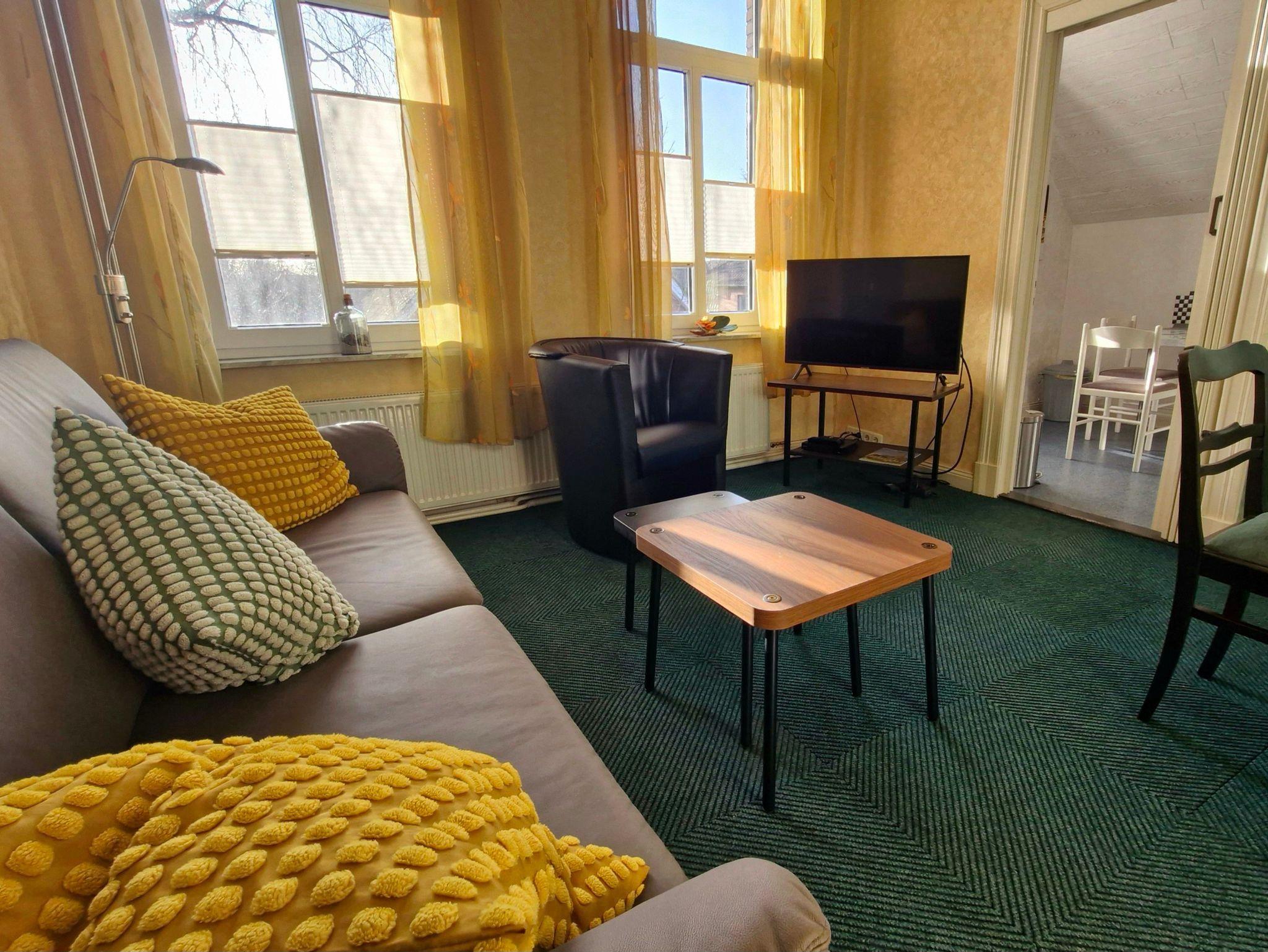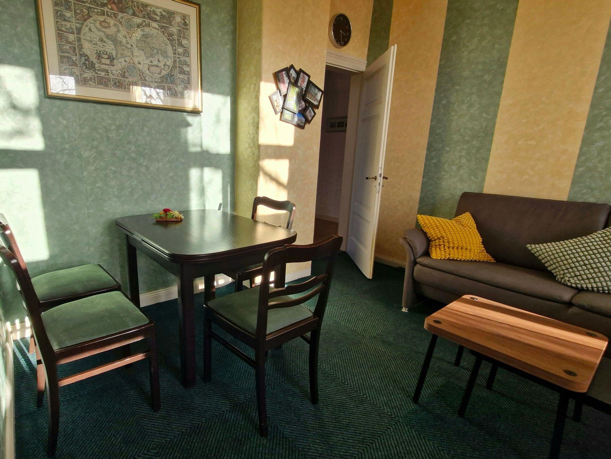 Gemütliche Altbauwohnung im 1. Obergeschoss. Ein Wohn-/Esszimmer, zwei Schlafzimmer, ein Schlafzimmer davon ist mit einem Boxspringbett ausgestattet. Küche, Badezimmer, separates WC. Kabel-TV, Stereoanlage. Nichtraucherwohnung. Endreinigung, Bettwäsche und Handtücher sind selbstverständlich inklusive.