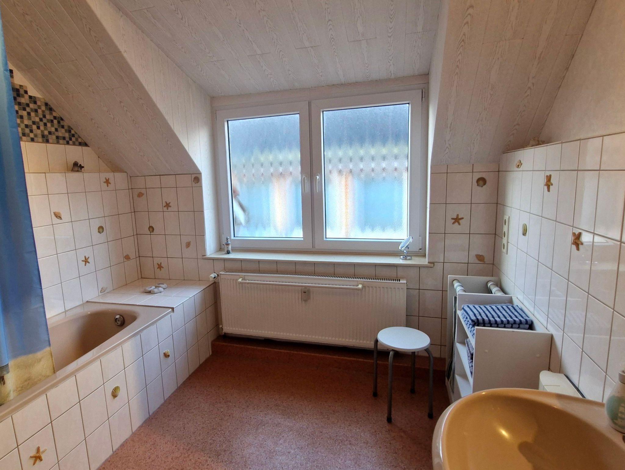 Gemütliche, separate Altbauwohnung im ersten Obergeschoss. In der Ferienwohnung befinden sich ein Wohn-/Esszimmer, zwei Schlafzimmer, ein Schlafzimmer mit Boxspringbett, Küche, Badezimmer, separates WC. Kabel-TV, Stereoanlage.