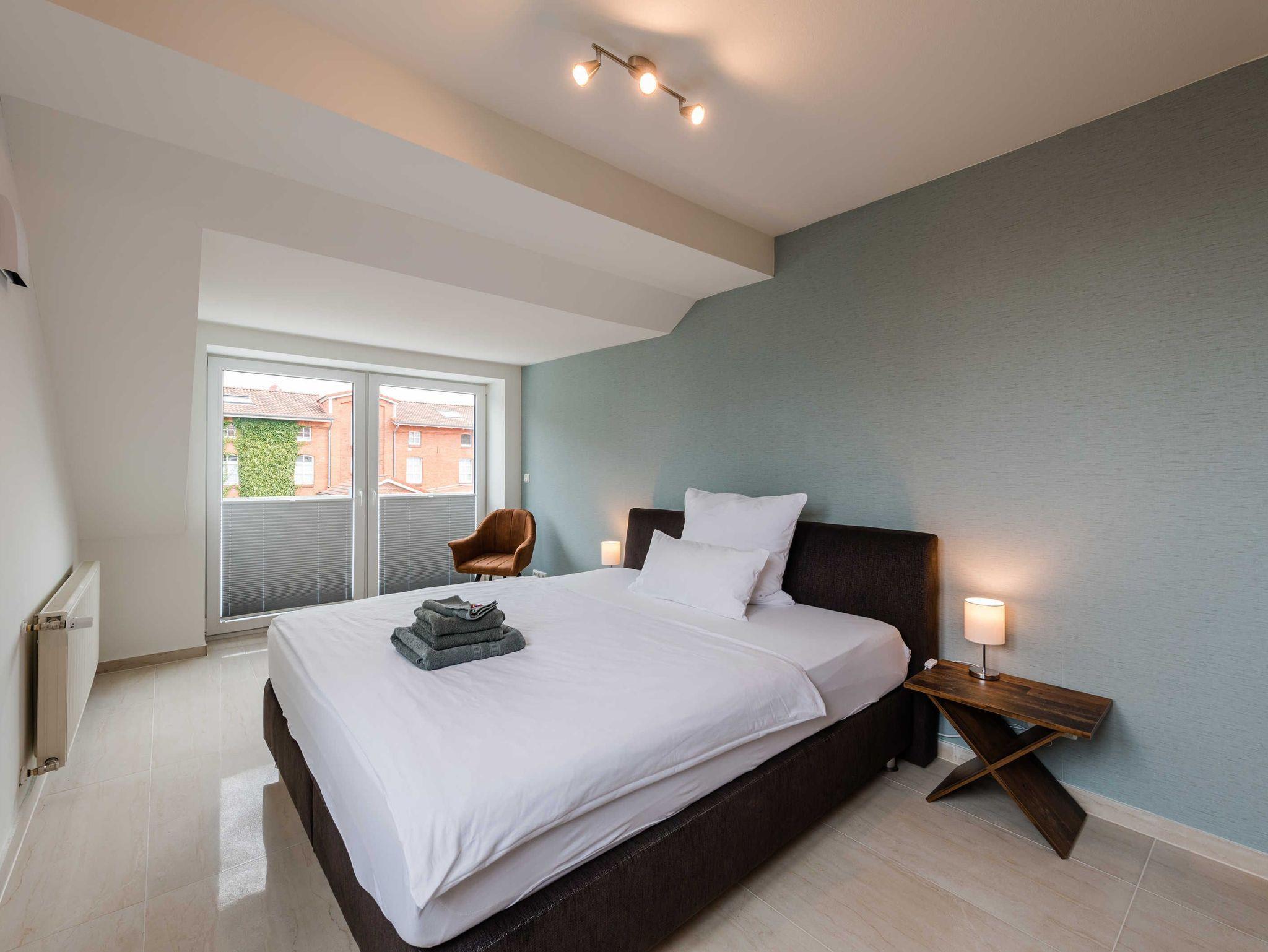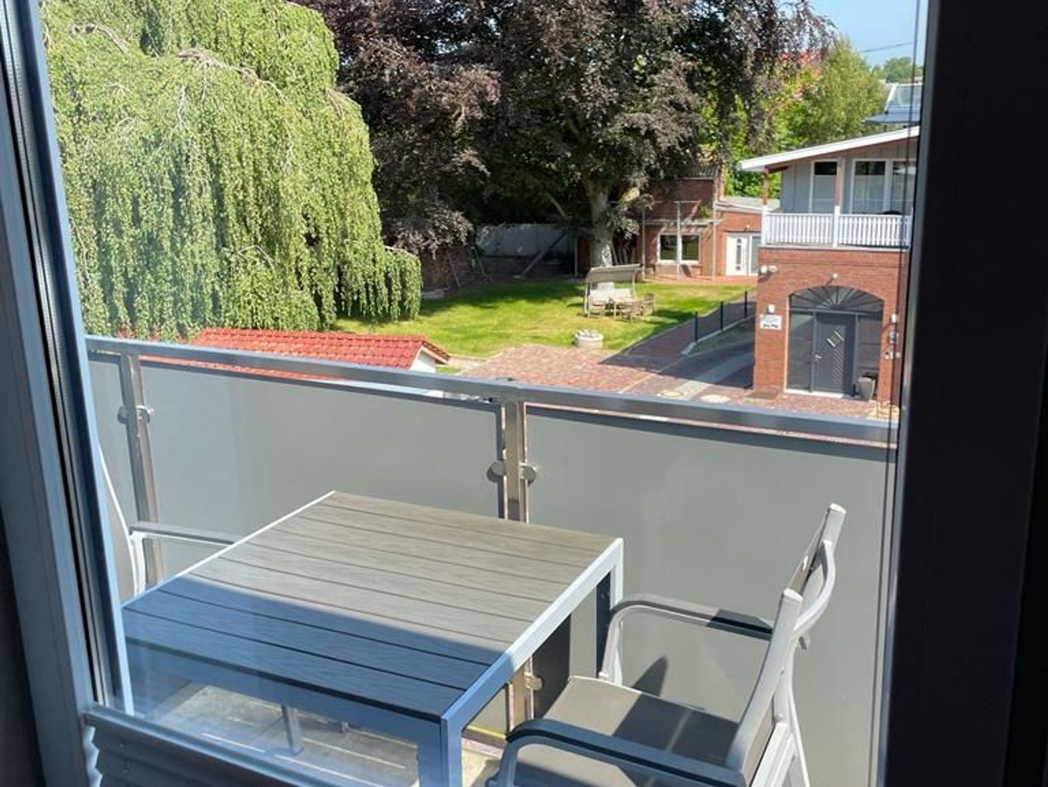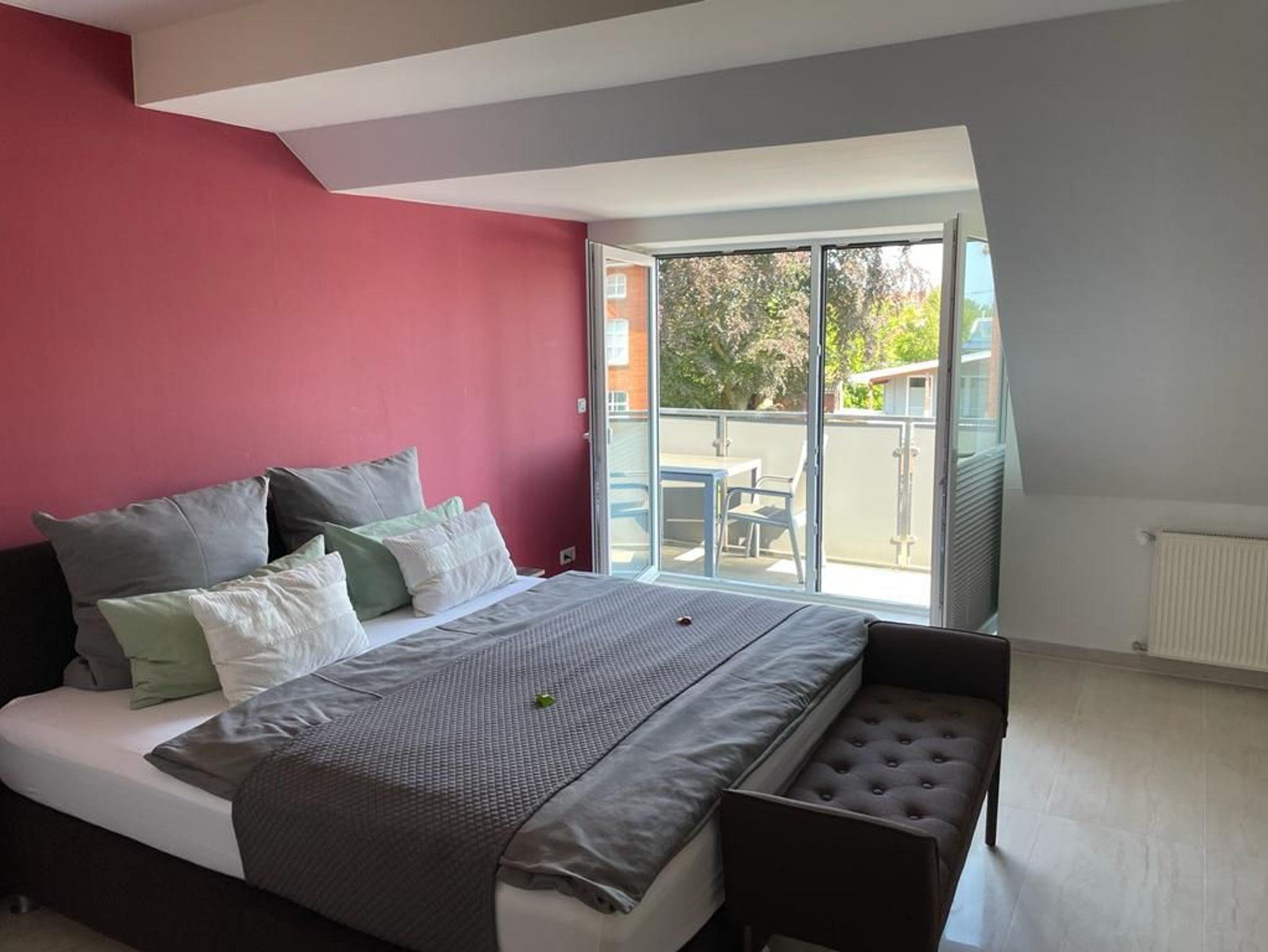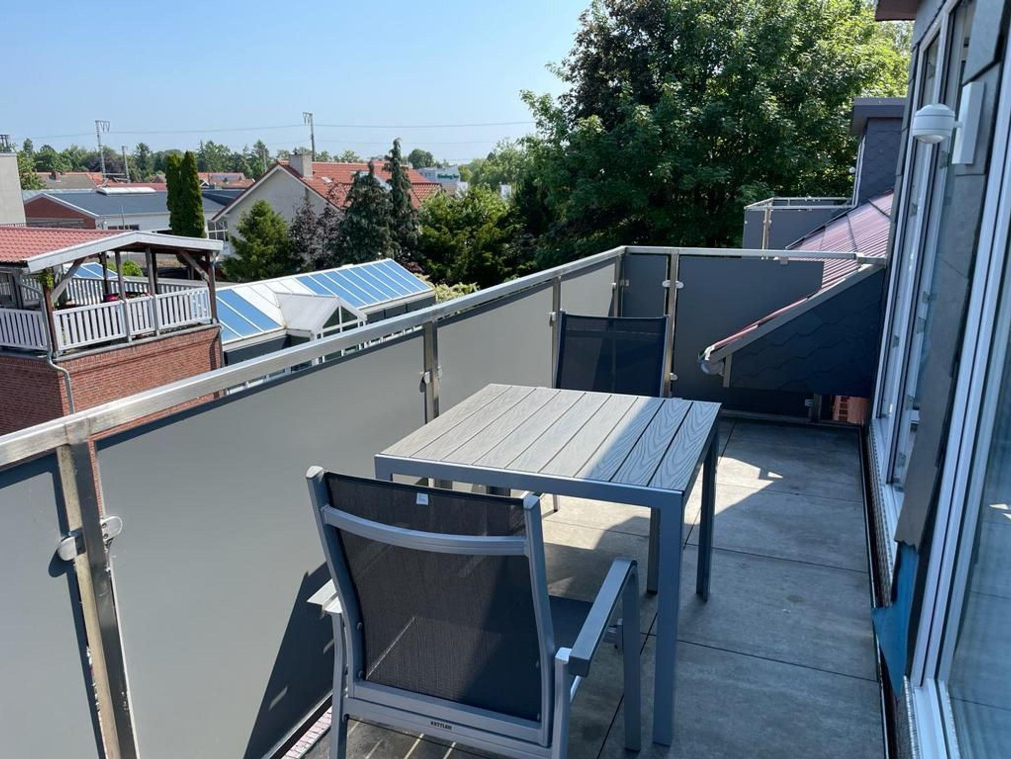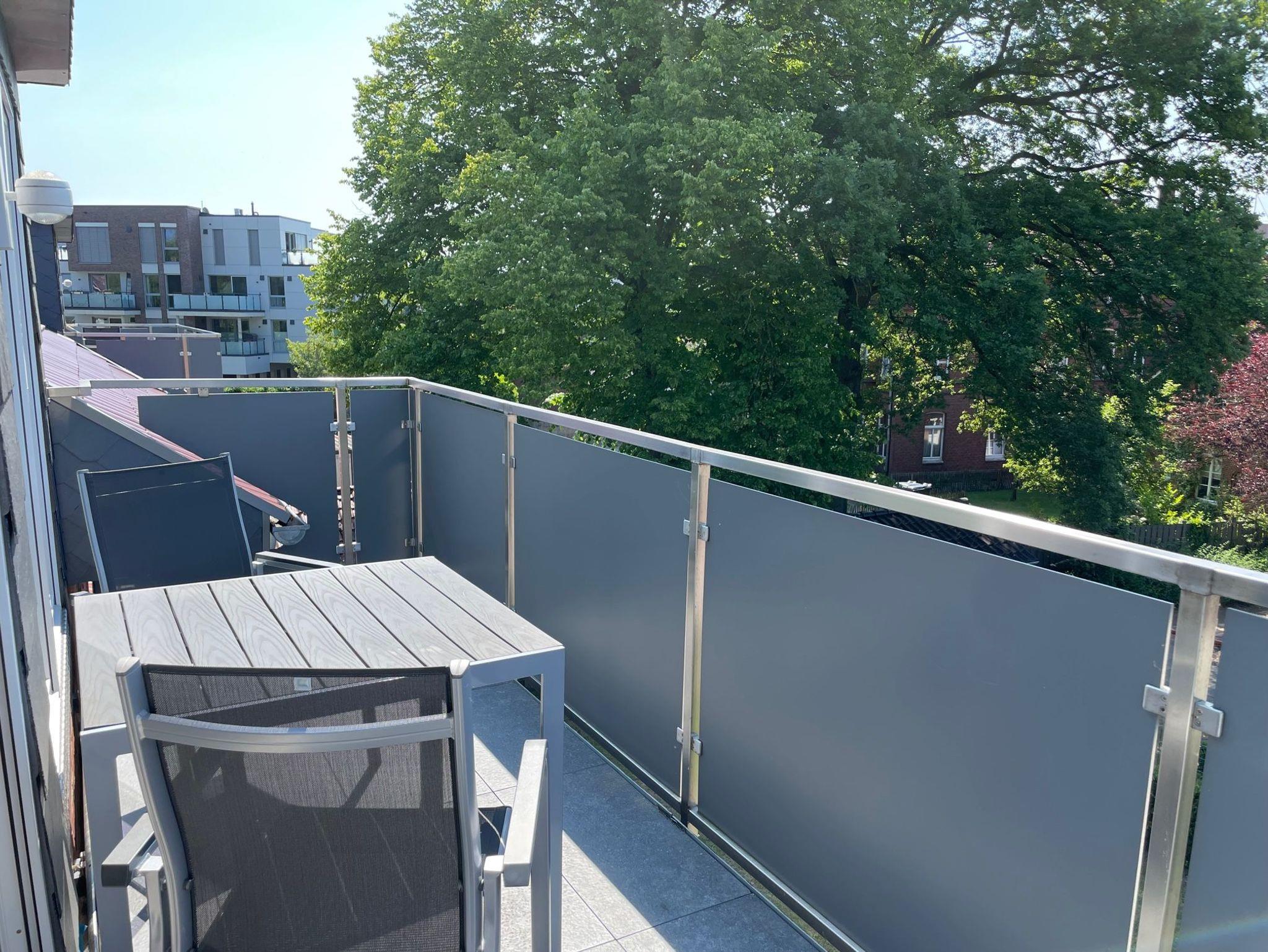 Moderne Ferienwohnung in Leer mit 2 Balkonen, großem Garten und zentraler Lage nahe Bahnhof und Fußgängerzone.