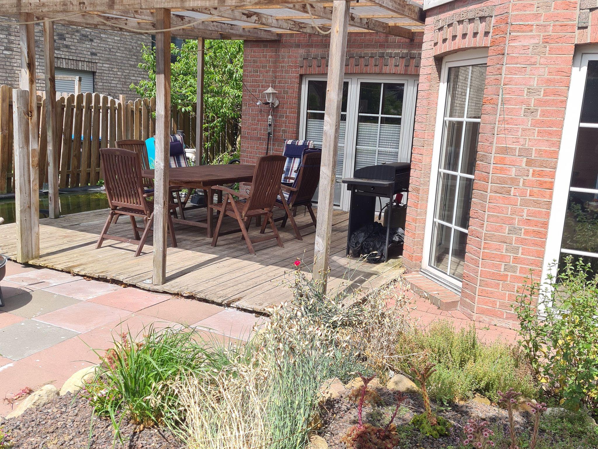 Schöne Terrasse mit offenem Fischteich vorhanden. Somit nicht für Familien mit Kleinkindern geeignet!