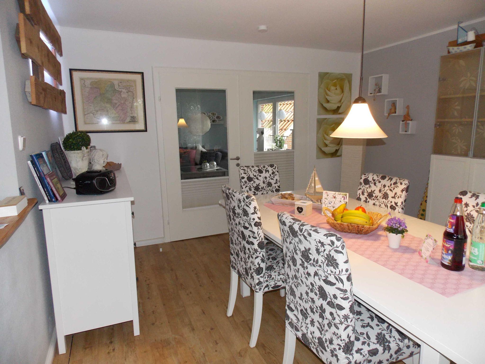 Ankommen und sich wie zuhause fühlen, das können Sie im Ferienhaus Dieknüst. Hier urlauben Sie zwischen den Deichen der Flüsse Ems und Leda, idyllisch und ruhig gelegen in Leers historischem Stadtteil Leerort. Das Ferienhaus ist modernisiert und voll ausgestattet. Sie allein bewohnen das gesamte, freistehende Haus in bevorzugter Wohnlage auf zwei Ebenen. Leih-Handtücher, - Bettwäsche, Endreinigung, WLAN inklusive. Von der Terrasse (Südlage) aus schauen sie in den schön gestalteten Garten mit Strandkorb, weiteren Sitzgelegenheiten sowie auf den Dorfteich, in dem man gegen Gebühr, in der Angelsaison, angeln kann. Familienfreundliche Ausstattung, Spiel,- und Sportplatz schnell zu Fuß erreichbar. Babyausstattung bei Bedarf -mehrere Hochstühle, Kinderbett, Wickelplatz, Buggy, ect.). Steckdosensicherungen/ Fenstersicherung im Obergeschoss. Fliegengitter in jedem Raum. Altersgerechtes Spielzeug für Ihre Kinder. Vollbad mit seniorenfreundlicher, ebenerdiger Dusche, Wanne, Urinal, WC und Waschbecken. WC- Raum im Obergeschoss. Im Haus befindet sich ein Waschtrockner. 2 Carportstellplätze.