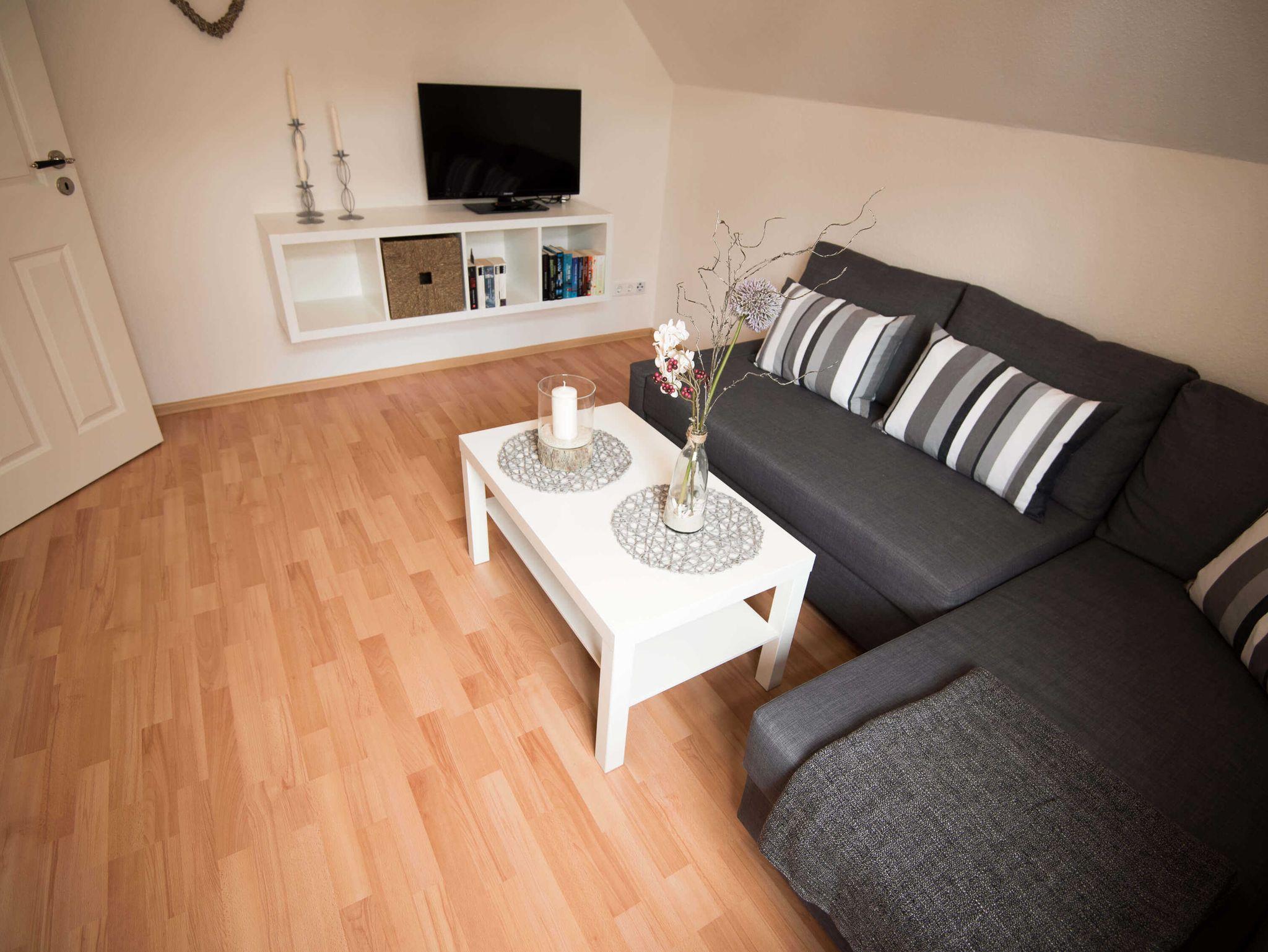Die komplett neu und geschmackvoll eingerichtete Wohnung verfügt über eine moderne Einbauküche, ein großes Wohnzimmer und ein Gäste WC im Erdgeschoss.