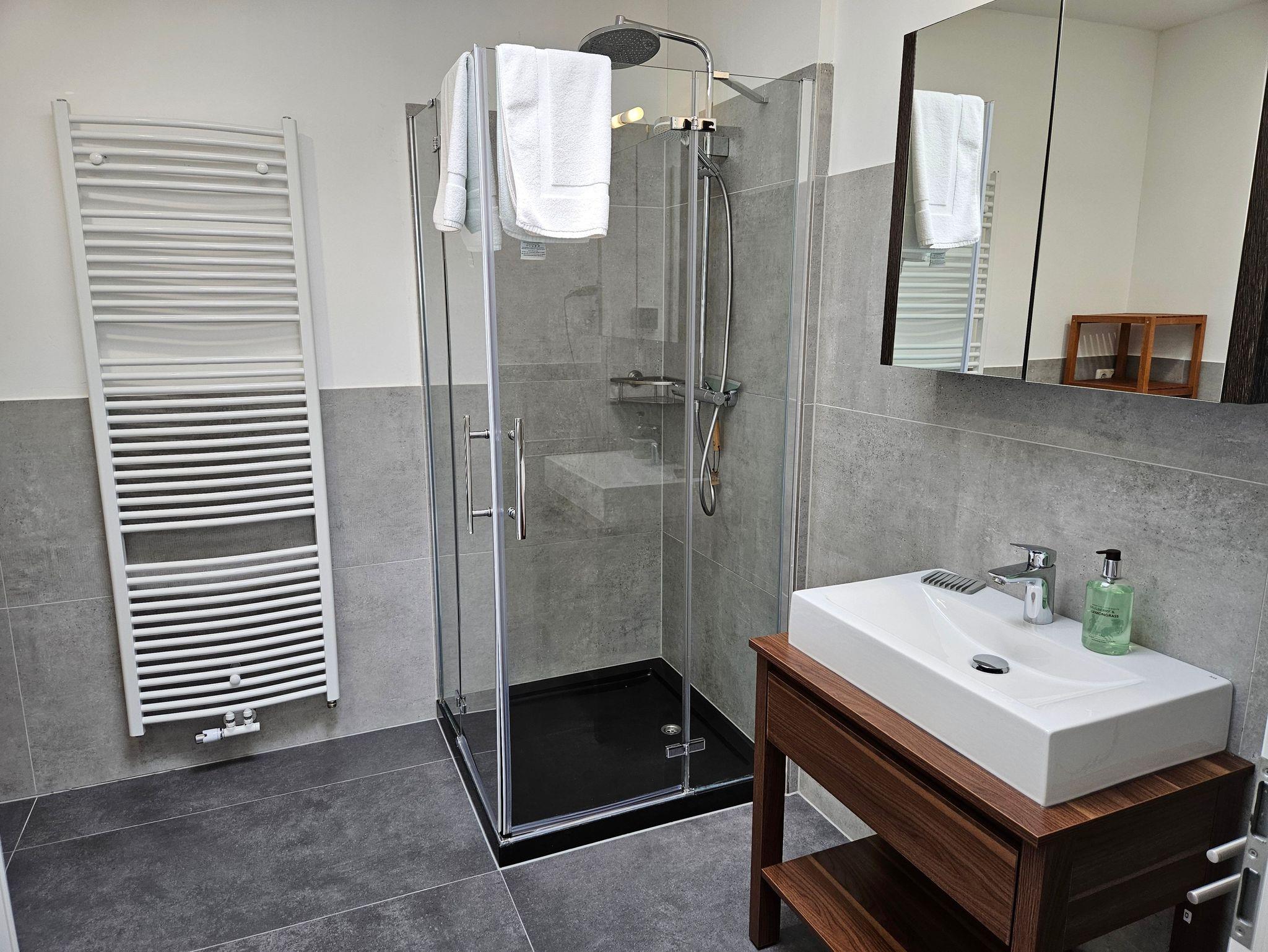 Eine Waschmaschine und Trockner teilen Sie sich mit der Wohnung Altschwoog gegenüber. Der Hauswirtschaftsraum für beide Wohnugen ist auf dem Flur.