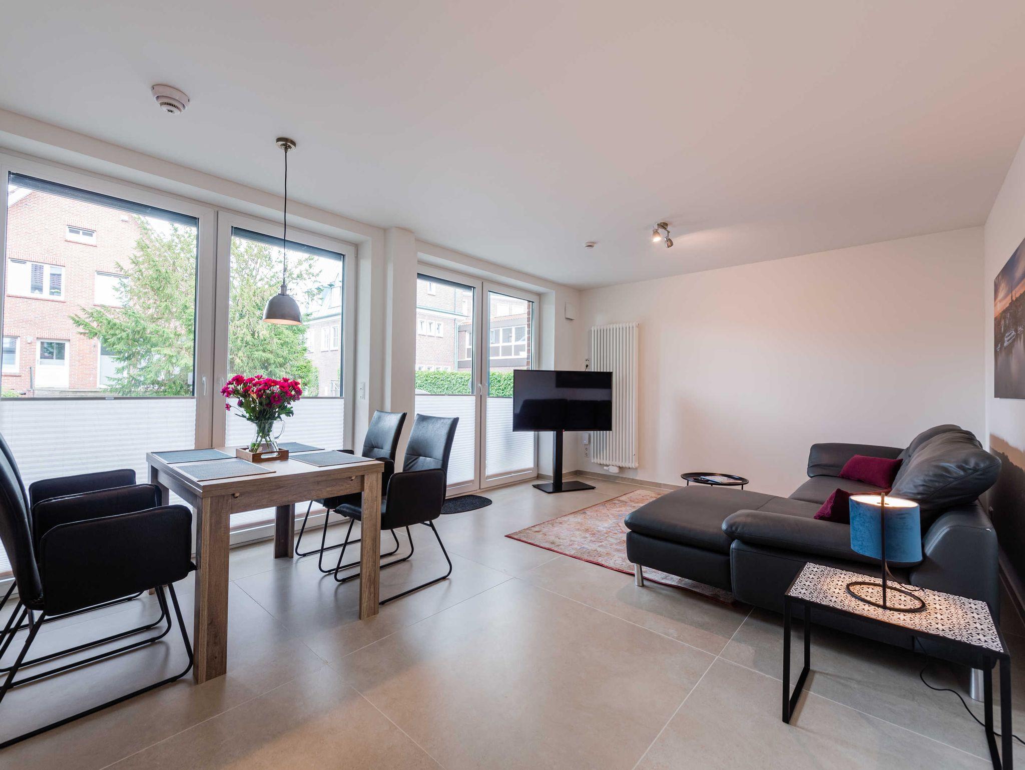 Moderne Ferienwohnung in Leer mit großem Garten, Balkon und kostenlosem Parkplatz nahe der Fußgängerzone.