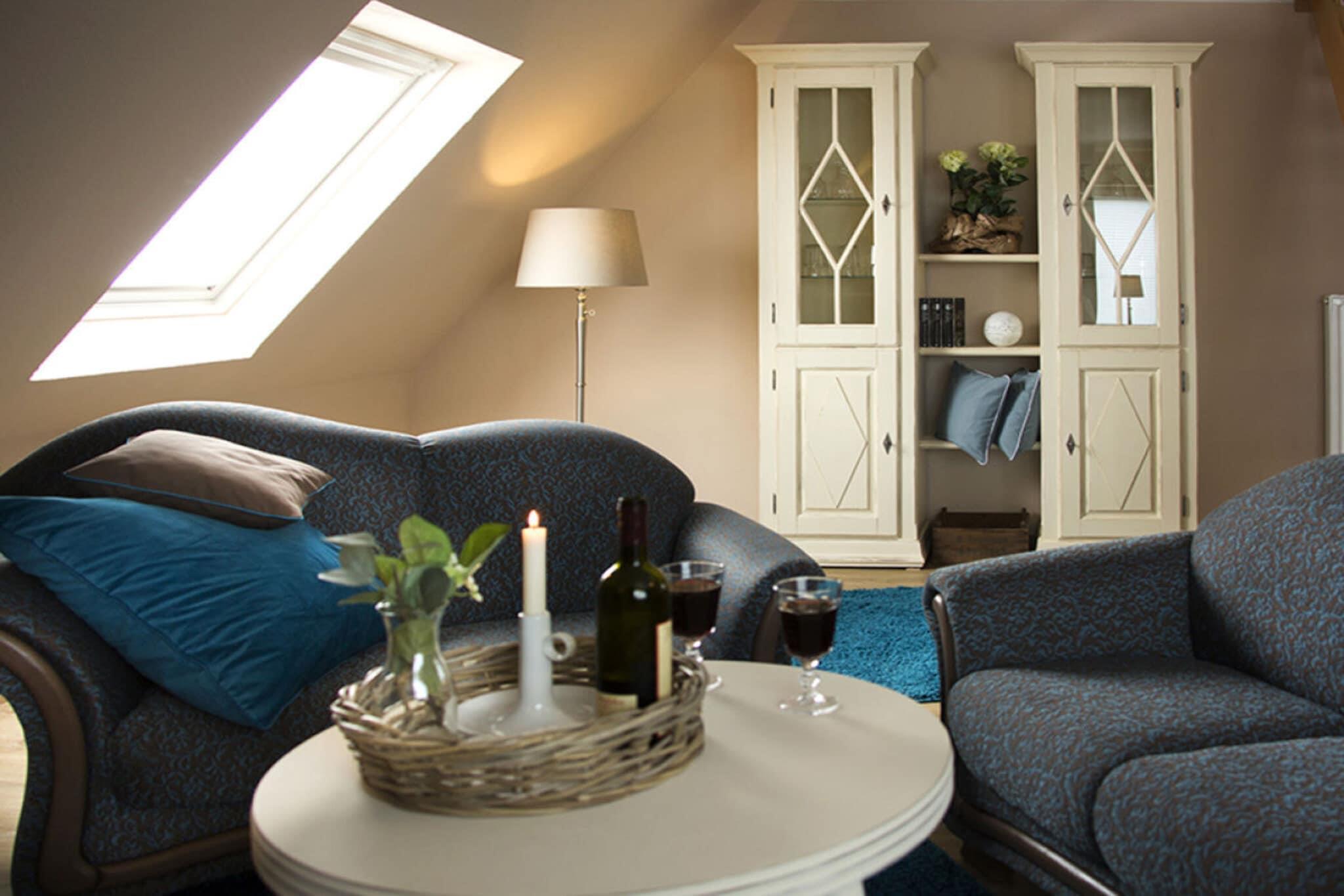 Die 80m² große Maisonettewohnung lässt keine Wünsche offen. Auf zwei Etagen können sich bis zu fünf Personen frei entfalten. Ein handgefertigtes Butzenbett lädt auch tagsüber zum entspannen und träumen ein. Eine voll ausgestattete Küche mit gemütlicher Essecke steht den Gästen für kulinarische Abenteuer bereit. Ein kleiner Innenhof mit Holzterrasse kann nach Absprache gern genutzt werden. Die Verwaltung liegt komplett in familiärer Hand und sorgt für eine entspannte Atmosphäre. Auch kleine Extrawünsche werden gerne erfüllt.