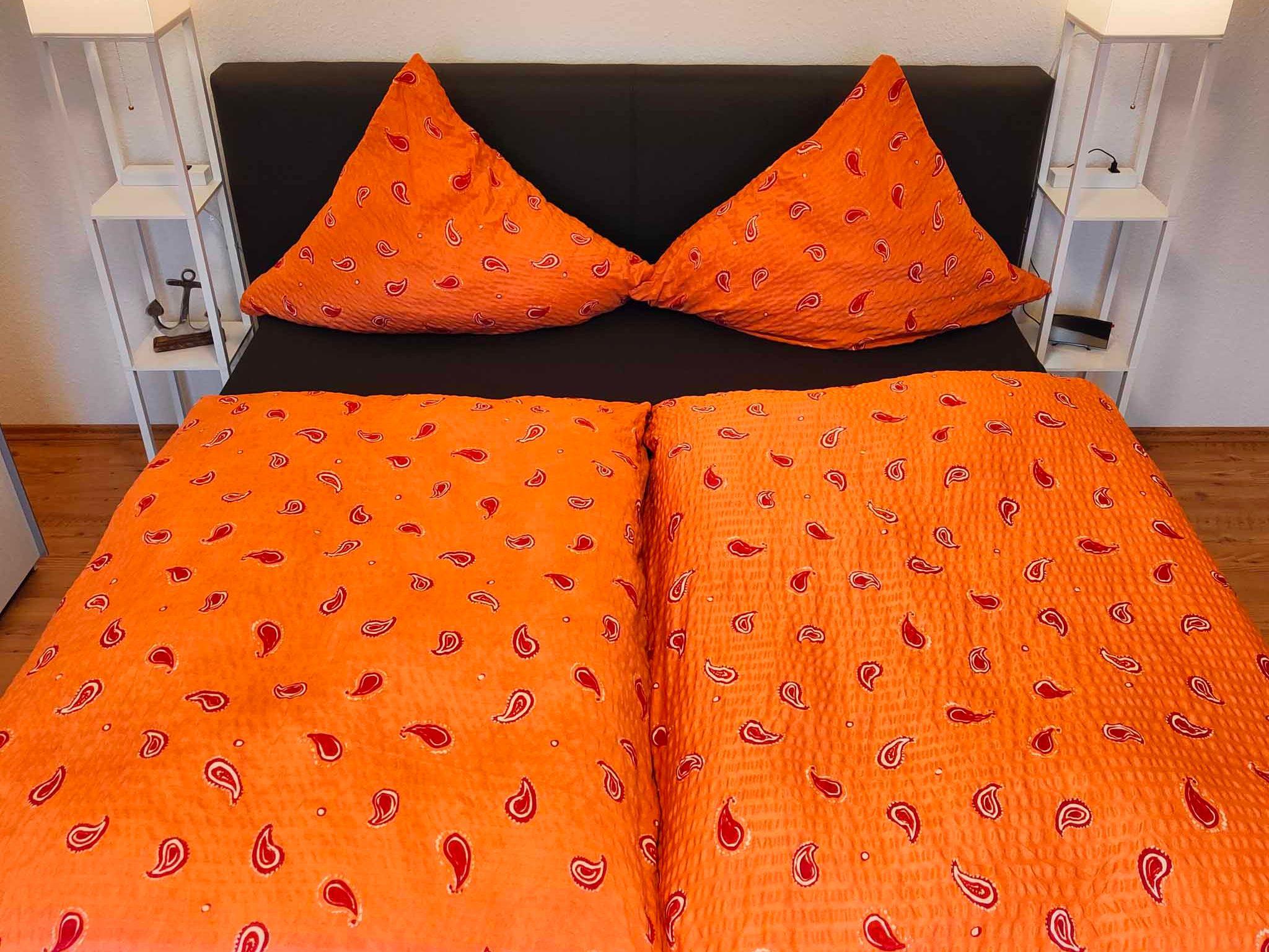Unsere 4 Sterne klassifizierte Ferienwohnung bietet auf 65 m² Platz bis zu 2 Personen. Sie verfügt über einen kleinen Flur, Küche mit Bartheke und Barstühlen, 1 Wohn- und Essbereich, 1 Schlafzimmer mit Boxspringbett, Bad mit WC und Dusche, kleiner Garten mit Terrasse inkl. Tisch und Stühlen. In der Küchenausstattung befindet sich ein Wasserkocher, Filterkaffeemaschine, Backofen-Mikrowellenkombination, Toaster, Mixer, Zitronenpresse. An allen Fenstern befinden sich elektrische Rollläden. Die Ferienwohnung bietet eine höherwertige Gesamtausstattung mit gehobenem Komfort.