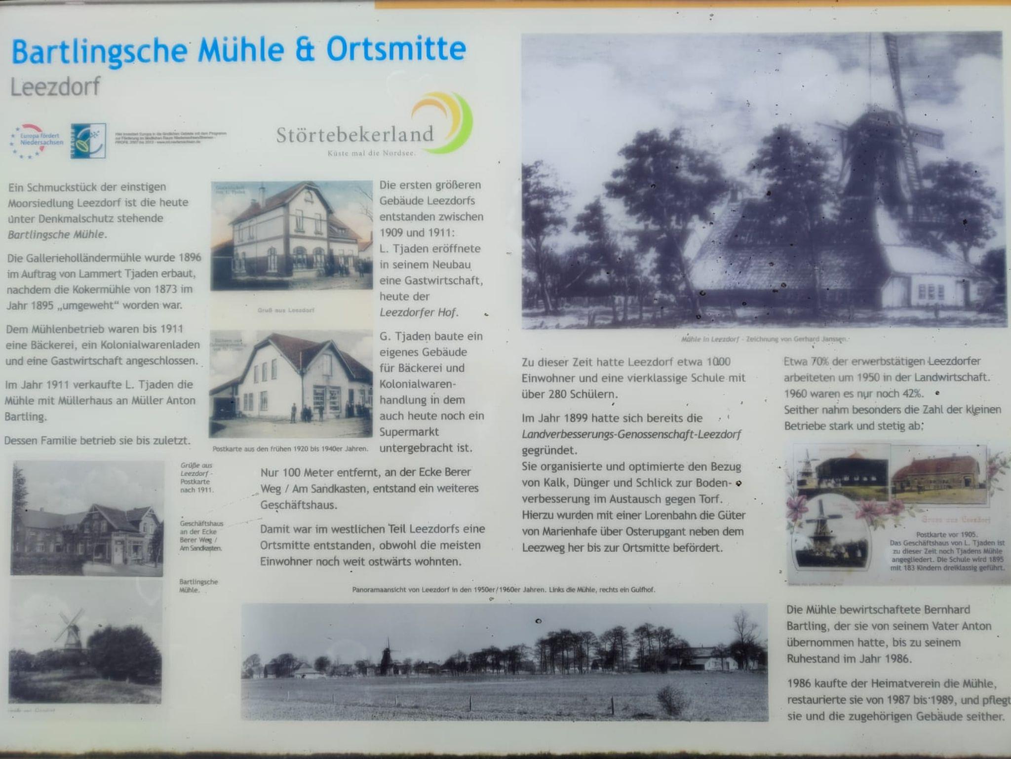 Die Leezdorfer Mühle und der Ortskern mit einem großen Marktplatz sind in wenigen Minuten zu Fuß erreichbar. Regelmäßig finden in Leezdorf die bekannten Dorf- und Mühlenfeste statt. Zudem ist ein Lebensmittelgeschäft nur wenige Minuten von der Ferienwohnung entfernt. Die ostfriesische Nordseeküste ist nur wenige Fahrminuten mit dem Auto entfernt. Ostfriesland hat viele schöne Ausflugsziele zu bieten: