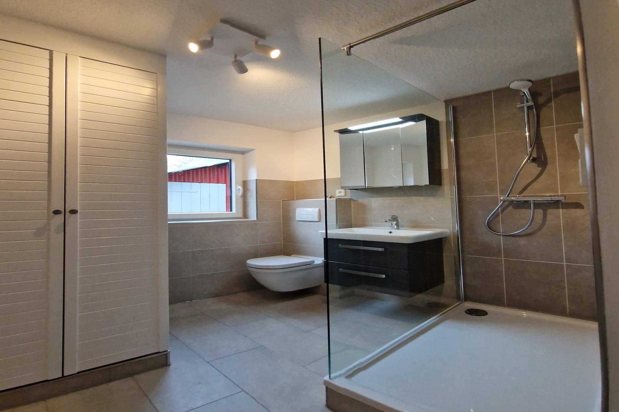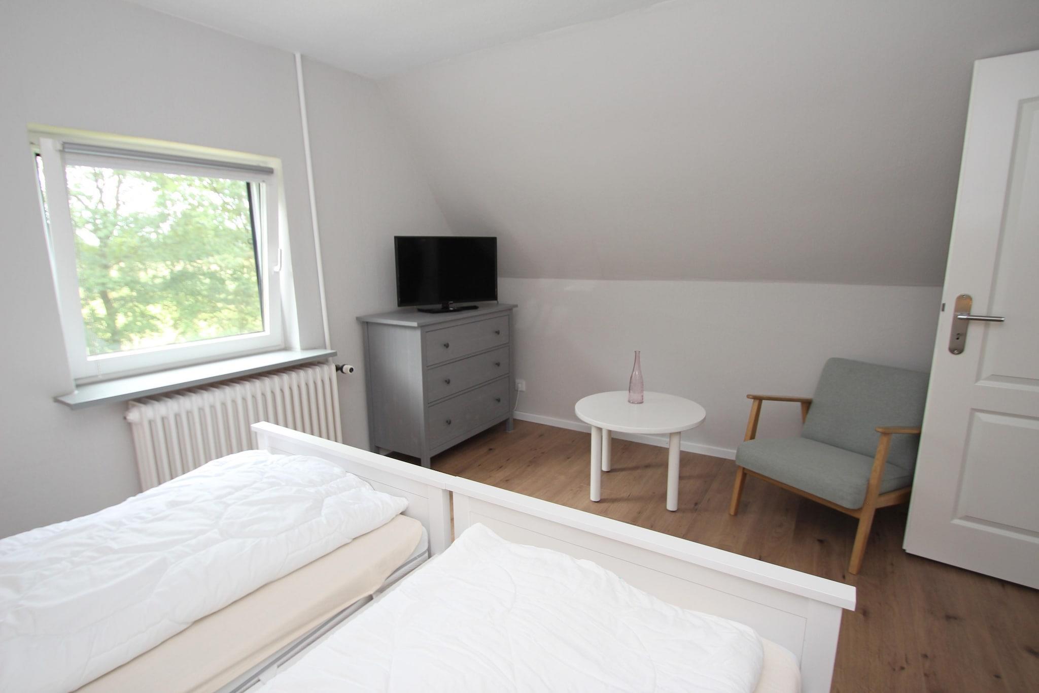 Parterre: (Wohnzimmer(TV, Kaminofen), Esszimmer(Esstisch(5 Personen)), Küche(Esstisch(4 Personen), Wasserkocher, Toaster, Kochherd(4 Kochplatten, Ceranfeld), Dunstabzugshaube, Kaffeemaschine, Backofen, Spülmaschine, Kühl-/Gefrierkombination), Schlafzimmer(Doppelbett(180 x 200 cm), TV), Badezimmer(Dusche, Waschbecken, Toilette, Föhn), Badezimmer(Dusche, Waschbecken, Toilette, Föhn), Flur) In der 1. Etage: (Schlafzimmer(Einzelbett(90 x 200 cm), Einzelbett(90 x 200 cm), TV), Schlafzimmer(Einzelbett(90 x 200 cm)), Flur) Waschmaschine, Terrasse, Garten, Fahrradabstellraum, Gartenmöbel, Grill(Holzkohle), Parkplatz, Parkplatz