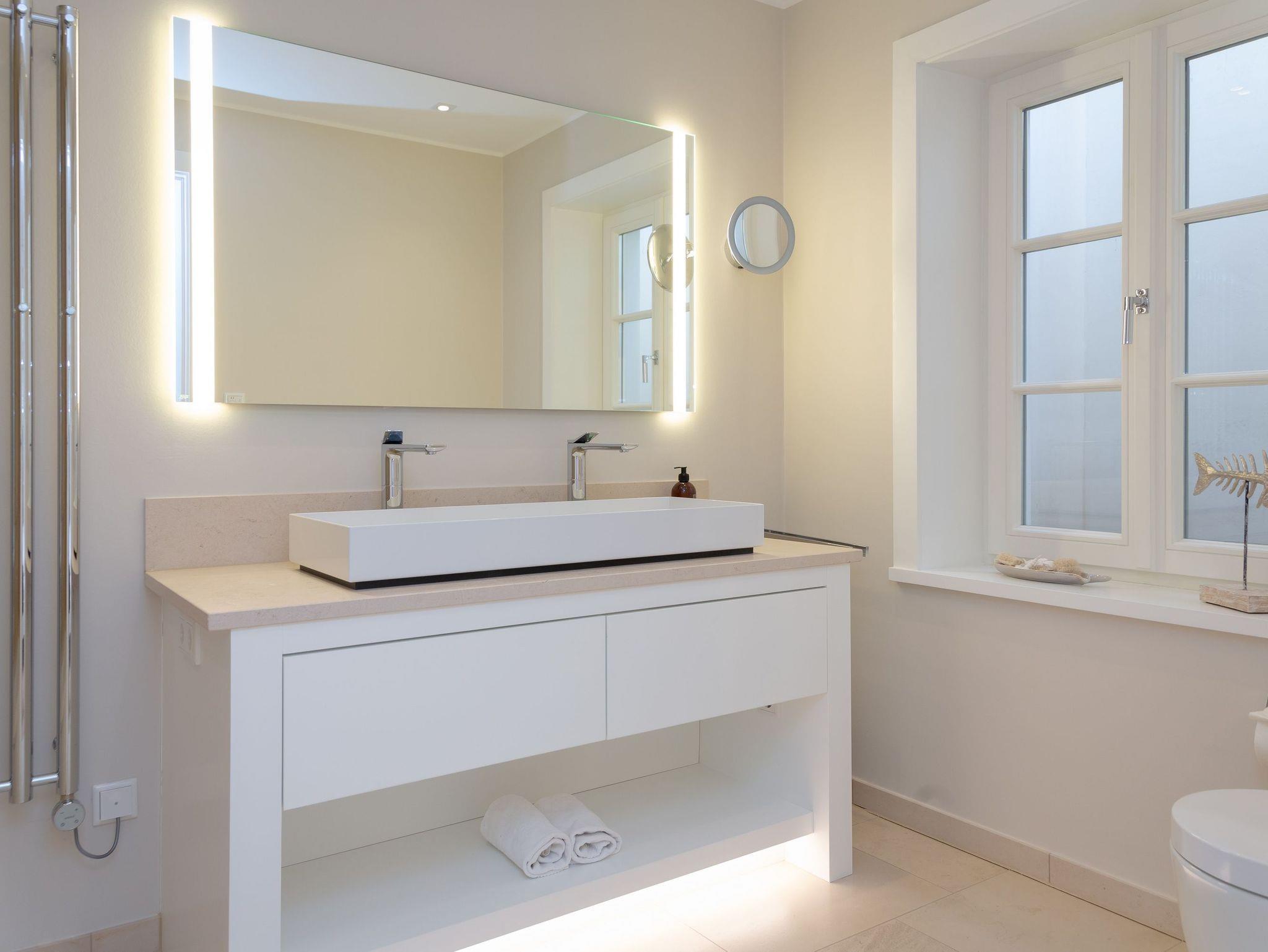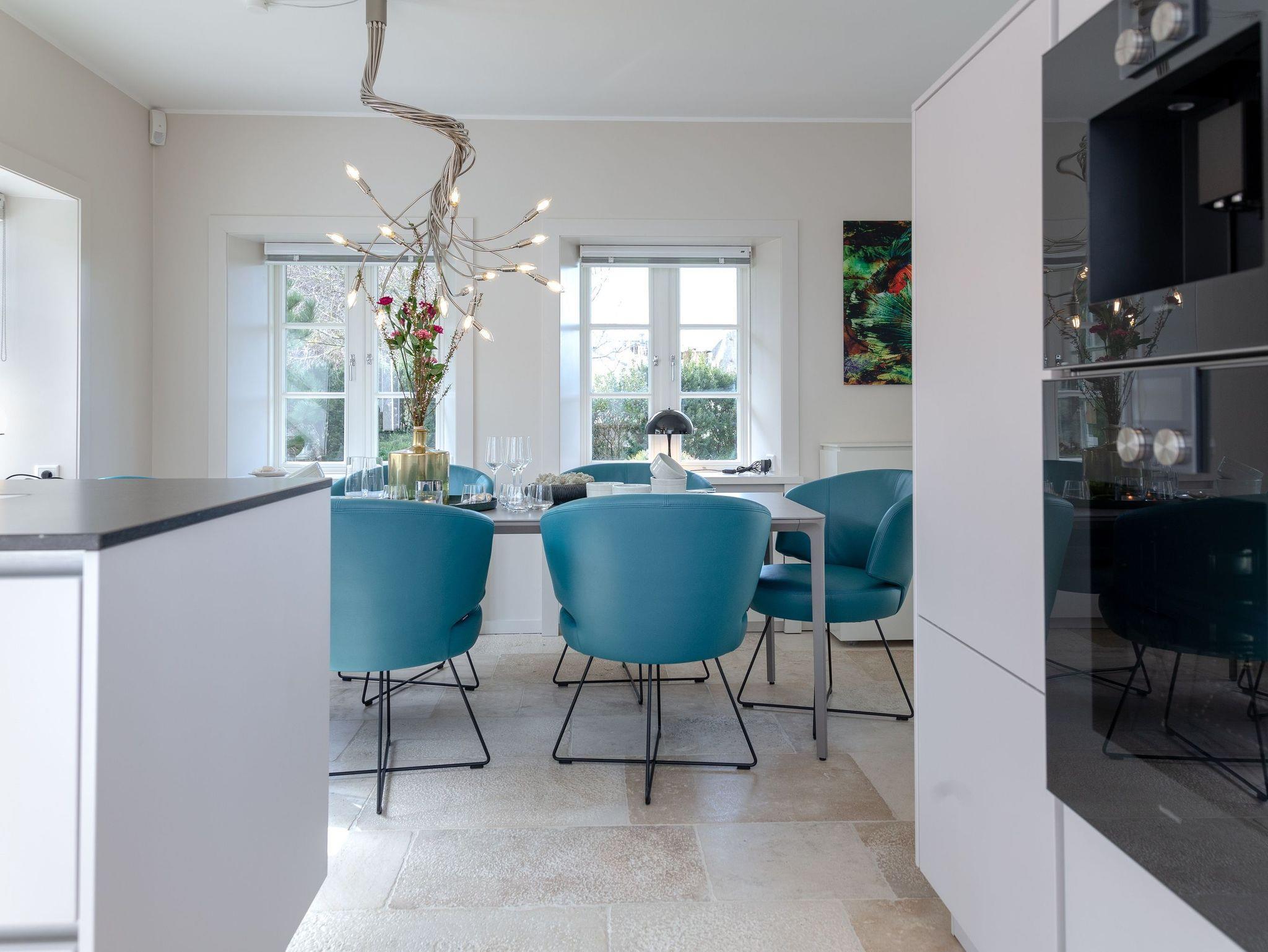 Exklusives Ferienhaus unter Reet in ruhiger Lage eingebettet in die Mellhörner Dünenlandschaft für bis zu 8 Personen. Das Haus besticht durch seine hochwertige Ausstattung und lichtdurchfluteten Räume. Das Erdgeschoss überzeugt mit einem wundervollen Wohn-Essbereich mit einer bestens ausgestatteten Küche sowie ein separates Gäste WC ist ebenfalls vorhanden. Im Obergeschoss befinden sich zwei großzügige Doppelschlafzimmer jeweils mit Fernseher, sowie ein geräumiges Duschbad . Zwei weitere Doppelschlafzimmer finden Sie im Untergeschoss jeweils mit Bad en Suite. Ein Hauswirtschaftsraum mit Waschmaschine und Trockner ist ebenfalls vorhanden. Genießen Sie die Ruhe auf den beiden dazugehörigen Terrassen.[nbsp] Pkw - Stellplatz und Garage steht am Haus den Gästen zur Verfügung.