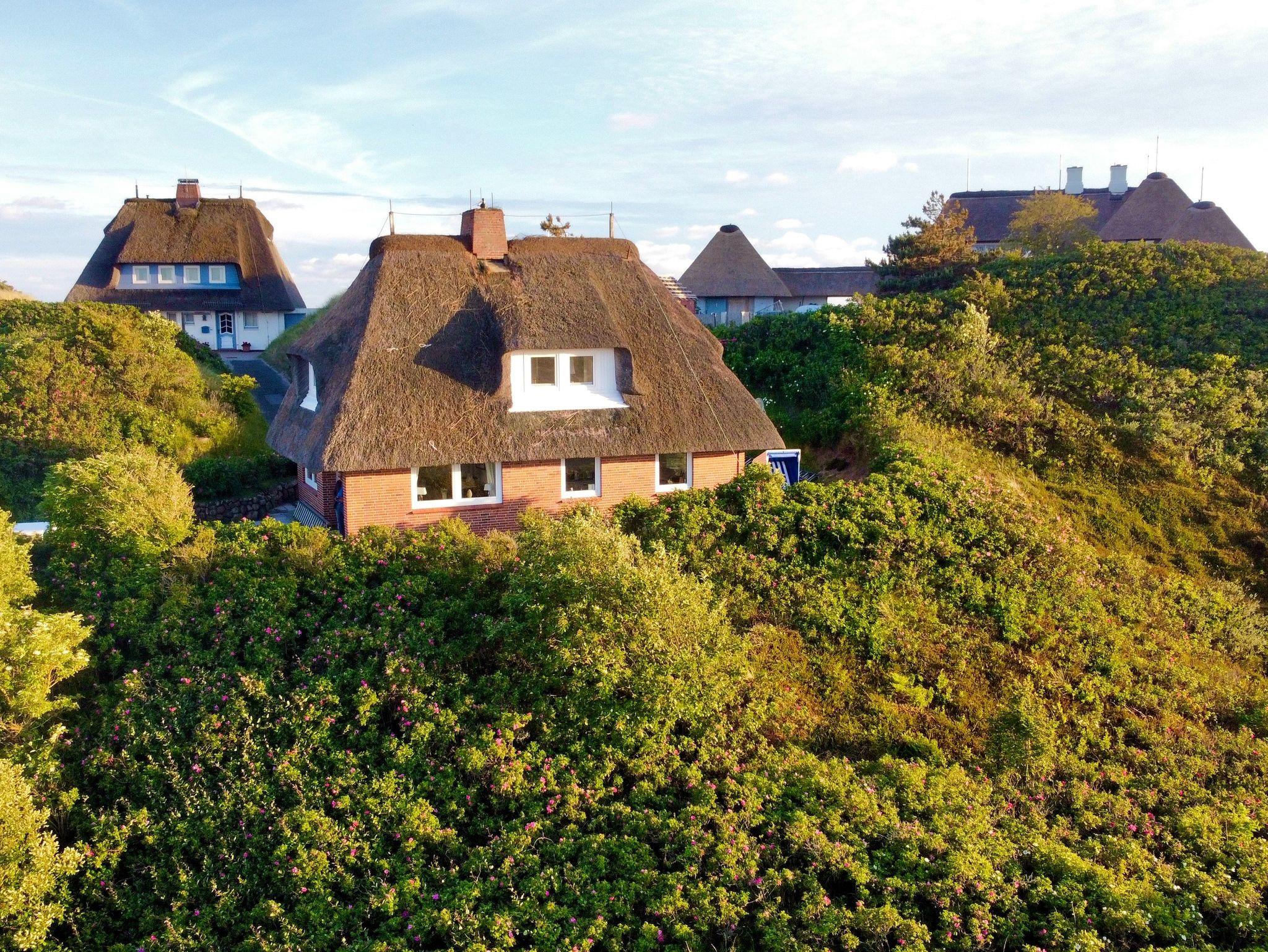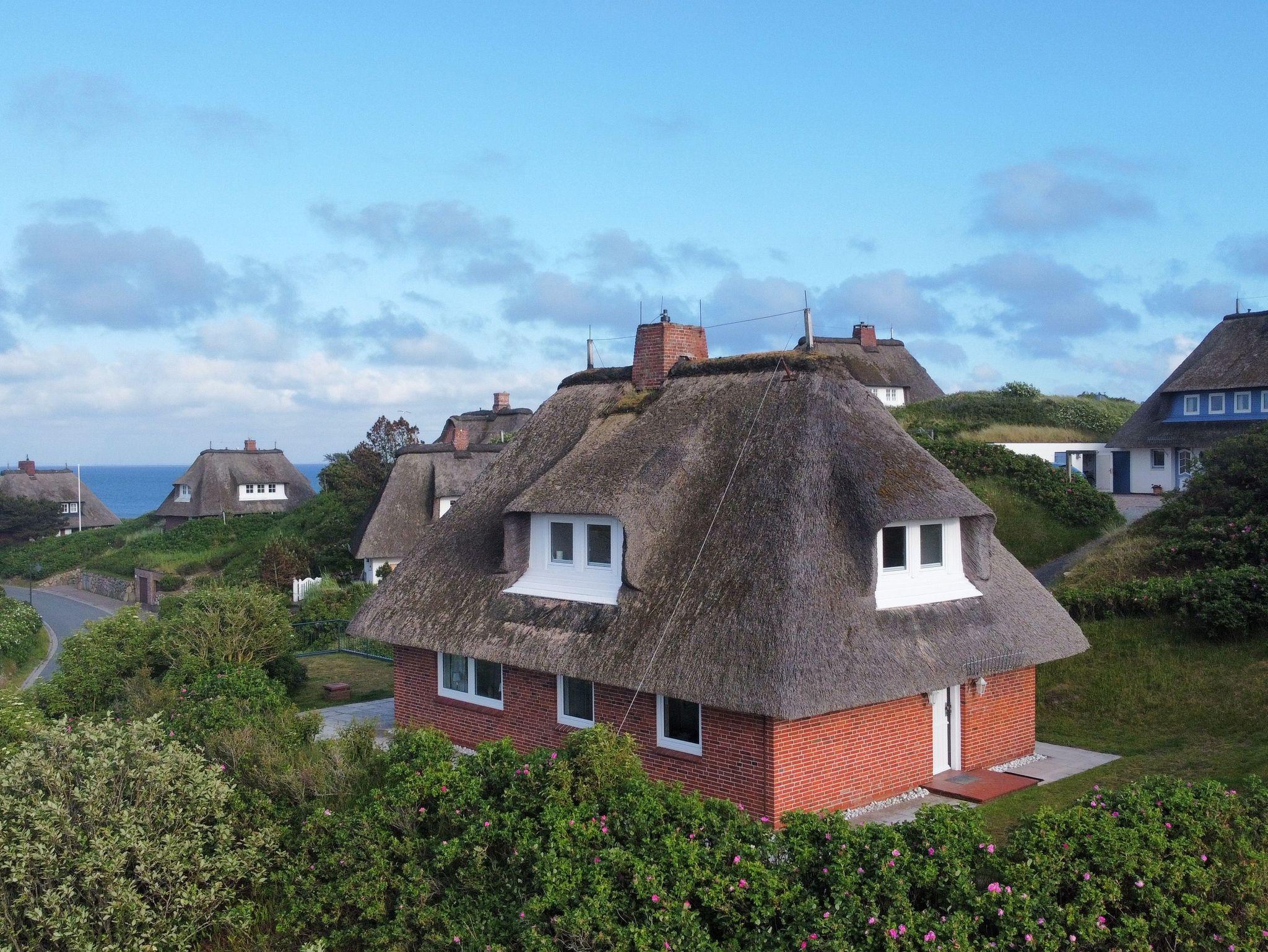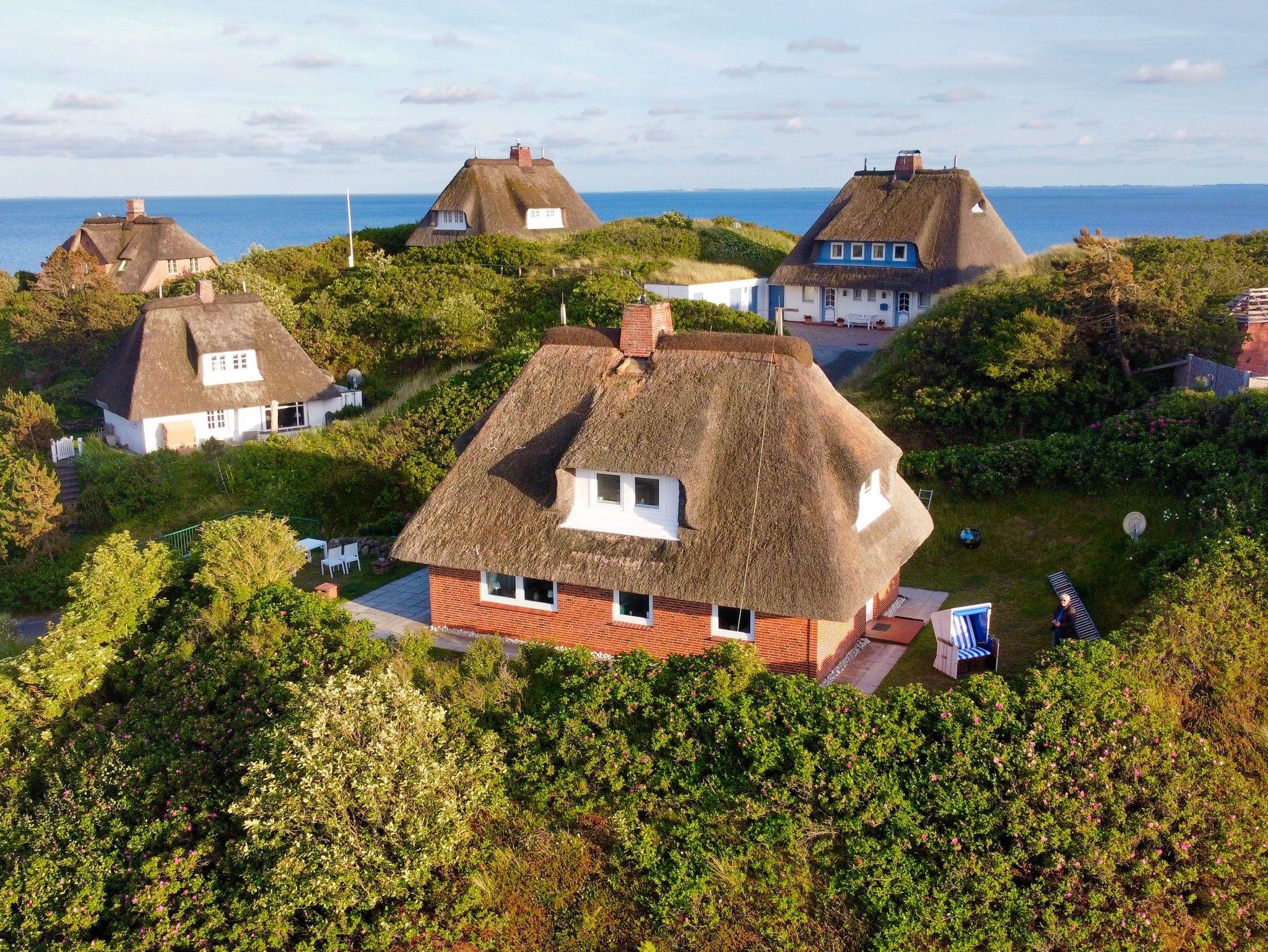 Ruhiges Reetdachhaus mit Meerblick, nahe Lister Oststrand auf Sylt, perfekt für erholsame Ferien zu viert.