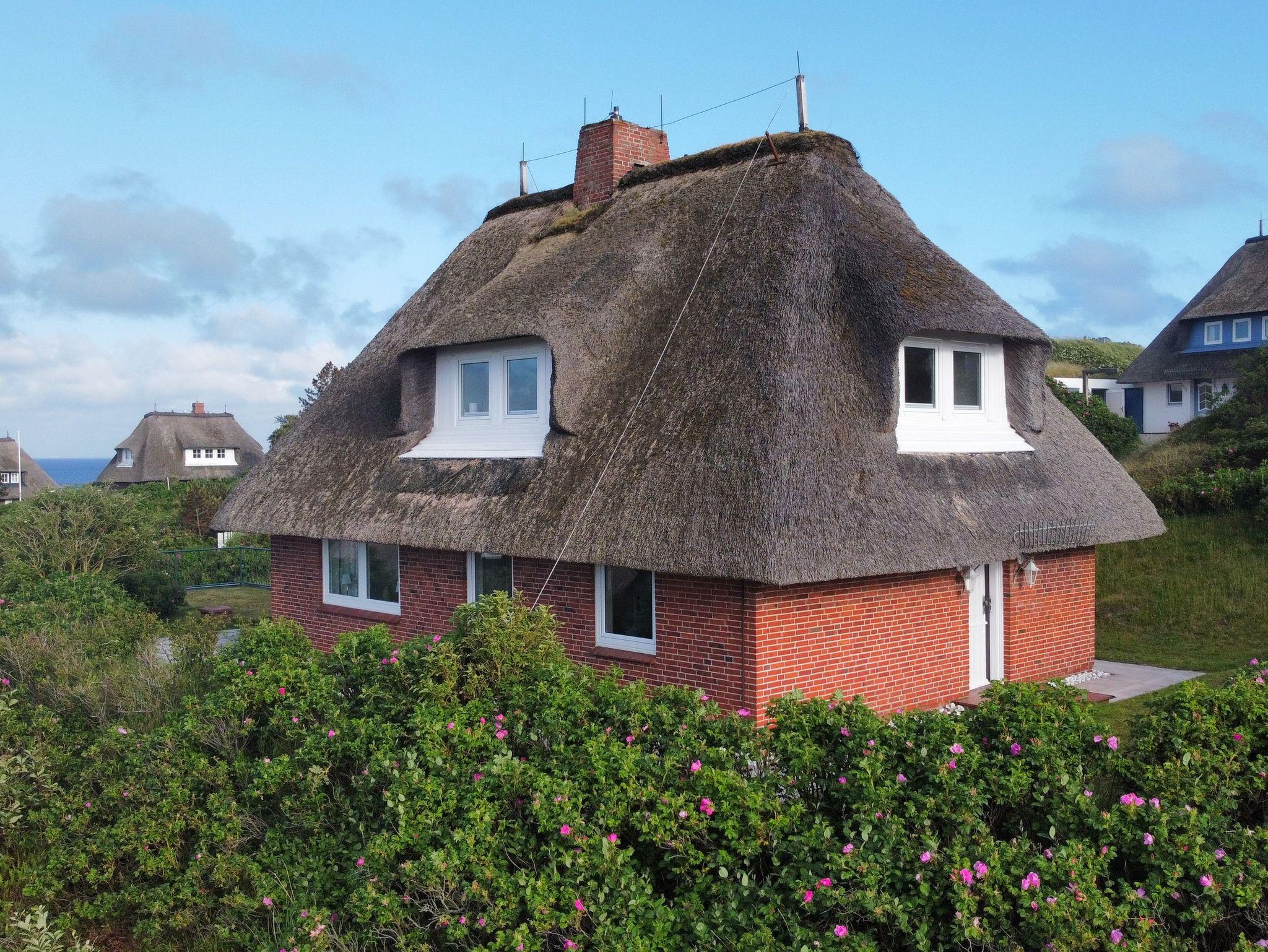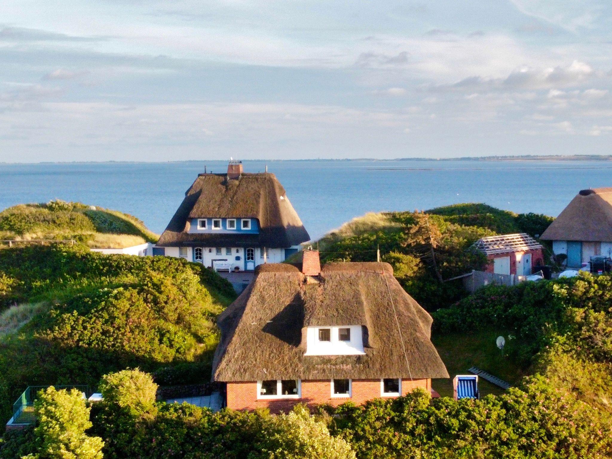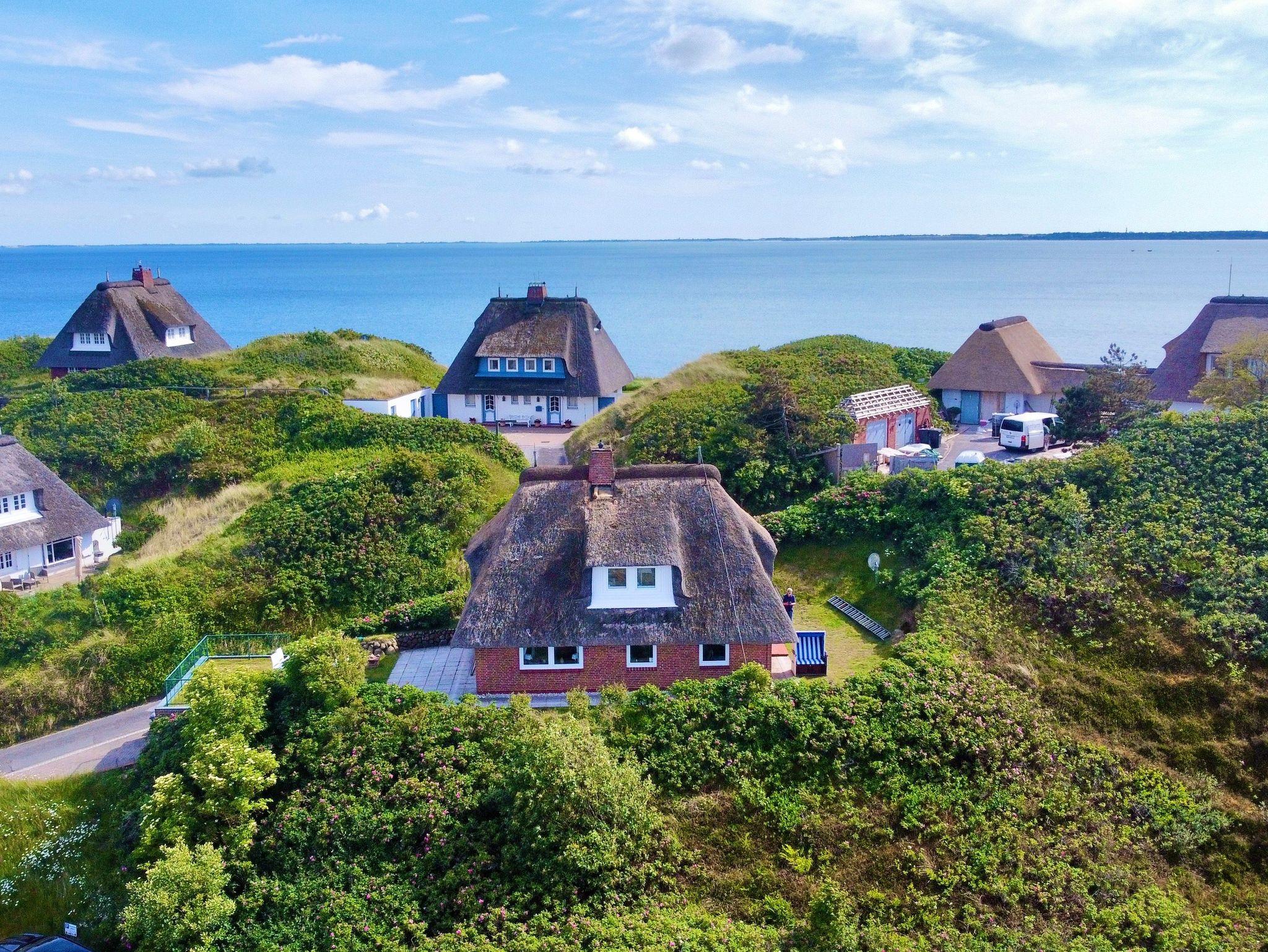 Ruhiges Reetdachhaus mit Meerblick, nahe Lister Oststrand auf Sylt, perfekt für erholsame Ferien zu viert.