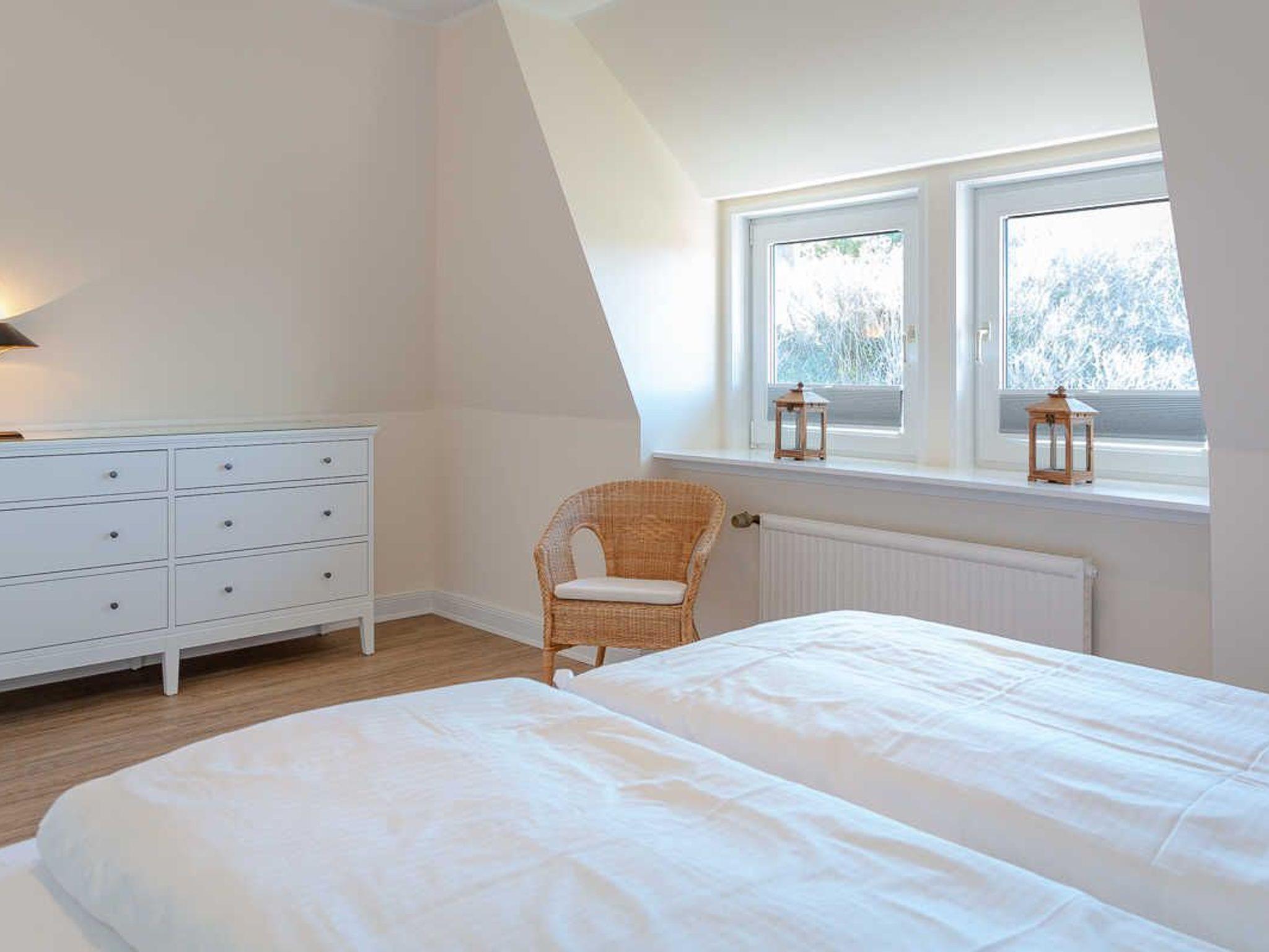 Ihr Reetdach-Traum auf Sylt! Das schön renovierte und freistehende Haus Meerblick befindet sich im malerischen Lister Ortsteil Mellhörn. Hierbei handelt es sich um ein ruhiges und stilvolles Reetdachhaus-Wohngebiet, das direkt am Wattenmeer zwischen Kampen und List auf Sylt liegt. Da Ihr Ferienhaus auf einer kleinen Anhöhe steht, können Sie auf der einen Seite den Meerblick (in der Ferne sieht man die dänische Küste) und auf der anderen Seite einen phantastischen, unverbauten Blick in die beeindruckende Lister Dünen- und Heidelandschaft genießen. Bis zum familiengerechten Lister Oststrand auf der Wattseite ist es nur ein kurzer Fußweg von 160m. Der Strand lädt zum Entspannen, Baden (im Sommer Überwachung durch Rettungsschwimmer), Spazieren gehen und natürlich zum Genuss des herrlichen Sylter Sonnenuntergangs ein. Direkt am Strand befindet sich das Strandbar-Restaurant Lister Austernperle sowie eine Strandkorbvermietung. Das Reetdach-Haus weist eine Wohnfläche von 120 m² auf zwei Ebenen auf und ist für bis zu 4 Personen geeignet. Das große und helle Wohnzimmer ist mit einem Smart-TV ausgestattet. Vom Wohnzimmer aus gelangen Sie auf die großzügige Terrasse mit Meerblick und in den Garten, in dem ein Strandkorb (in der Saison) für Sie bereitsteht. Zudem verfügt das Ferienhaus im Erdgeschoss über eine separate, komplett ausgestattete Küche mit Esstisch und ein geräumiges Duschbad, welches Anfang 2026 vollständig erneuert und modernisiert wurde. Ein weiteres Duschbad mit sehr schöner Aussicht auf die Dünen- und Heidelandschaft erwartet Sie im Obergeschoss des Hauses; auch dieses Badezimmer wurde Anfang 2026 vollständig erneuert und modernisiert. Im Obergeschoss befinden sich auch die beiden Schlafzimmer mit jeweils einem Kingsize Boxspringbett (180 x 200 cm). In einem der beiden Schlafzimmer steht ein kleiner Schreibtisch zu Ihrer Verfügung. Das Ferienhaus verfügt über ein sehr schnelles WLAN (Glasfaseranschluss), einen privaten Parkplatz und eine Waschmaschine.