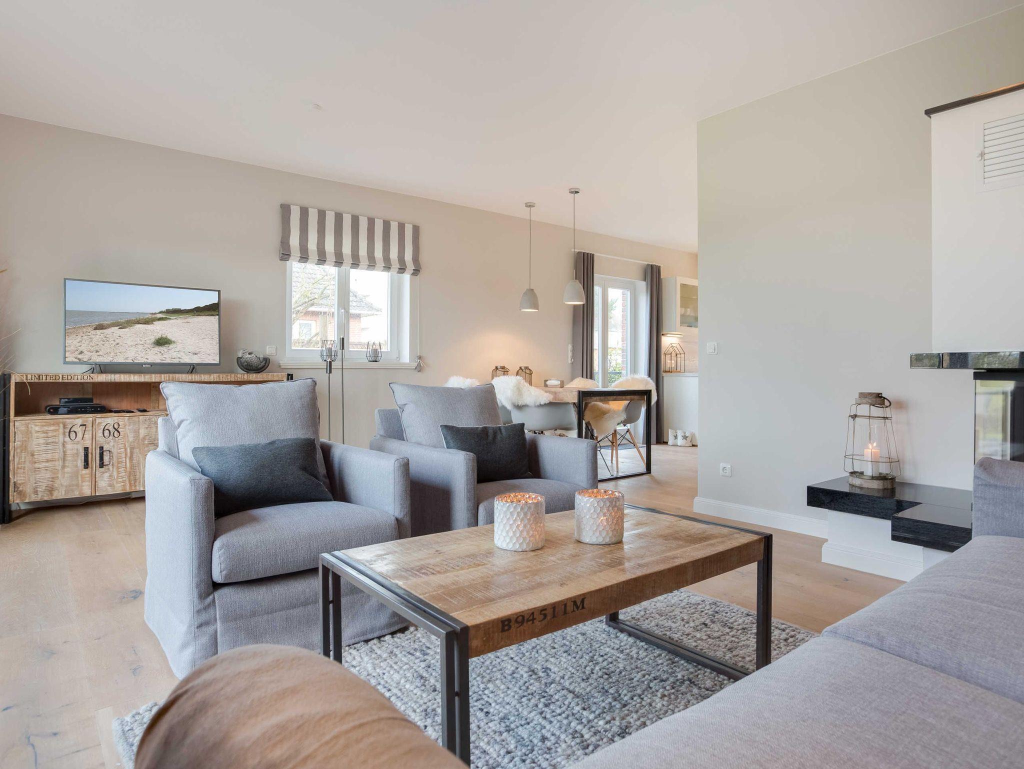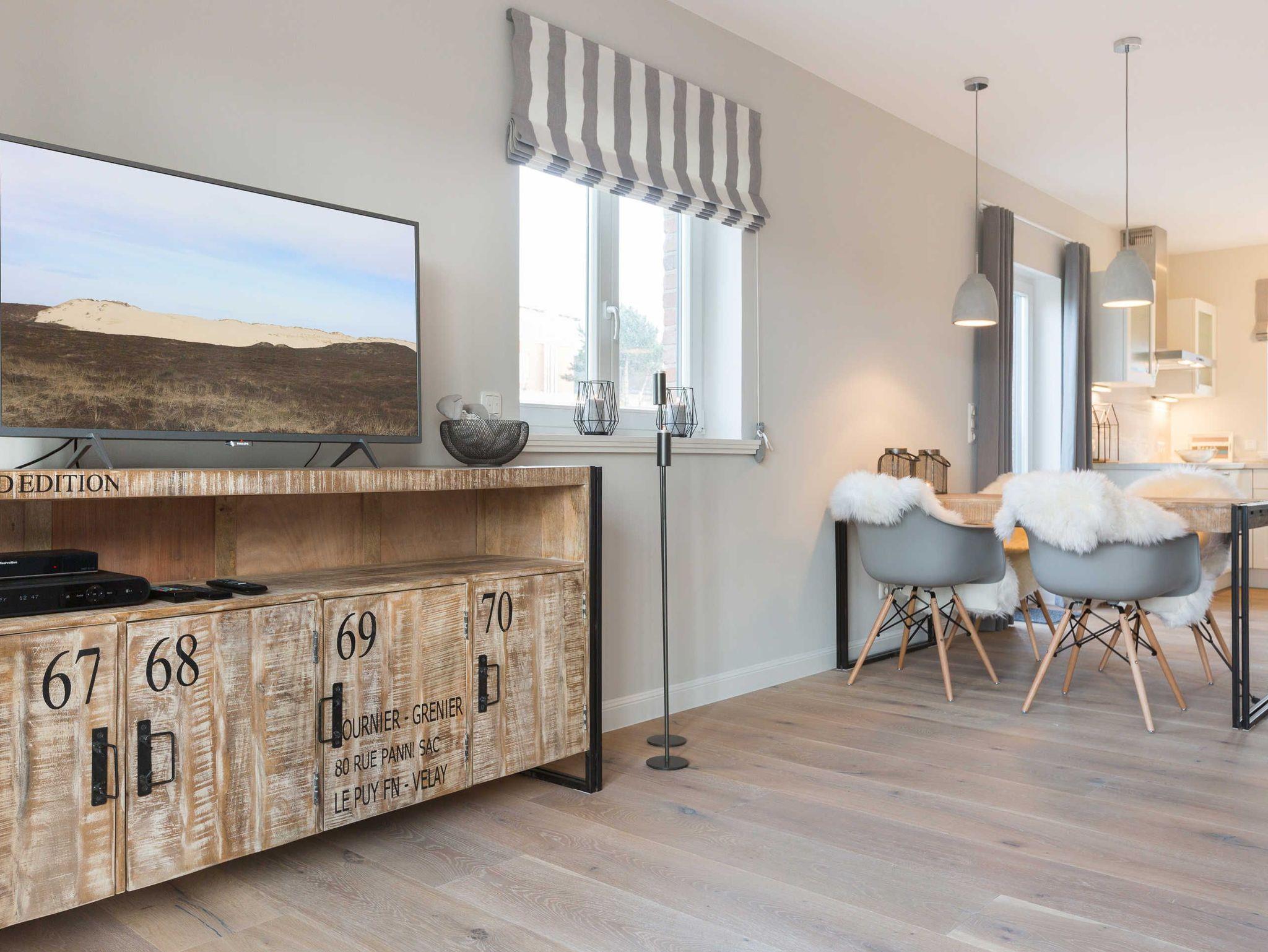 Modernes Beachhouse-Apartment "Robbenhüs" in List auf Sylt, nahe Hafen und Strand, mit Garten und Parkplatz.