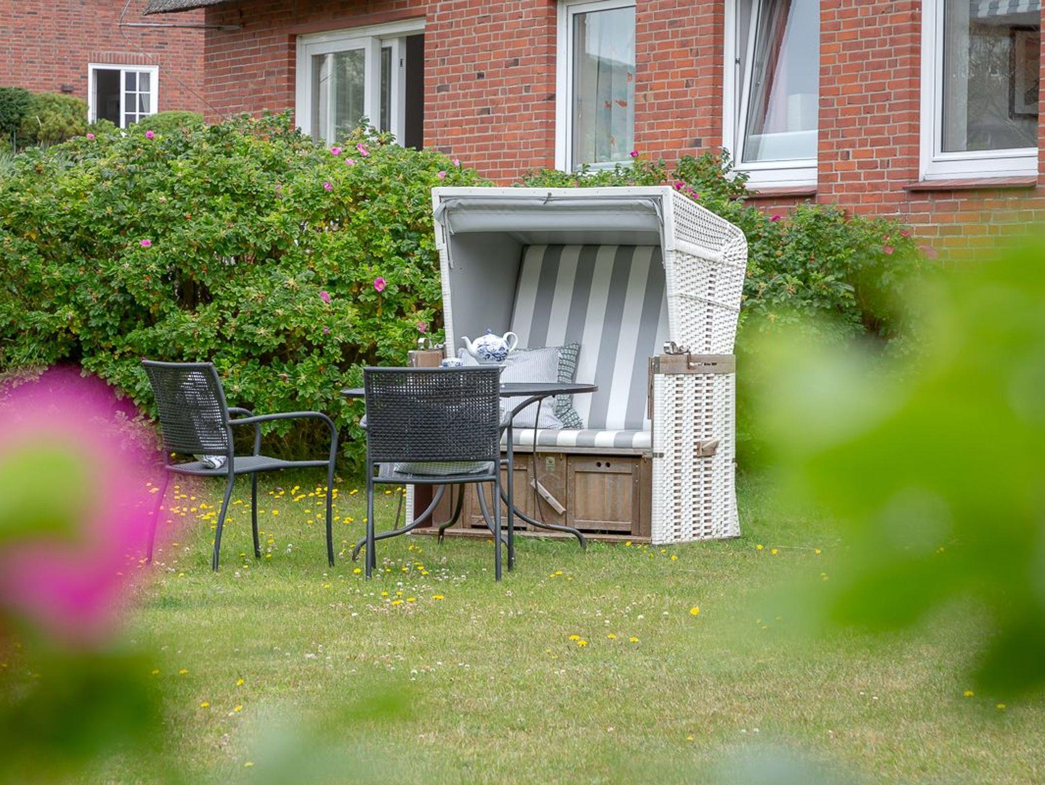 draußen verlegen. Im Sommer lädt ein Strandkorb zum Verweilen ein.