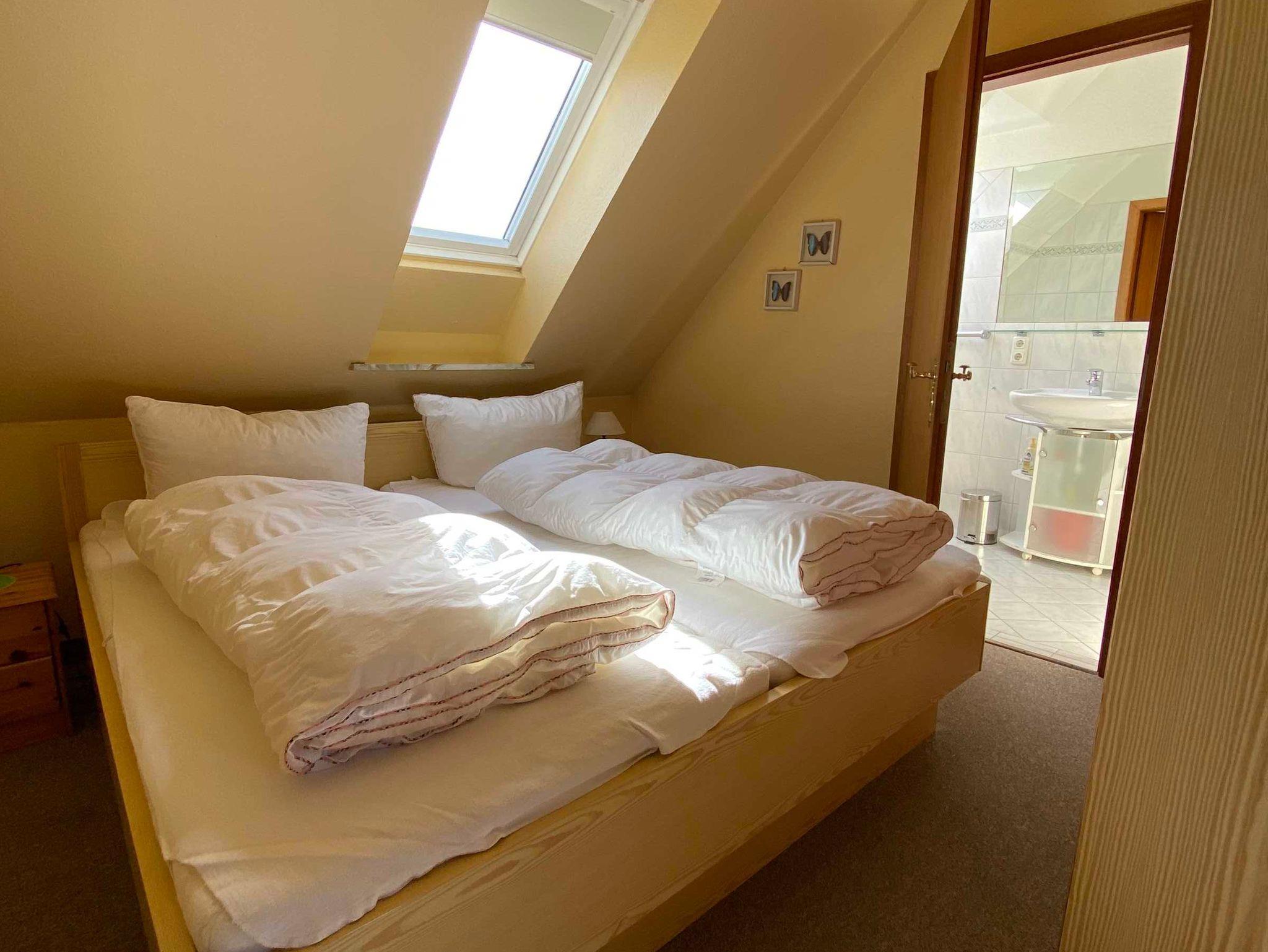 Wer es besonders gemütlich mag, wird unserer Apartment 2 in List lieben. Die Ferienwohnung liegt im Dachgeschoss und bietet mit 40 qm genug Platz für eine erholsame Auszeit zu zweit. Der Wohnbereich mit angeschlossener Küche integriert eine Esstisch-Gruppe sowie eine behagliche Sofalandschaft. Das separate Schlafzimmer ist mit 1 Doppelbett ausgestattet. Ein Dusch/WC-Bad komplettiert die Aufteilung.