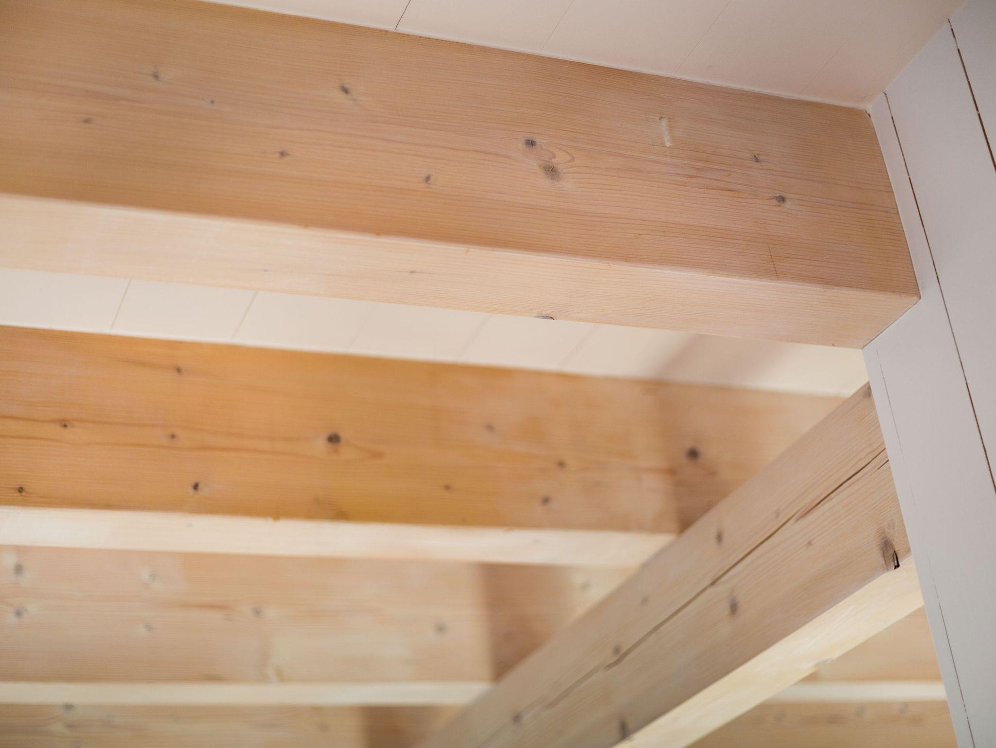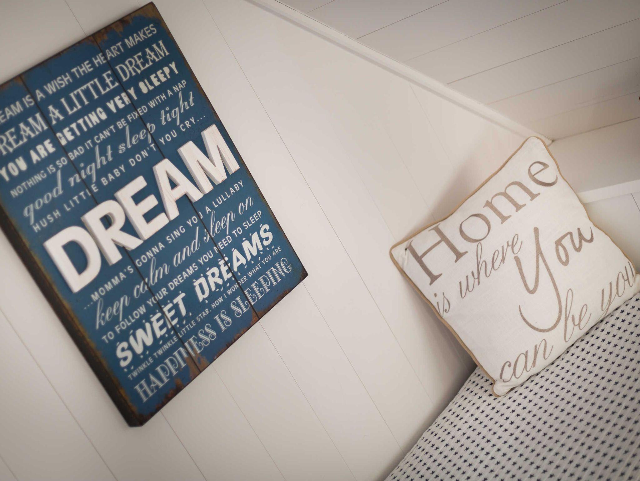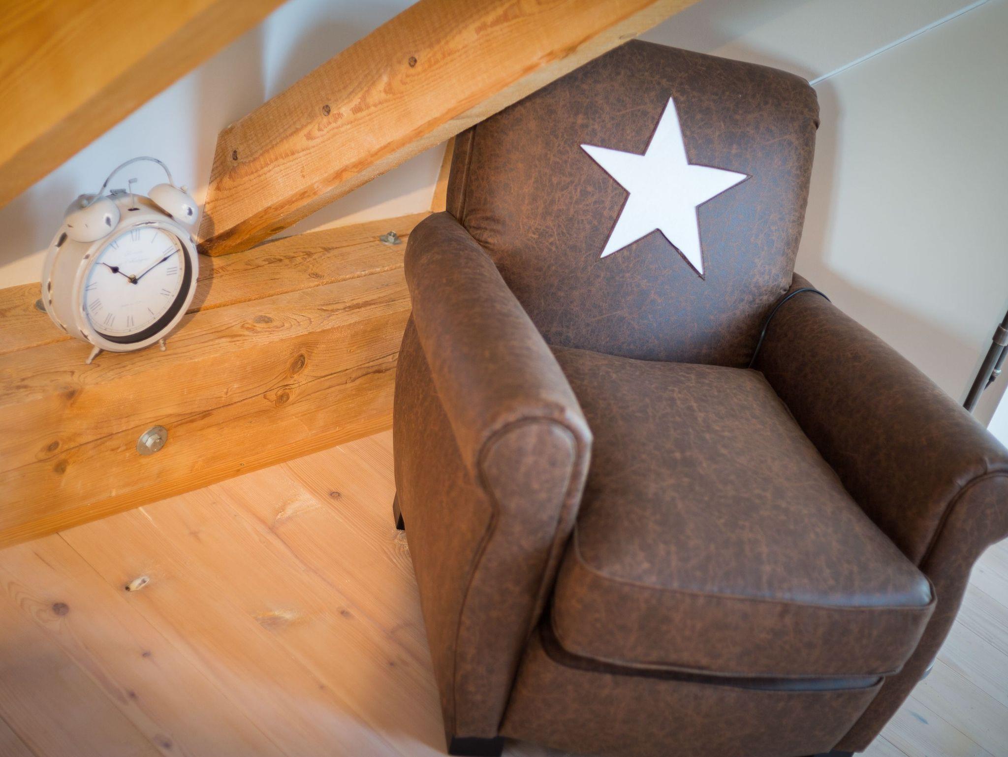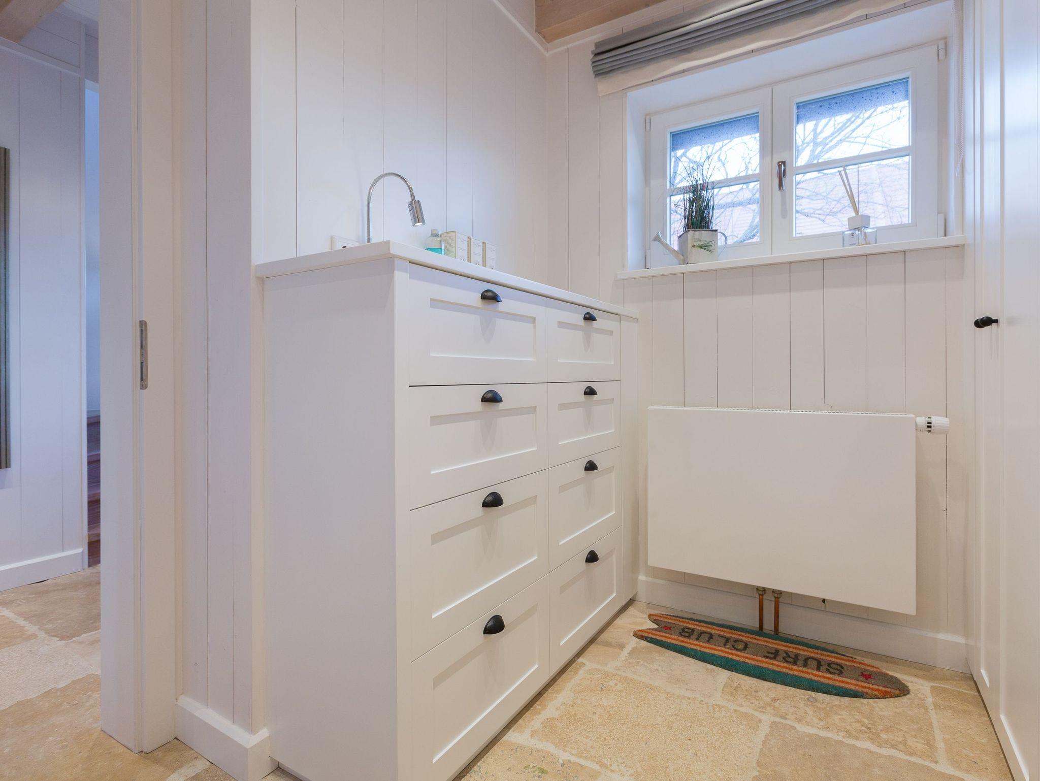 Das Obergeschoss bietet eine edle Optik mit weißer Holzvertäfelung. Oben befindet sich ein großes, helles Badezimmer mit Badewanne und geräumiger Duschkabine, zwei Waschbecken und WC. Im ersten Schlafzimmer findet sich ein 2 x 2 Meter großes Boxspringbett. Das zweite Schlafzimmer hat ein 1,60 x 2,00 Meter großes Doppelbett, einen kleinen Schreibtisch und ein eigenes Duschbad mit WC und separatem Waschraum mit Waschmaschine. Das dritte Schlafzimmer verfügt über ein ausziehbares Bett für ein bis zwei Personen, einen Schreibtisch und einen Fernseher. Alle Schlafzimmer sind mit Einbauschränken ausgestattet und bieten einen traumhaften Blick auf Meer und Natur.
