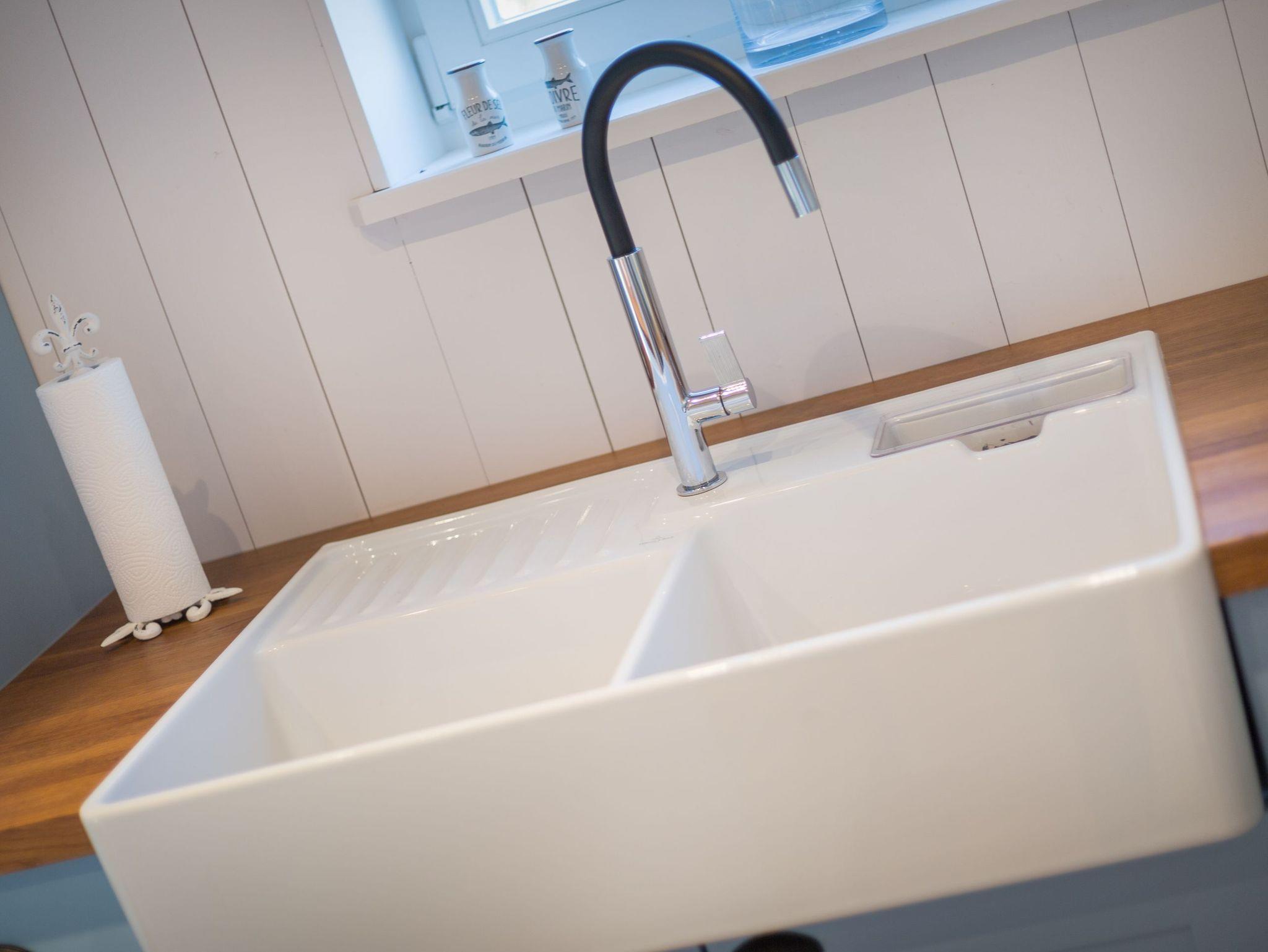 Im Erdgeschoss befindet sich ein geräumiges Wohnzimmer mit angeschlossenem Esszimmer und offener Wohnküche modernem Fernseher mit Satelliten-Empfang. Im Wohnzimmer sorgt der offene Kamin für romantische Stimmung. Die große Wohnküche ist vom geräumigen Esszimmer durch einen Frühstückstresen getrennt. Alle Annehmlichkeiten einer modernen Küche vom Herd bis hin zum Kühl- und Gefrierschrank und einer Spülmaschine sind vorhanden. Vom Wohnzimmer und Esszimmer kommen Sie auf die zwei Terrassen. Die Küche bietet einen weiteren Zugang zum Garten. Ebenfalls finden sich im Erdgeschoss ein Gäste-WC und ein Ankleidezimmer.