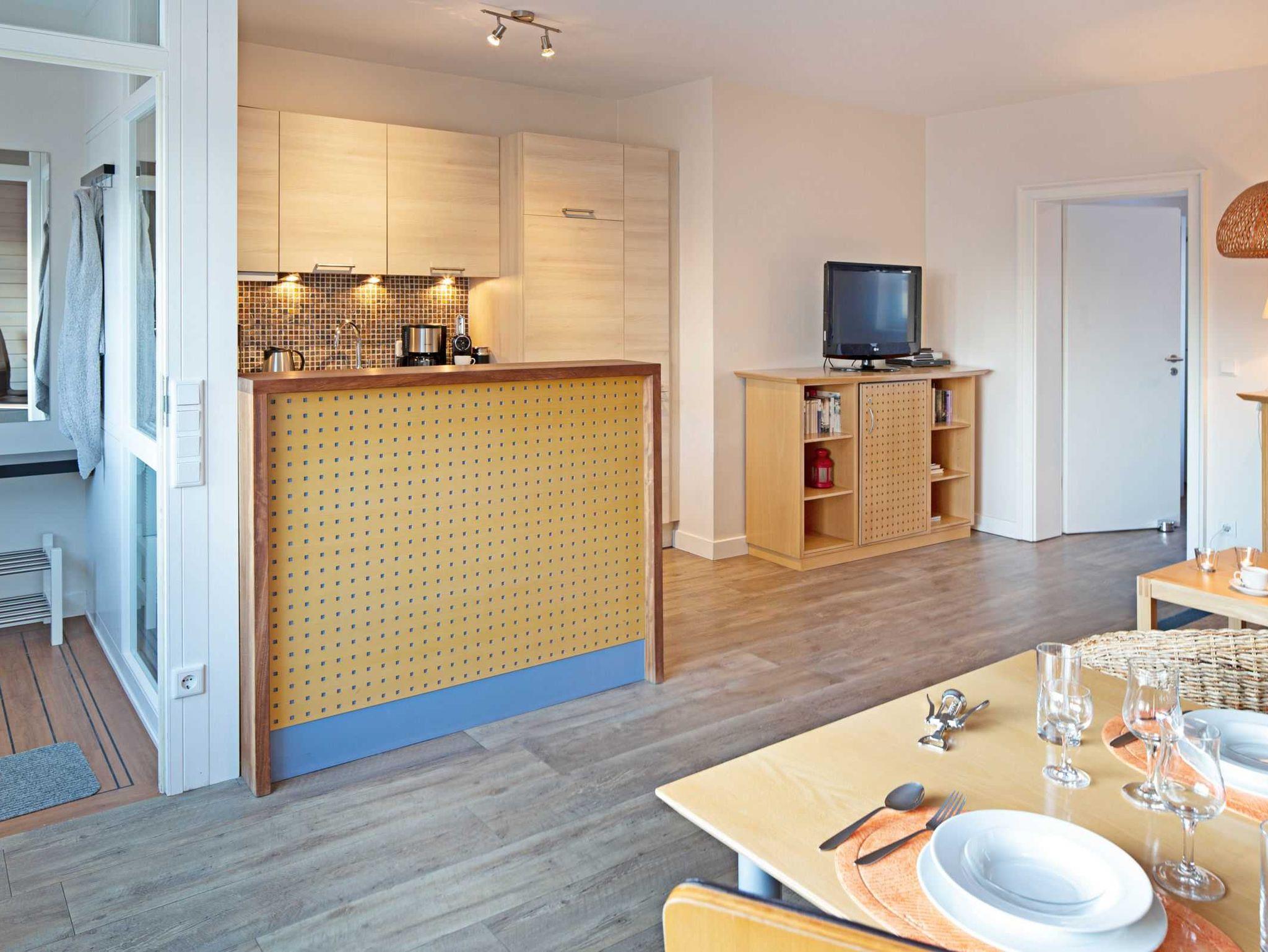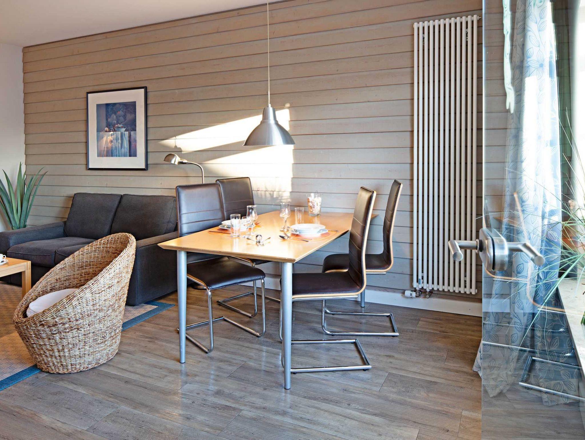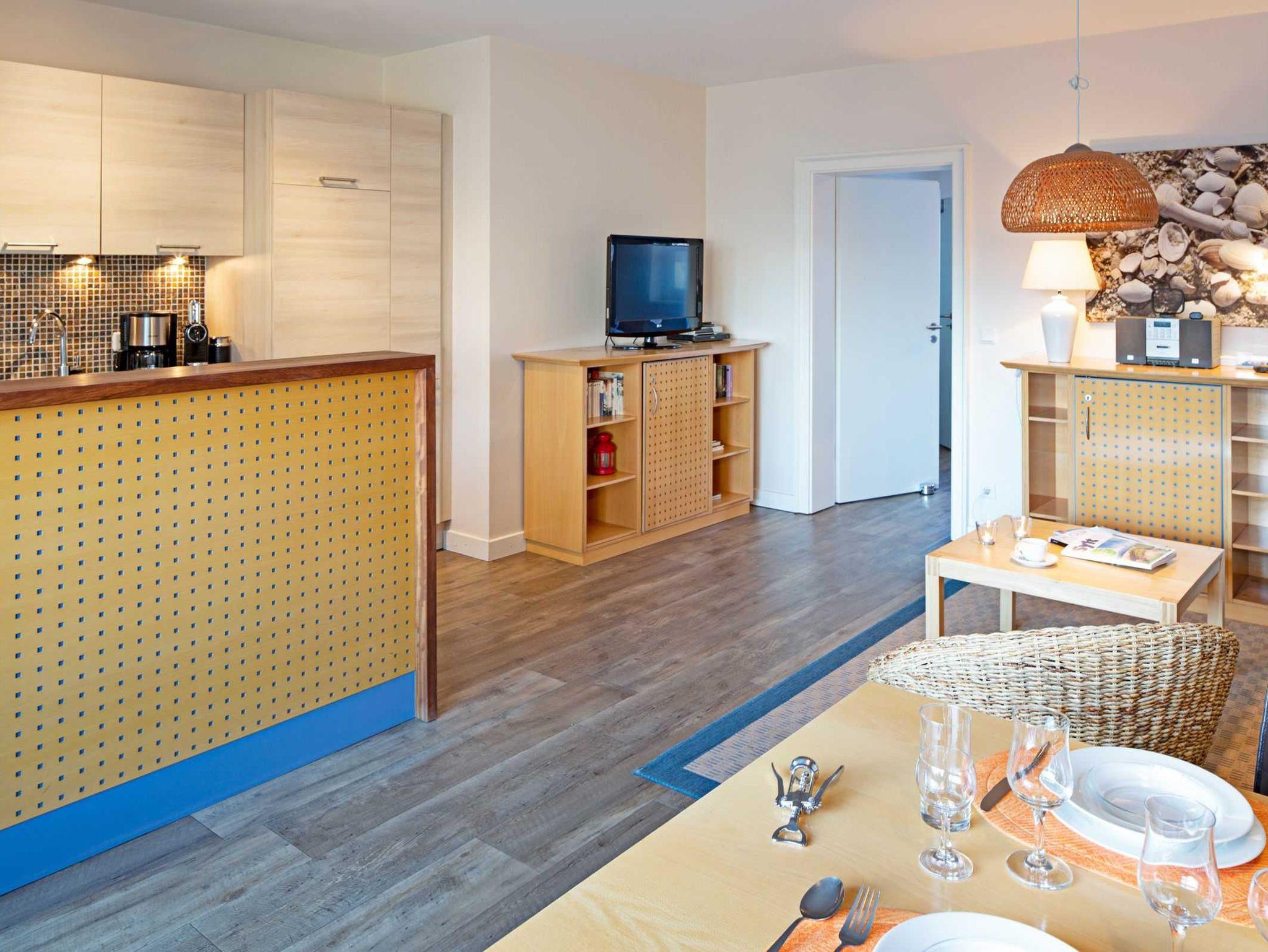 Elegant eingerichtetes Apartment "Pure Wonne Mandö" auf Sylt mit Terrasse, offener Küche und nah an Ausflugszielen.