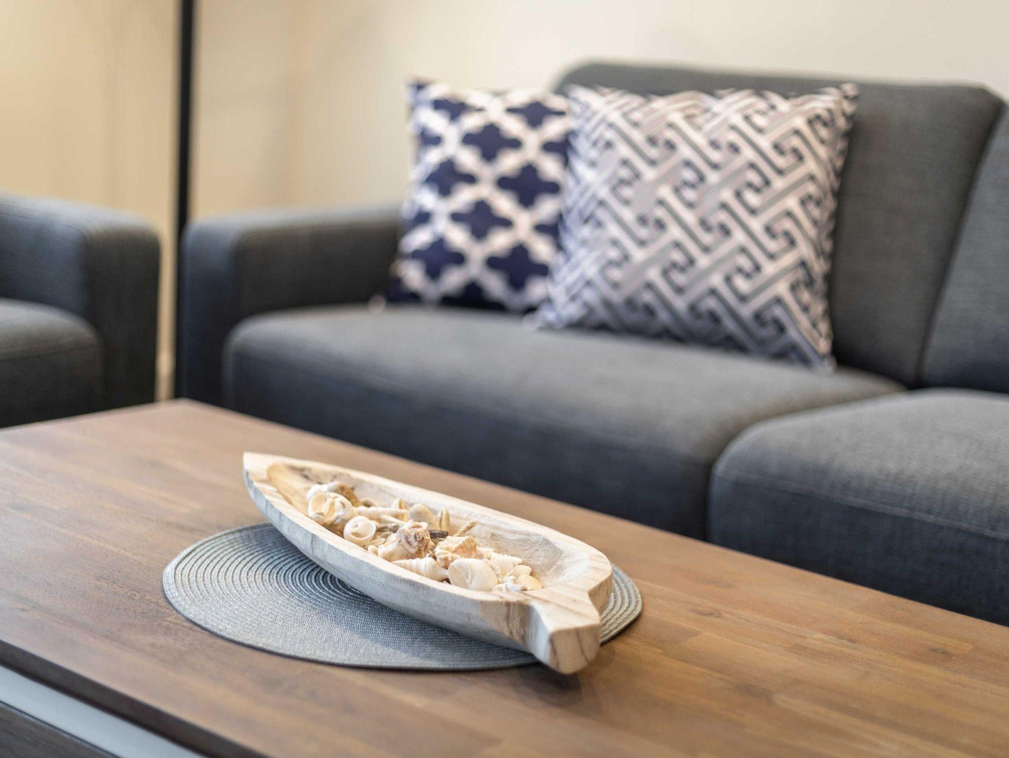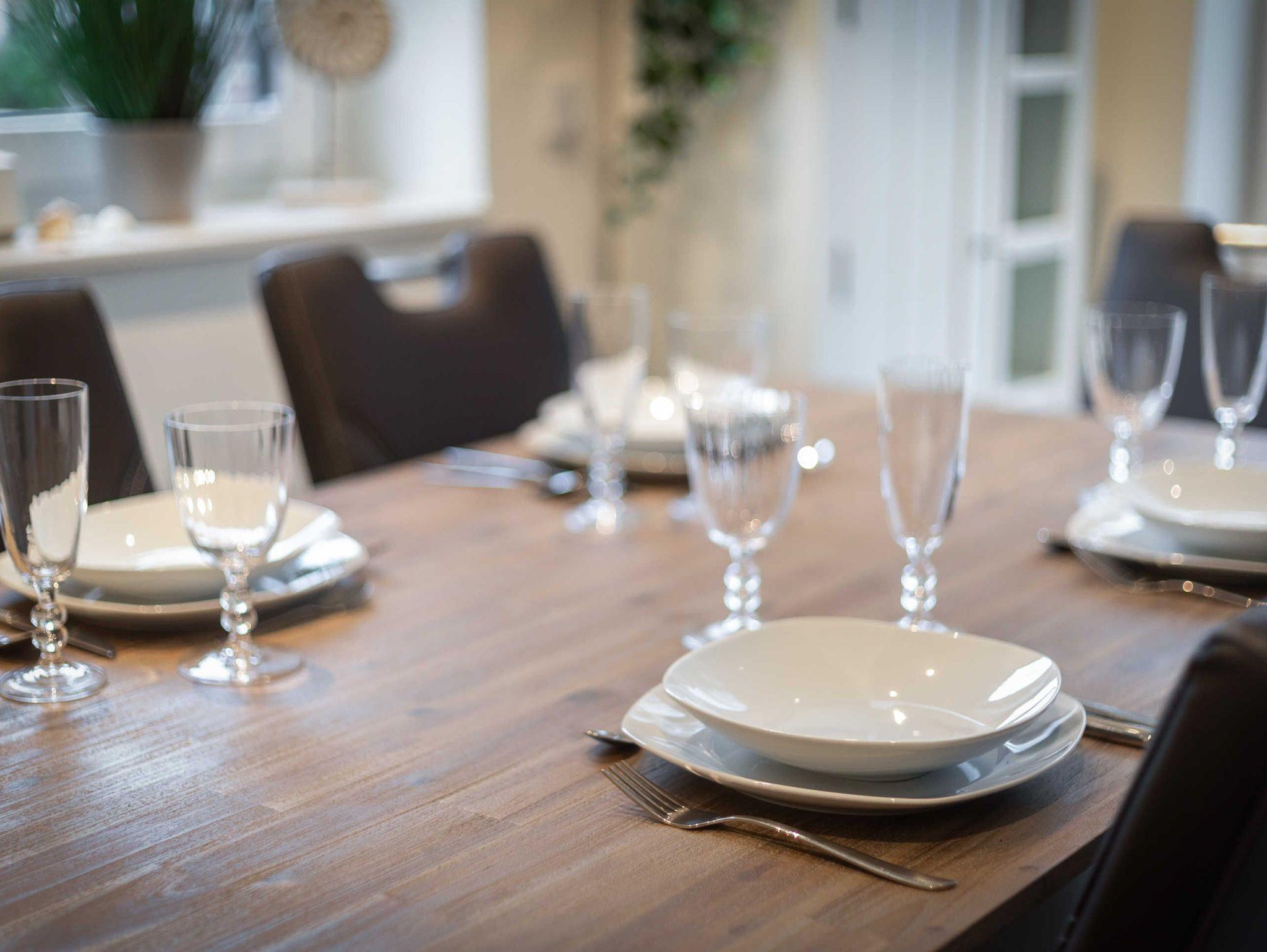 Das Ferienhaus bietet mit 135 qm Wohnfläche bis zu 6 Personen Platz. Die komfortabel ausgestattete Unterkunft integriert neben einem großzügigen Wohnzimmer auch drei Schlafzimmer mit je einem Doppelbett. An den Wohnbereich im Erdgeschoss schließt sich eine offene Küche an.