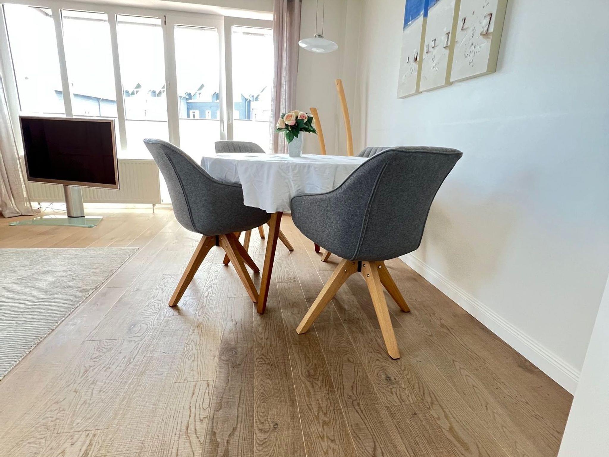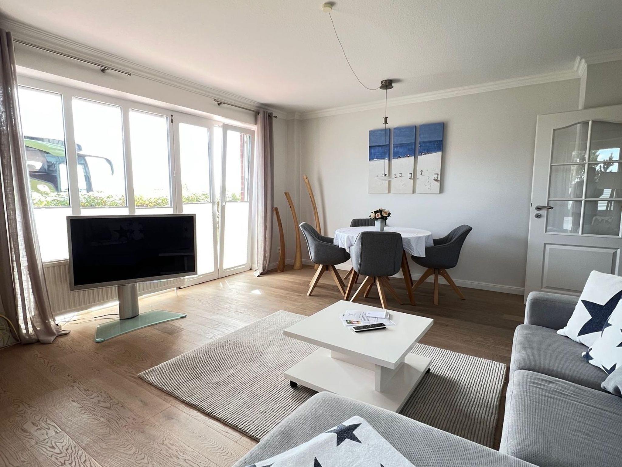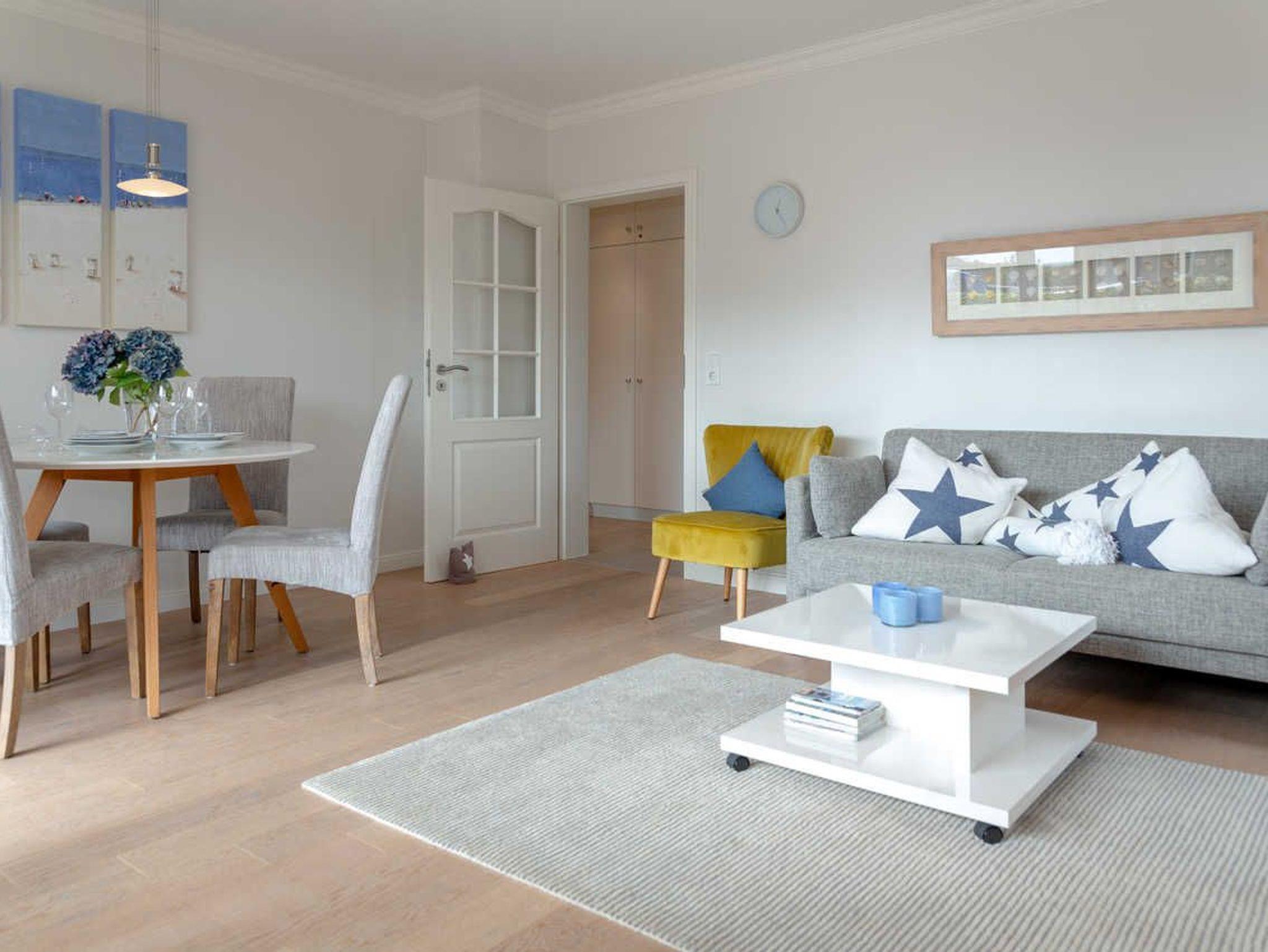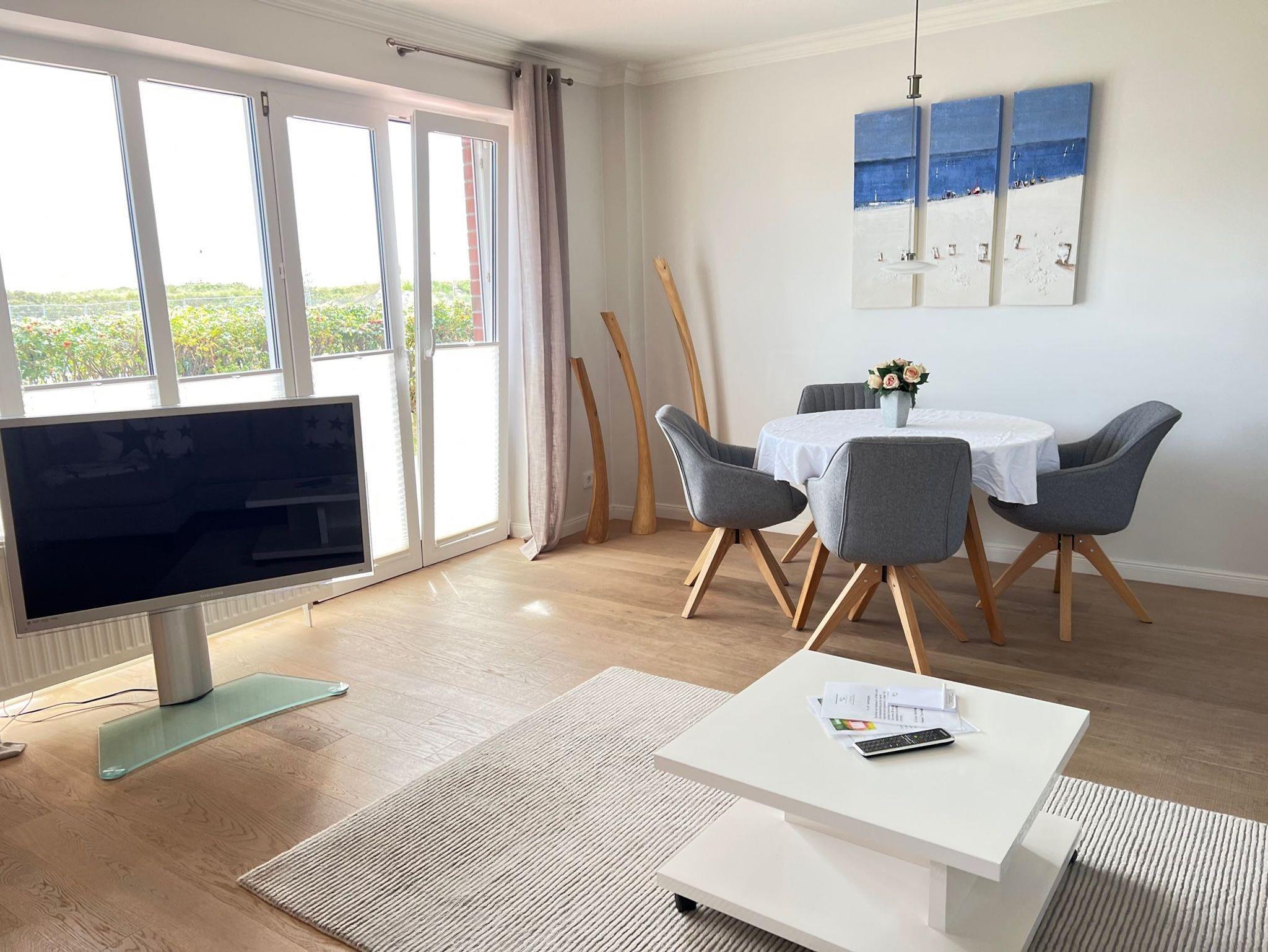Das lichtdurchflutete Apartment Strandzeit auf Sylt bietet nordisches Flair und Meerblick nur 100 m vom Strand entfernt.