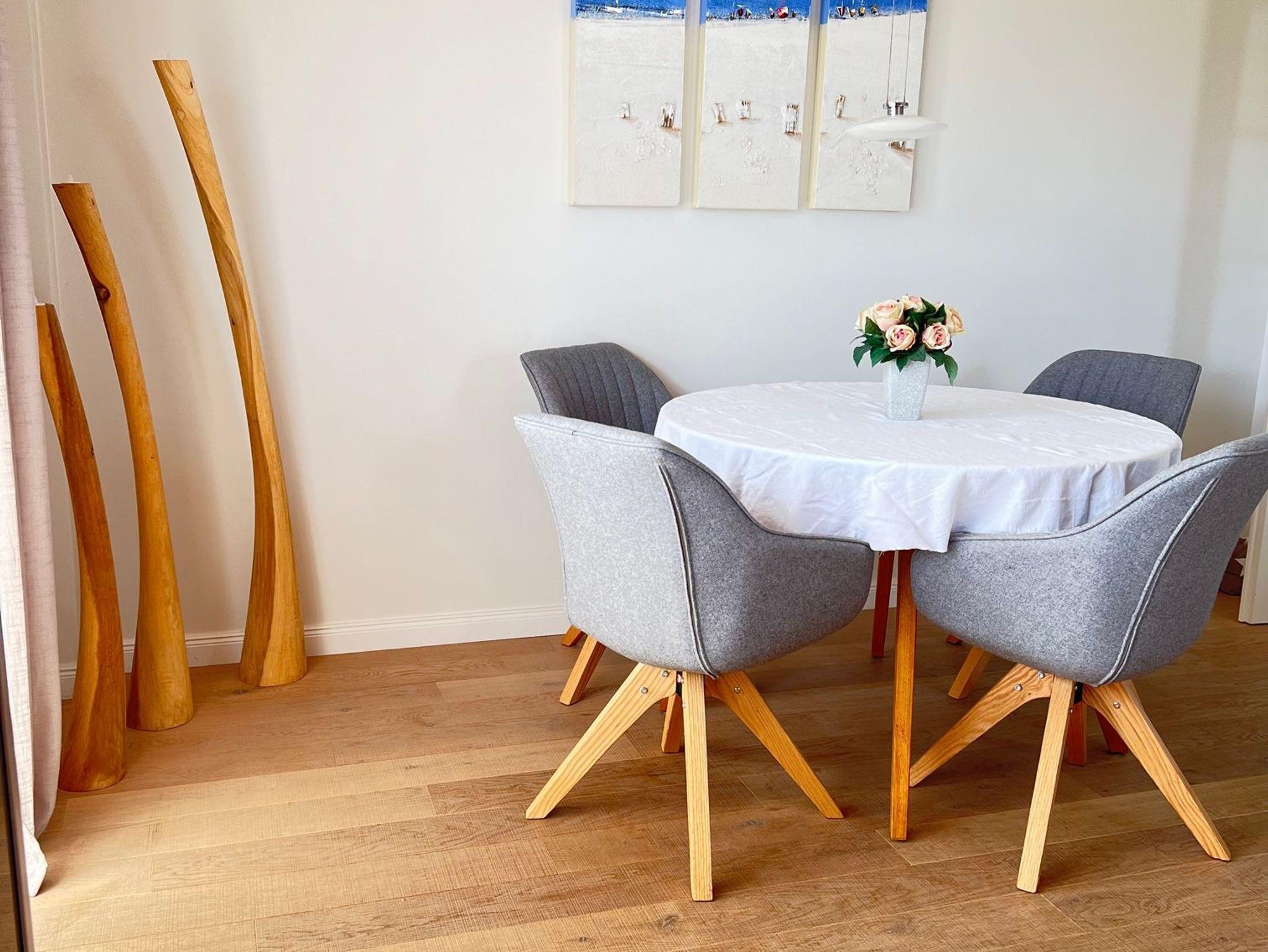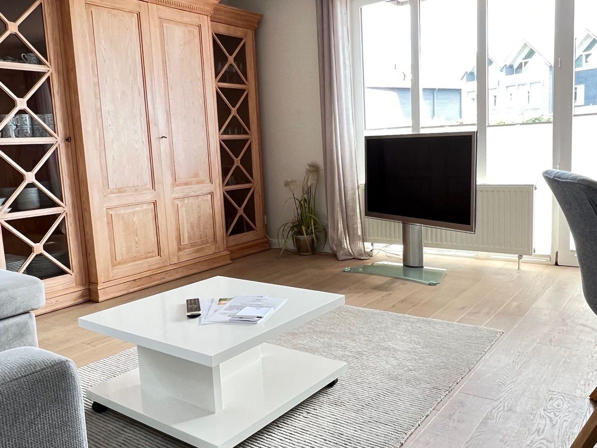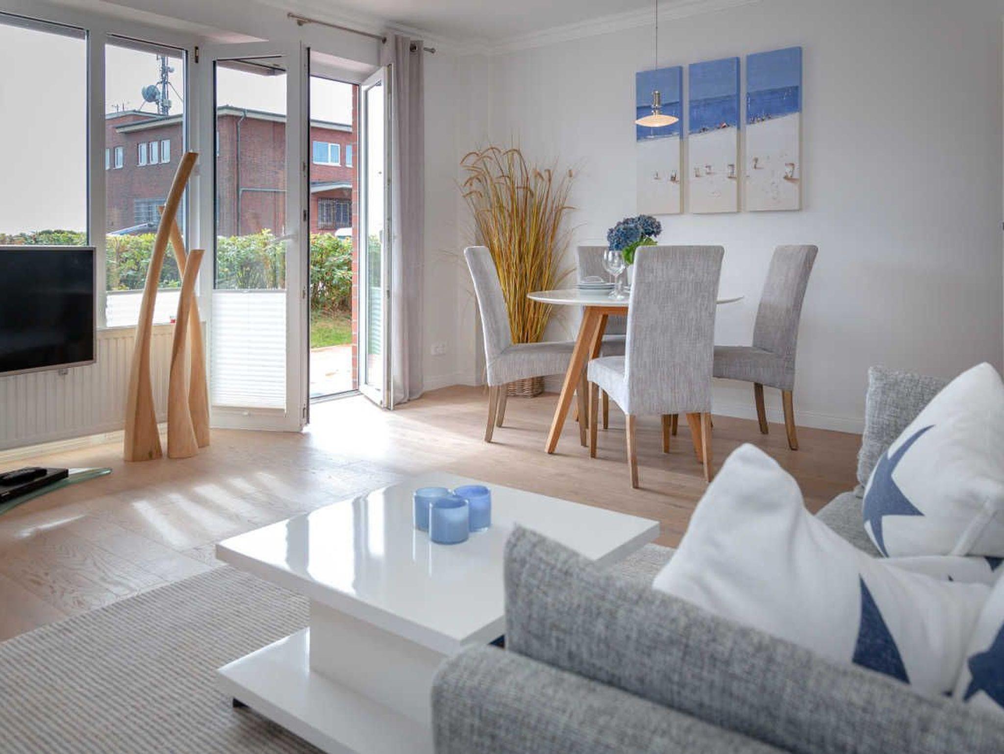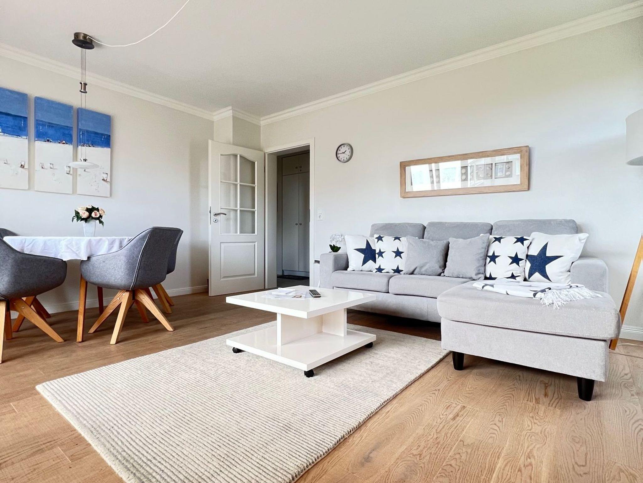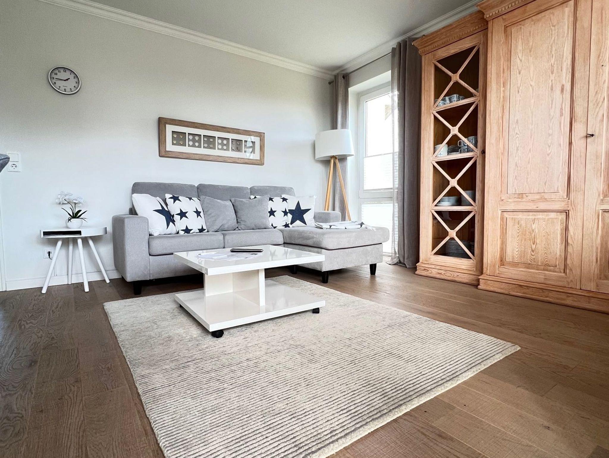 Das lichtdurchflutete Apartment Strandzeit auf Sylt bietet nordisches Flair und Meerblick nur 100 m vom Strand entfernt.