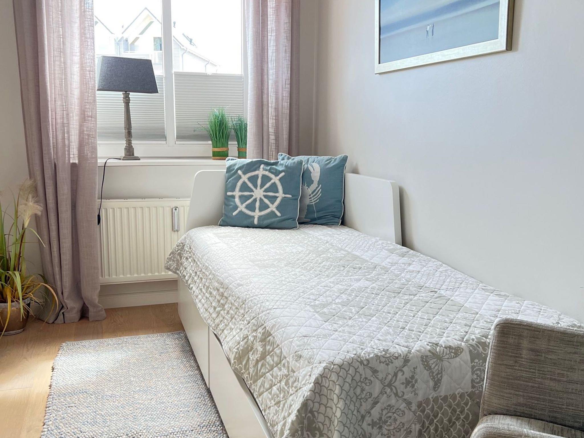 Unser Ferien-Apartment „Strandzeit“ vereint alles, was man sich von einem Urlaub auf der Insel Sylt wünscht: lichtdurchflutete Räume, nordisches Interieur und das Meer vor der Tür. Die Allergiker freundliche Unterkunft liegt ebenerdig und kann mit bis zu 3 Personen belegt werden. Sie integriert neben einem schönen Wohnraum mit angeschlossener Küche zwei Schlafzimmer mit einem Doppelbett bzw. einem Einzellbett sowie ein Badezimmer. Zur Wohnung gehört auch eine Terrasse mit Gartenmöbeln und einem Strandkorb. Ein Parkplatz komplettiert die Ausstattung.