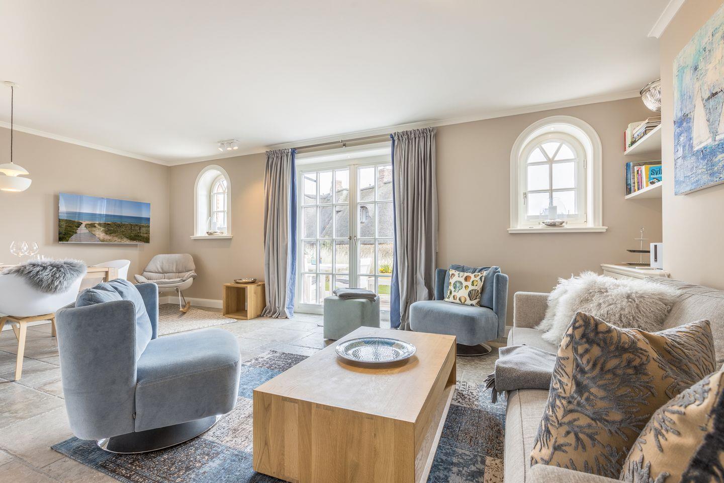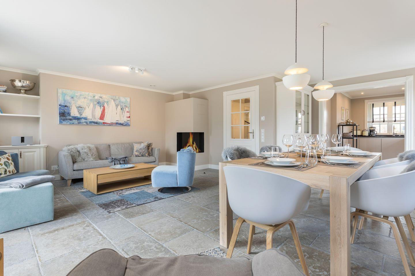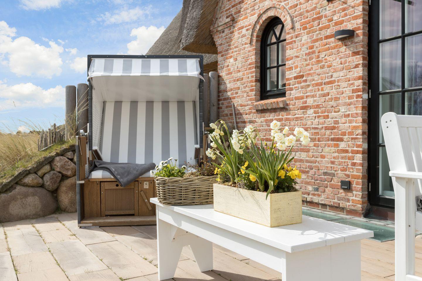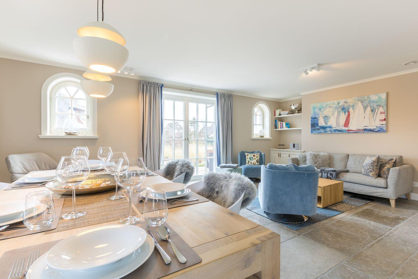 Bei diesem Ferienhaus handelt es sich um ein helles, modern eingerichtetes Hausteil unter Reet mit Platz für bis zu vier Personen, das zu Urlaubsträumen einlädt. Der Wohnraum des Hauses bietet Ihnen eine gemütliche Sofa- und Sessellandschaft mit Blick auf den Kamin und einen großzügigen Essbereich. Die offene Küche ist top-ausgestattet, sodass einem leckeren Urlaubs-Dinner nichts im Wege steht. Vom Wohnraum aus betreten Sie Ihren Garten mit möblierter Terrasse. Im Erdgeschoss befindet sich außerdem ein Gäste-WC.