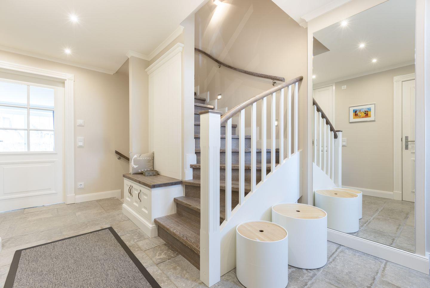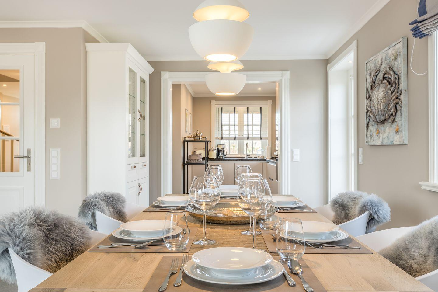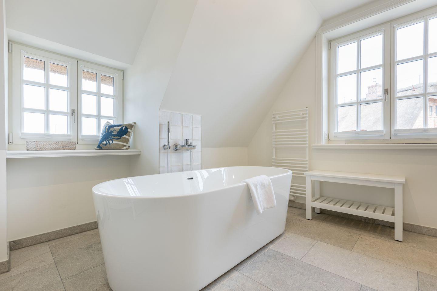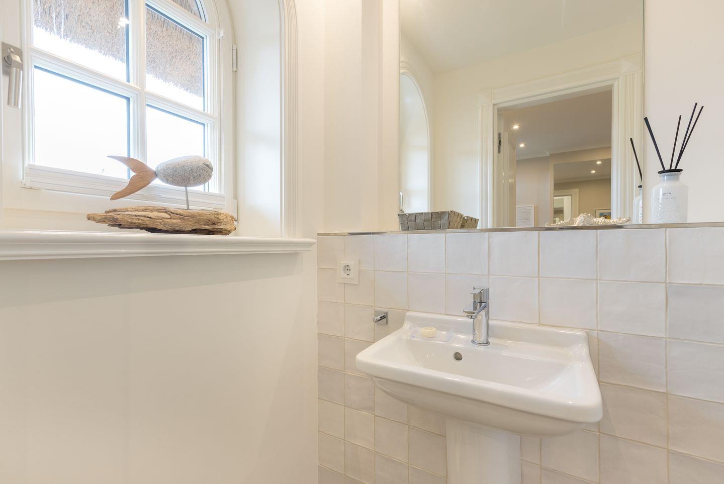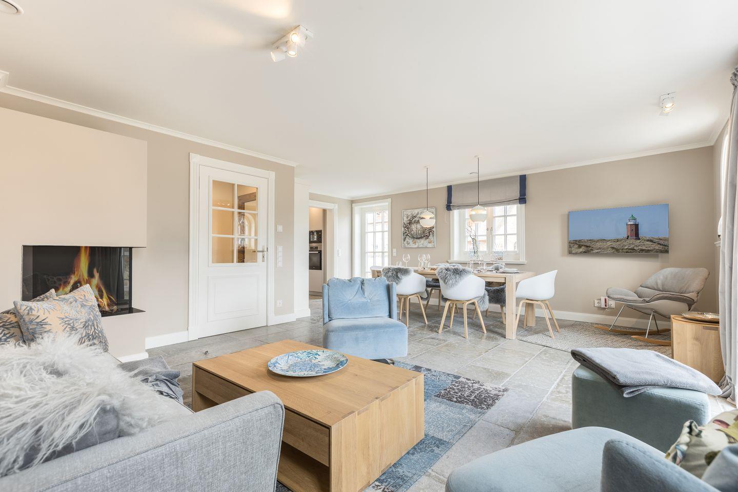 Bei diesem Ferienhaus handelt es sich um ein helles, modern eingerichtetes Hausteil unter Reet mit Platz für bis zu vier Personen, das zu Urlaubsträumen einlädt. Der Wohnraum des Hauses bietet Ihnen eine gemütliche Sofa- und Sessellandschaft mit Blick auf den Kamin und einen großzügigen Essbereich. Die offene Küche ist top-ausgestattet, sodass einem leckeren Urlaubs-Dinner nichts im Wege steht. Vom Wohnraum aus betreten Sie Ihren Garten mit möblierter Terrasse. Im Erdgeschoss befindet sich außerdem ein Gäste-WC.