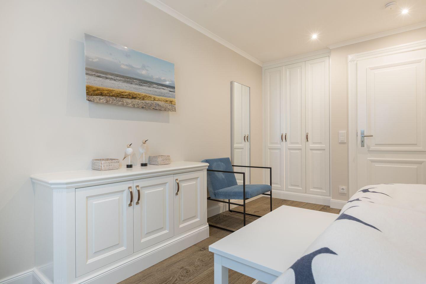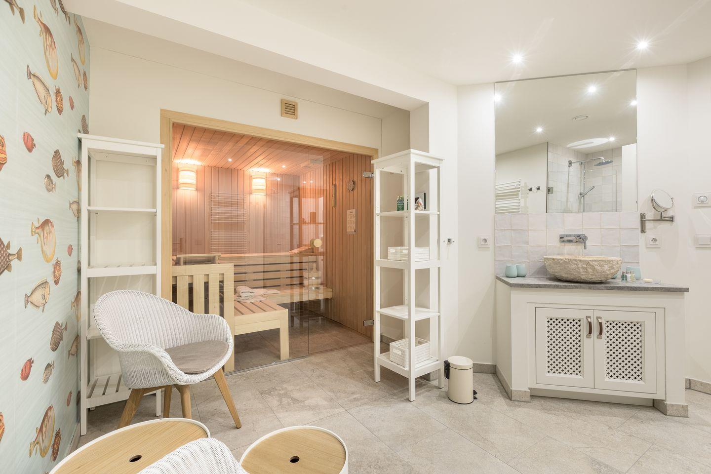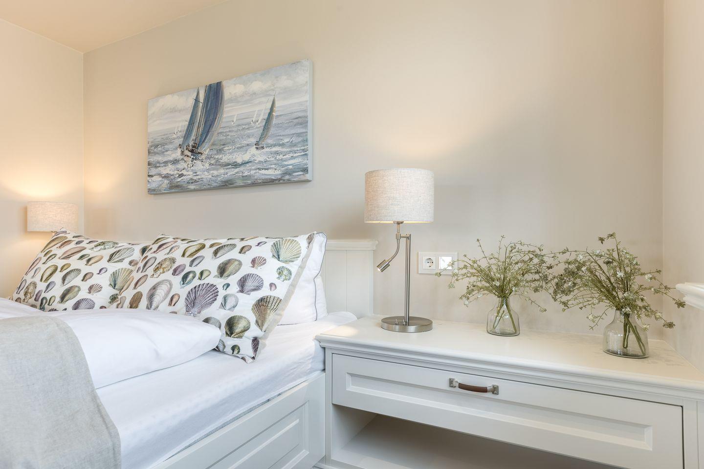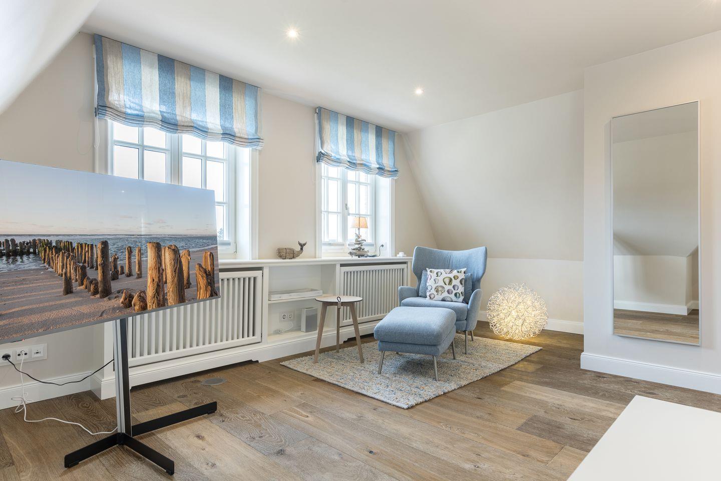 Im Untergeschoss des Hauses können Sie die ruhigen Stunden in Ihrem Wellnessbad mit privater Sauna und Dusche genießen. Gerade in der kalten Jahreszeit ist es umso schöner, nach einem langen Spaziergang über den Lister Deich ein paar wärmende Sauna-Gänge zu genießen. Im Untergeschoss befindet sich der zweite Schlafraum mit Doppelbett.