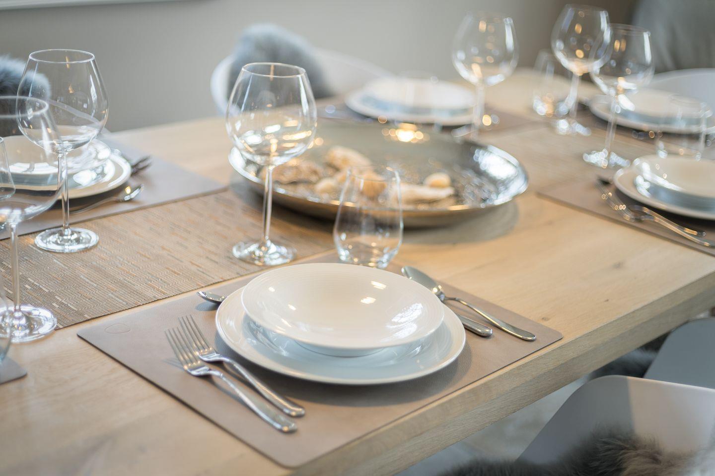 EG: Wohnraum mit Flatscreen-TV und Kamin, Essbereich, offene Küche mit Backofen, Microwelle, Gefrierschrank mit Eiswürfelbereiter, Geschirrspüler, Kaffeemaschine, Nespressomaschine. Gäste-WC, Garten mit zwei Terrassen und Gartenmöbeln (ca. von April bis Oktober)