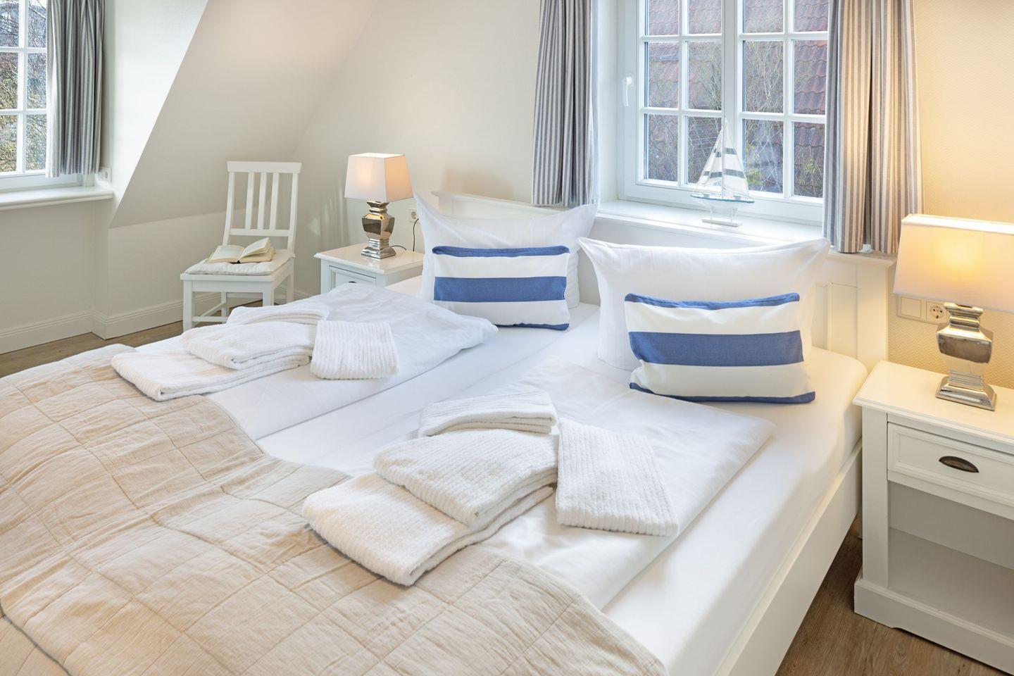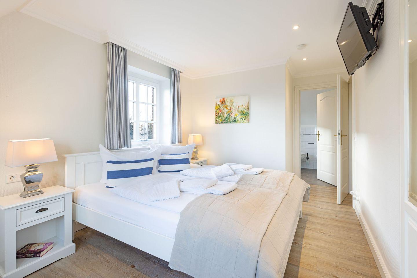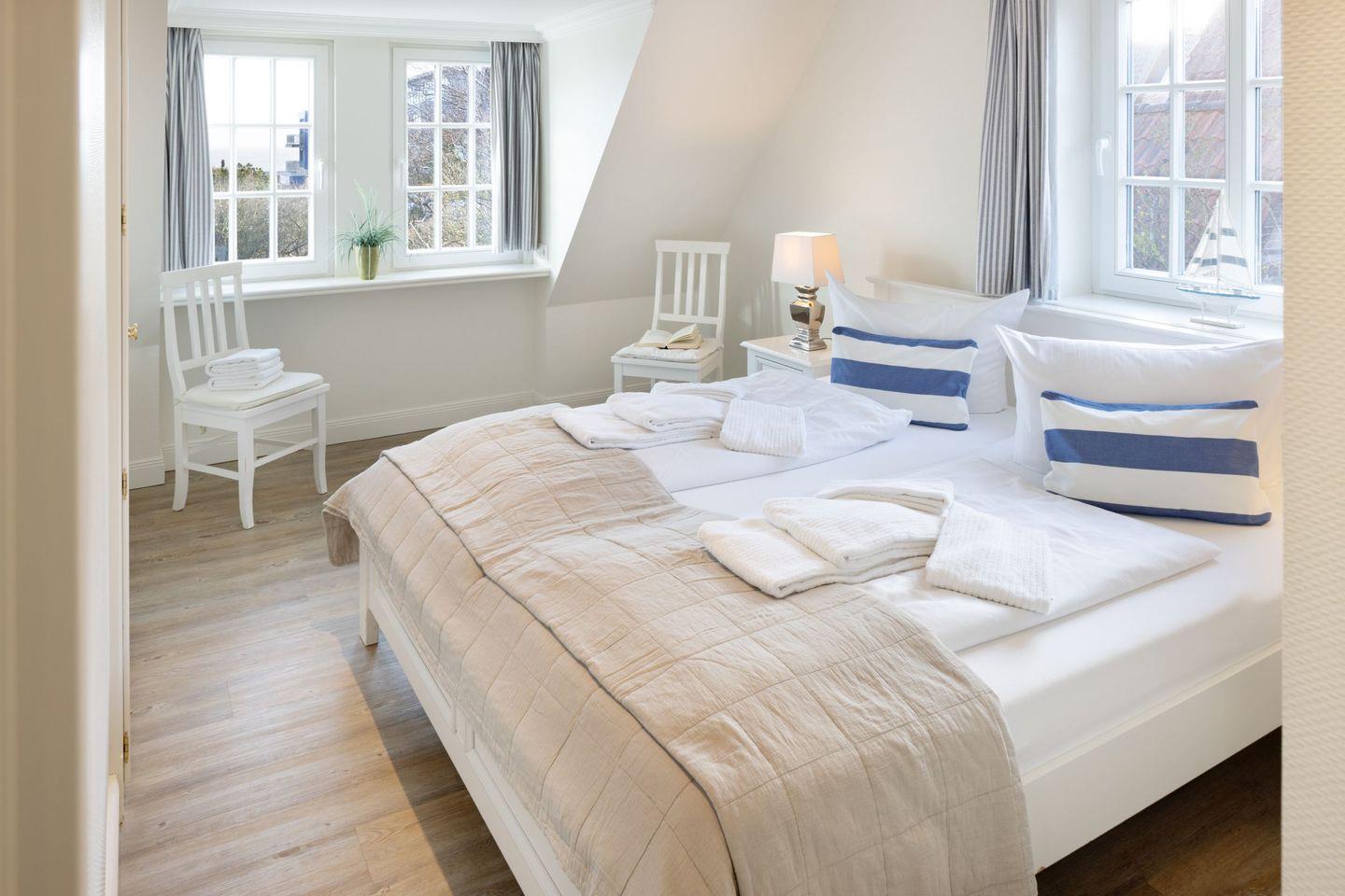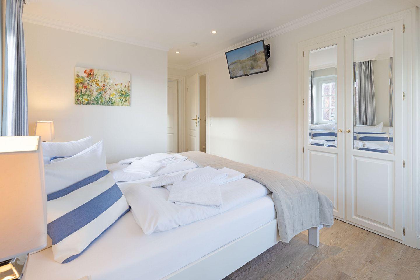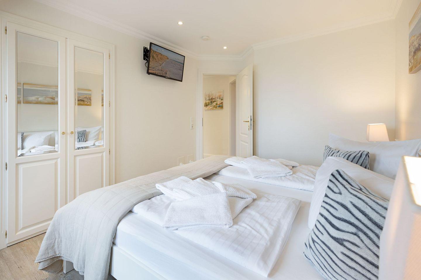 Im ersten Stock des Hauses finden sie zwei Schlafzimmer mit Doppelbett und Fernseher (eingeschränkter Meerblick).