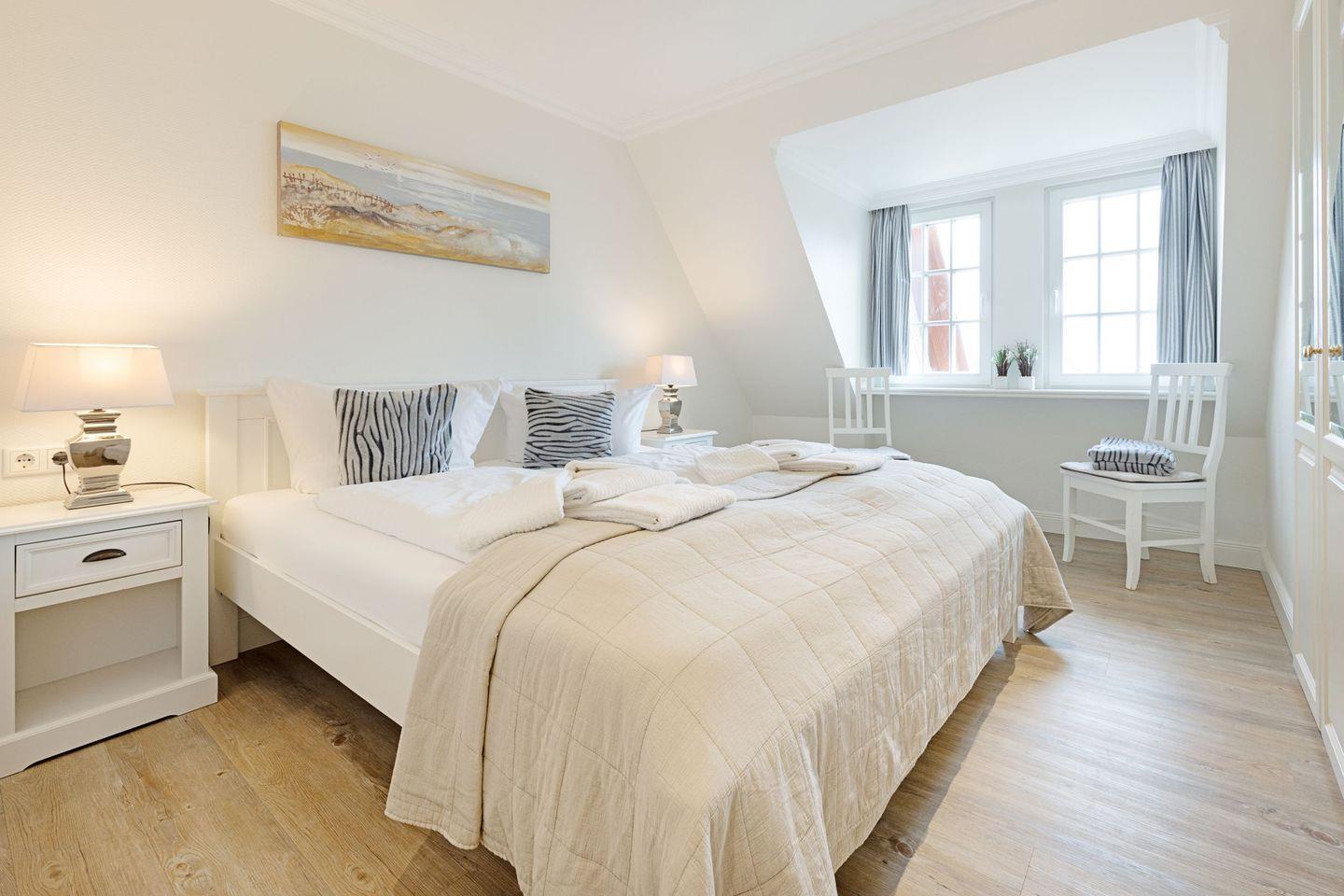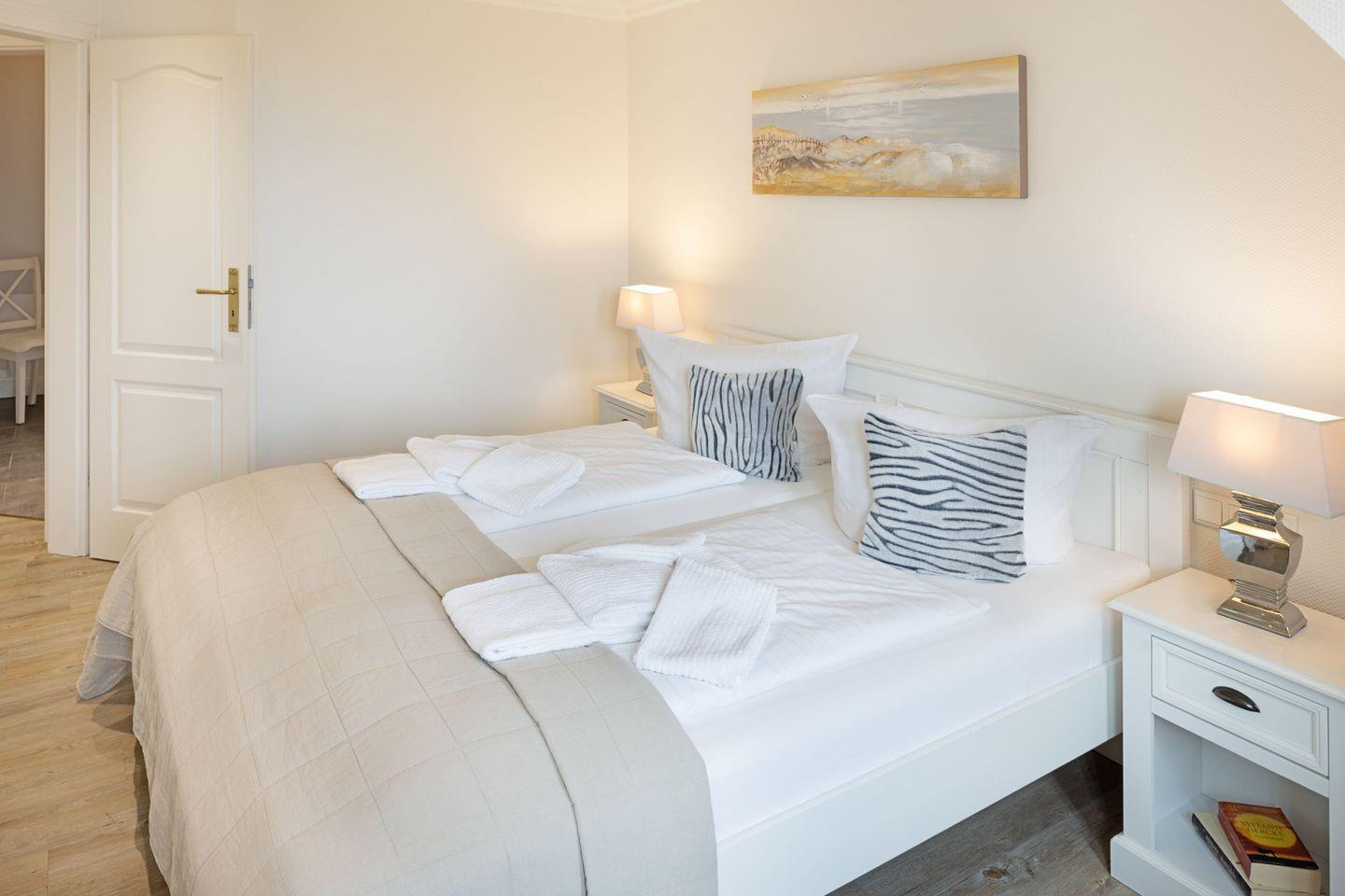 Im Dachgeschoss des Hauses finden Sie das dritte Schlafzimmer mit zwei Einzelbetten und einem Fernseher sowie einen gemütlichen Aufenthaltsraum.
