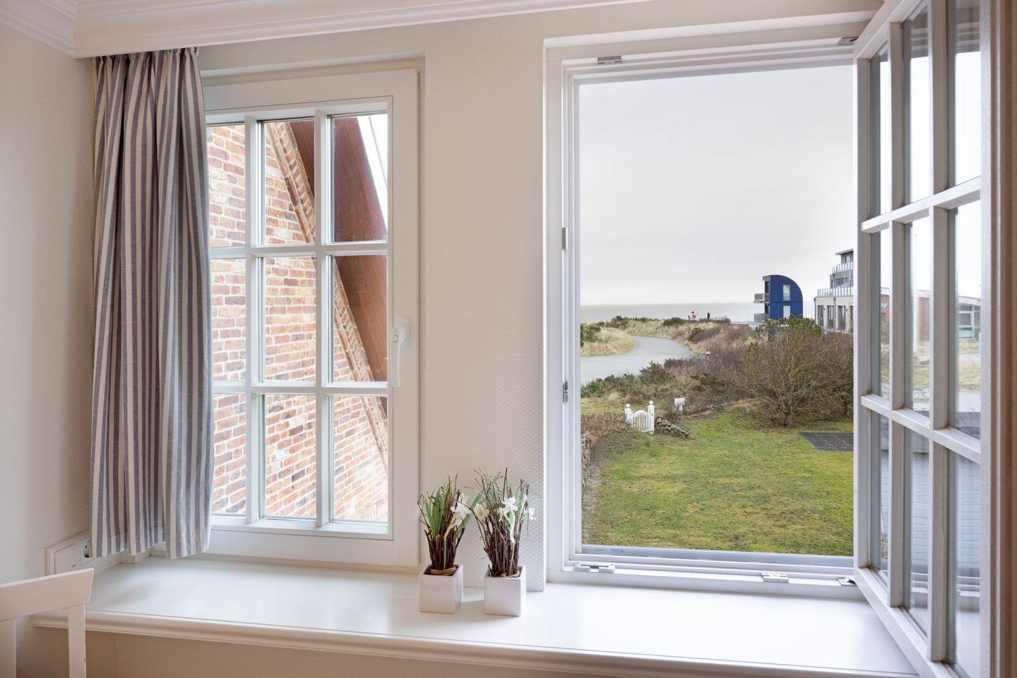 Das Ferienhaus Aurora auf Sylt bietet mit Sauna, Kamin und Meerblick eine stilvolle Unterkunft in Strandnähe.