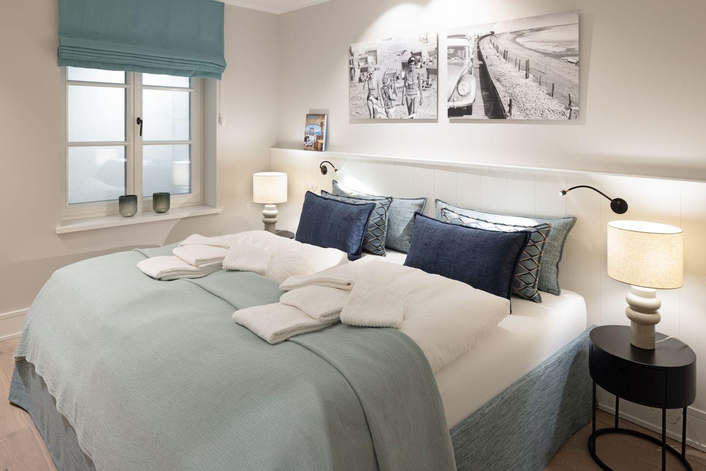 Im Dachgeschoss des Hauses finden sie zwei Schlafzimmer mit Doppelbett und Fernseher.