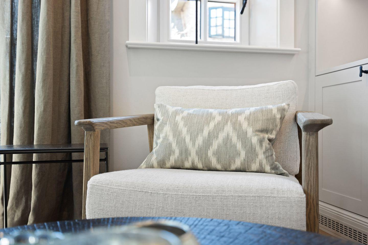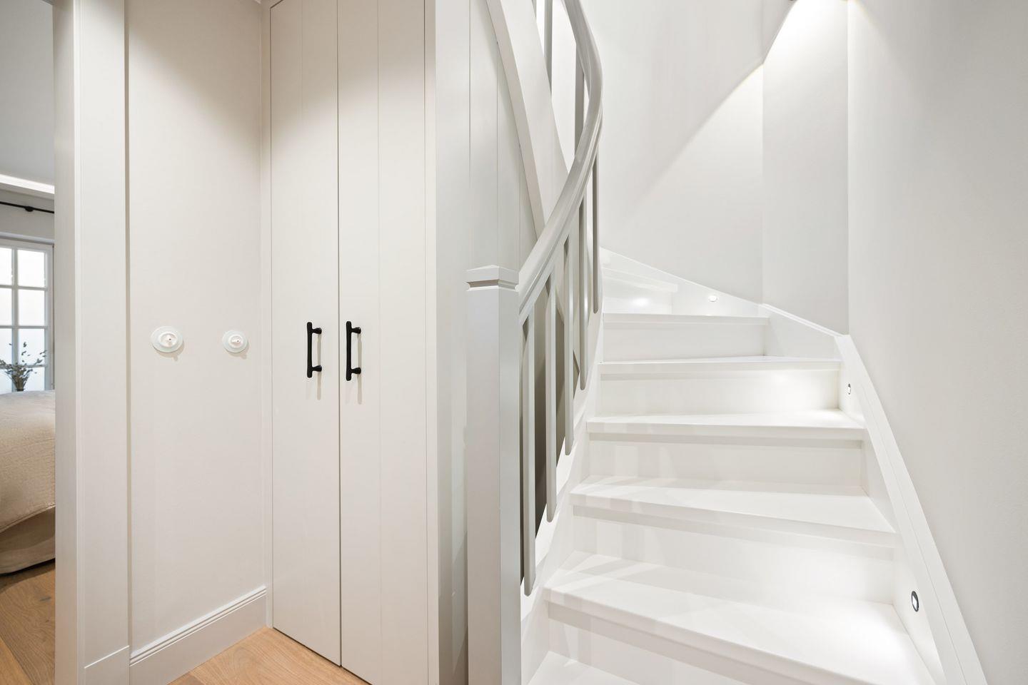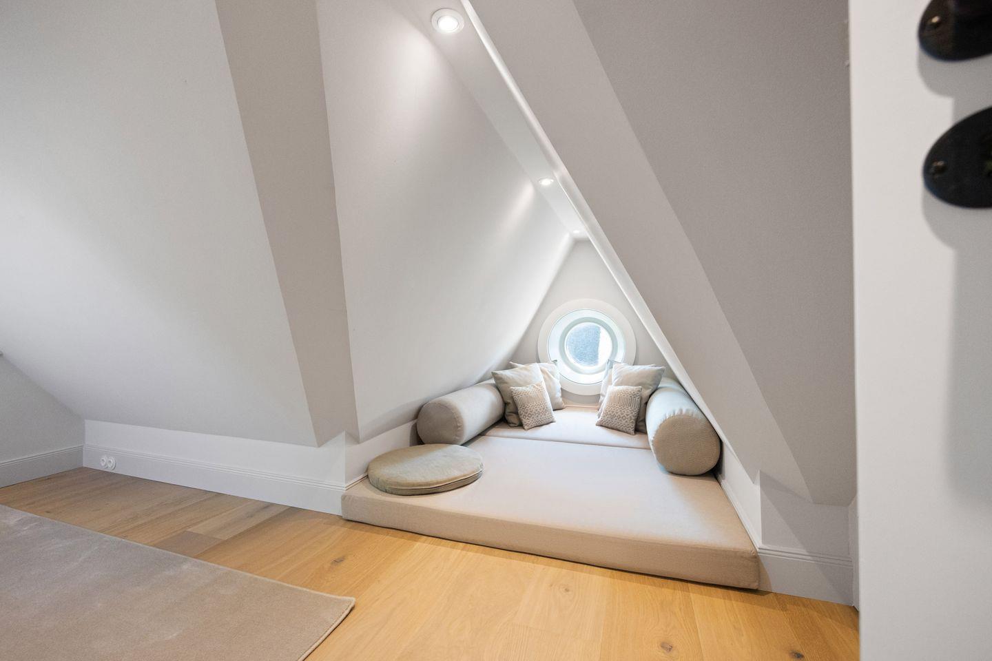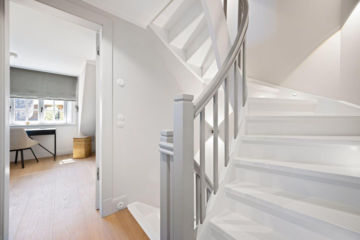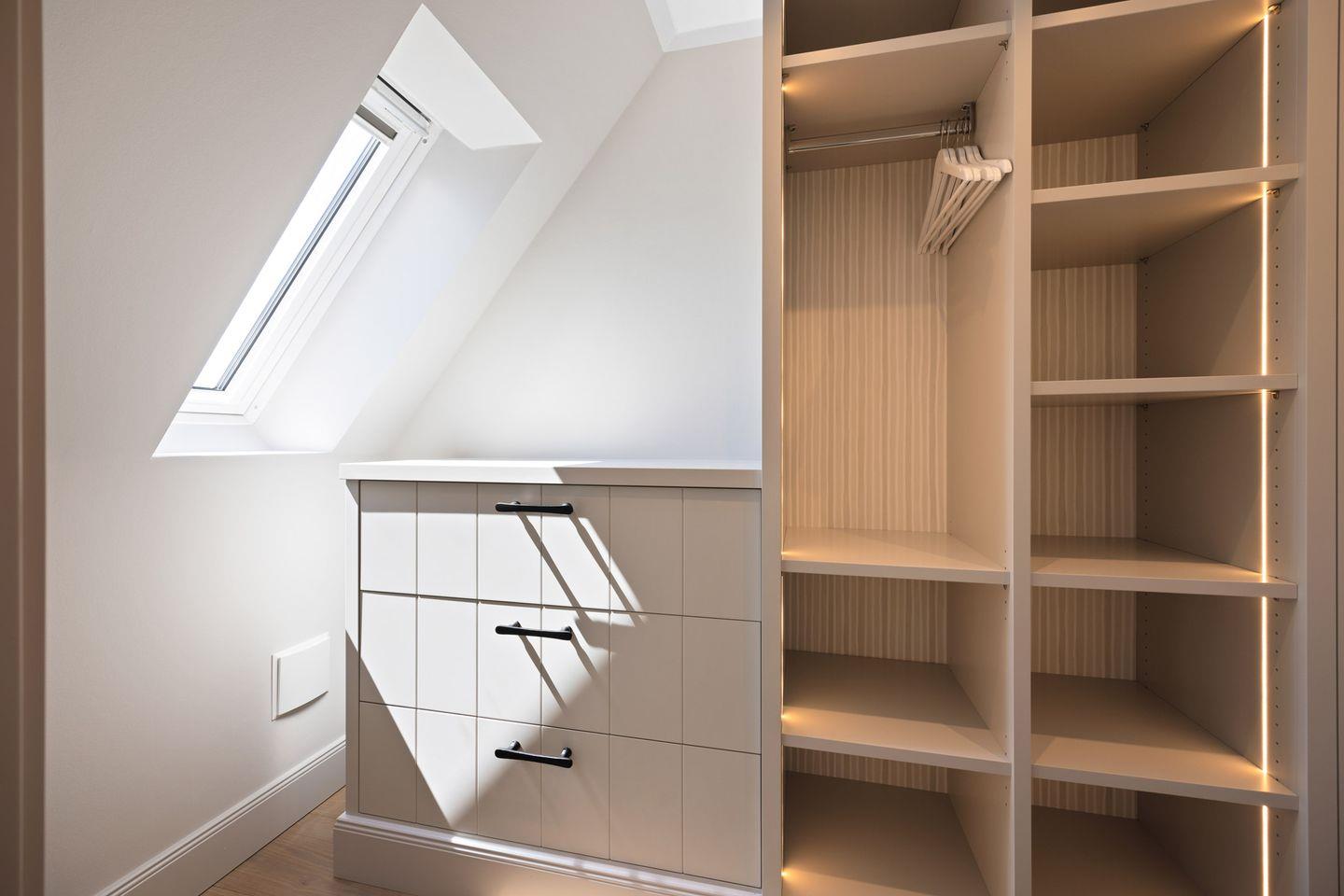 Die Doppelhaushälfte bietet ein stilvoll eingerichtetes Schlafzimmer: ausgestattet mit einem komfortablen Boxspringbett sowie einem eigenen Ankleideraum ausgestattet. So genießen Sie höchsten Komfort und erholsame Nächte.