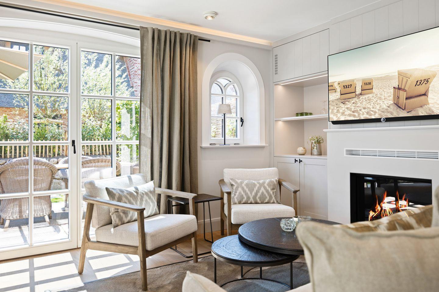 Luxuriöse Doppelhaushälfte in List mit Sauna, Kamin, Garten und Blick auf das Wattenmeer.