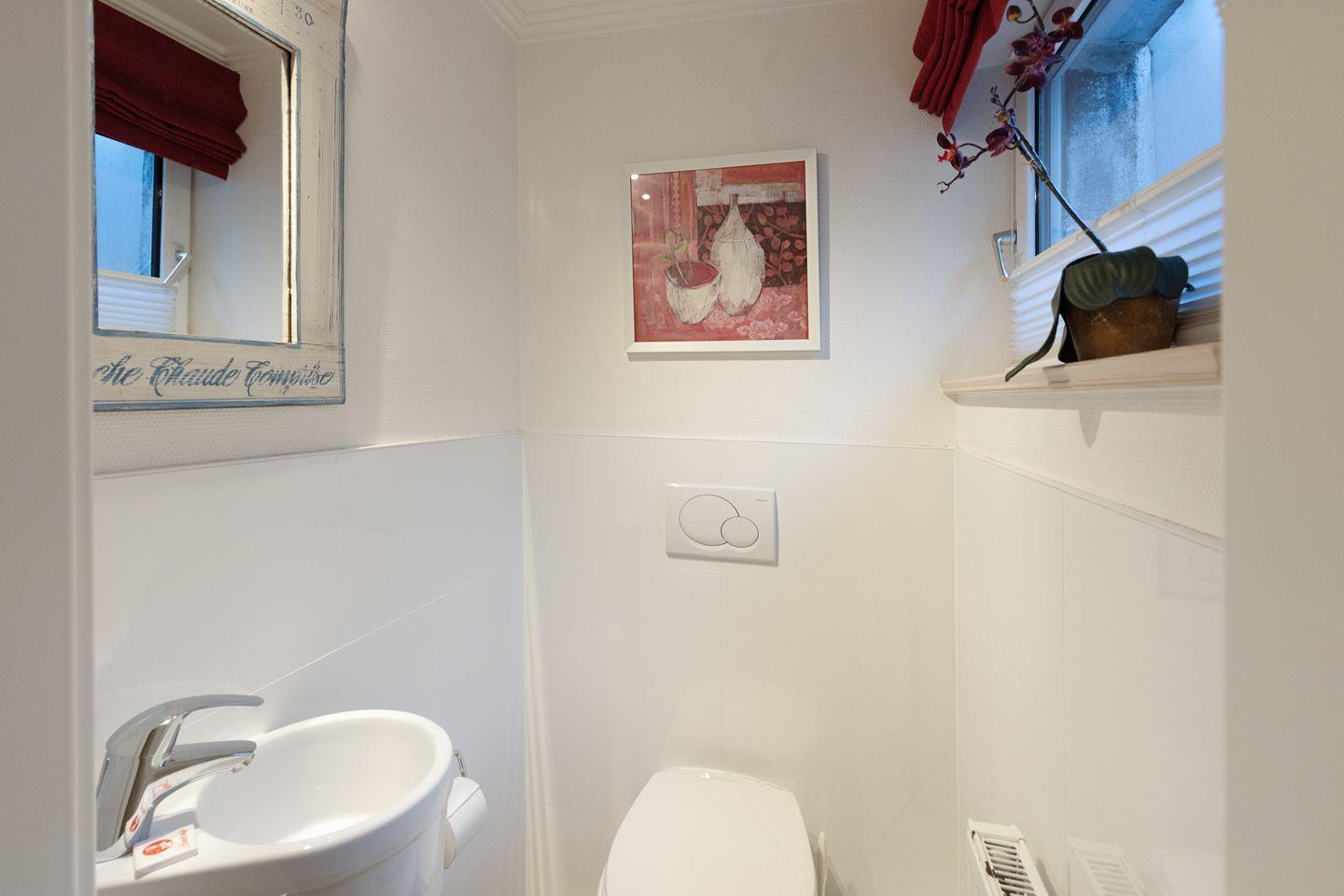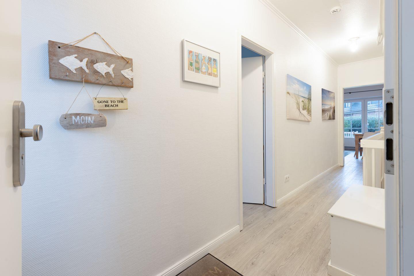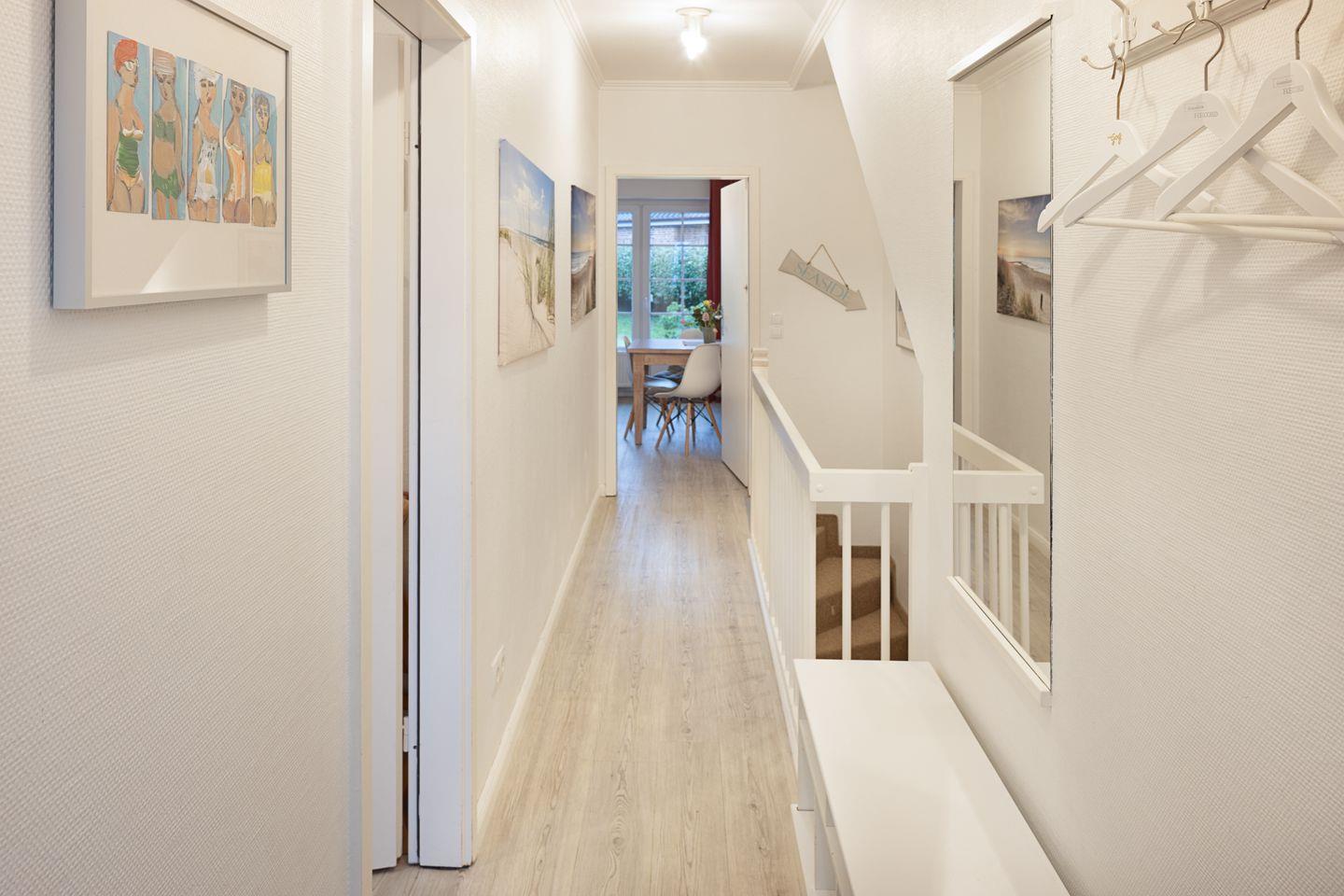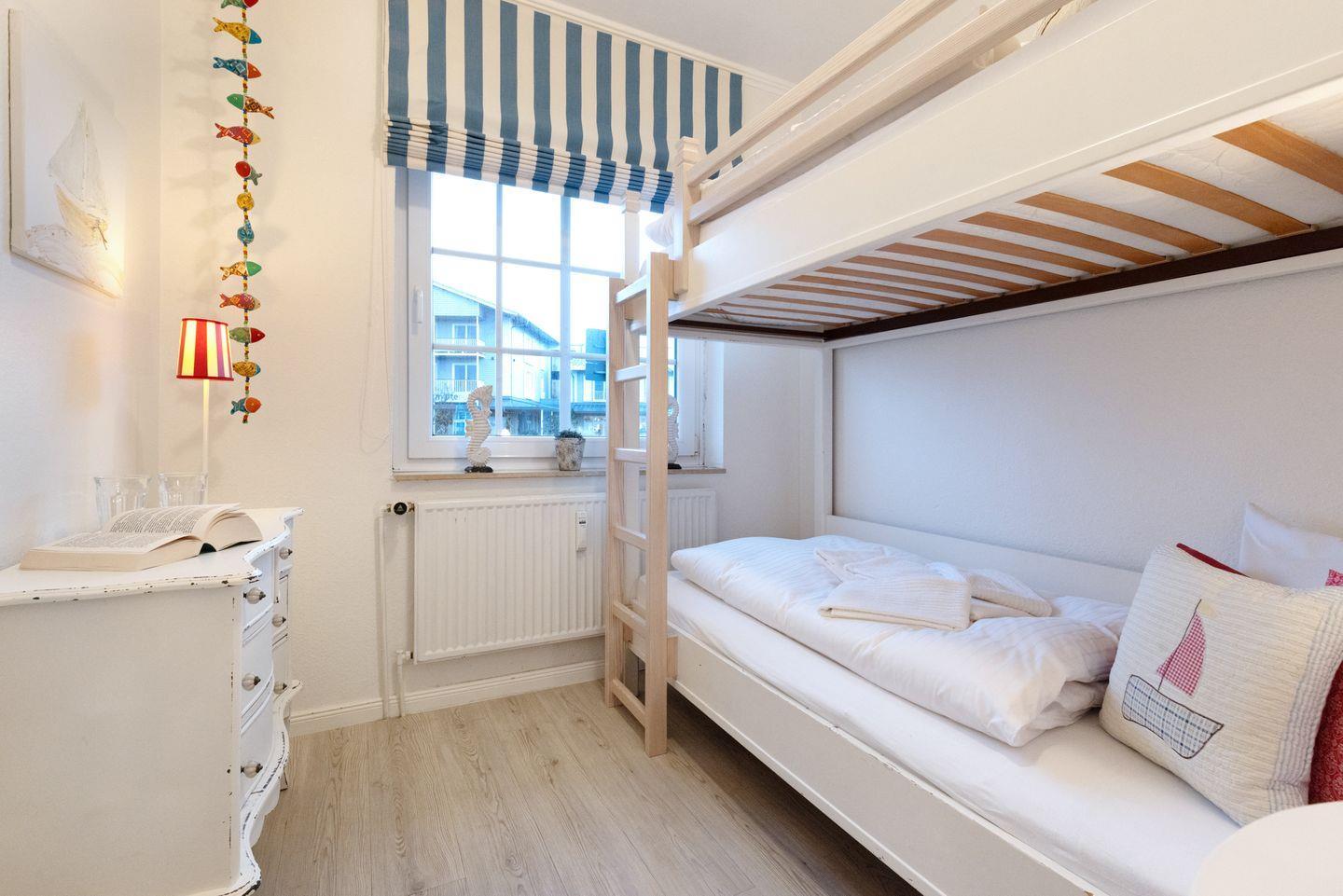 Auf der mit Gartenmöbeln ausgestatteten Terrasse finden Sie auch einen Strandkorb. Der hübsch gestaltete Flur führt nach unten, wo Sie zwei weitere Schlafzimmer finden, die jeweils mit Doppelbetten ausgestattet sind. Auch das Badezimmer und ein zusätzliches Gäste-WC finden Sie in dieser Ebene.