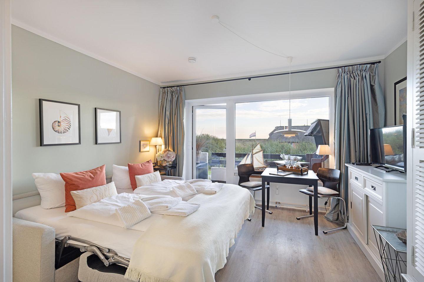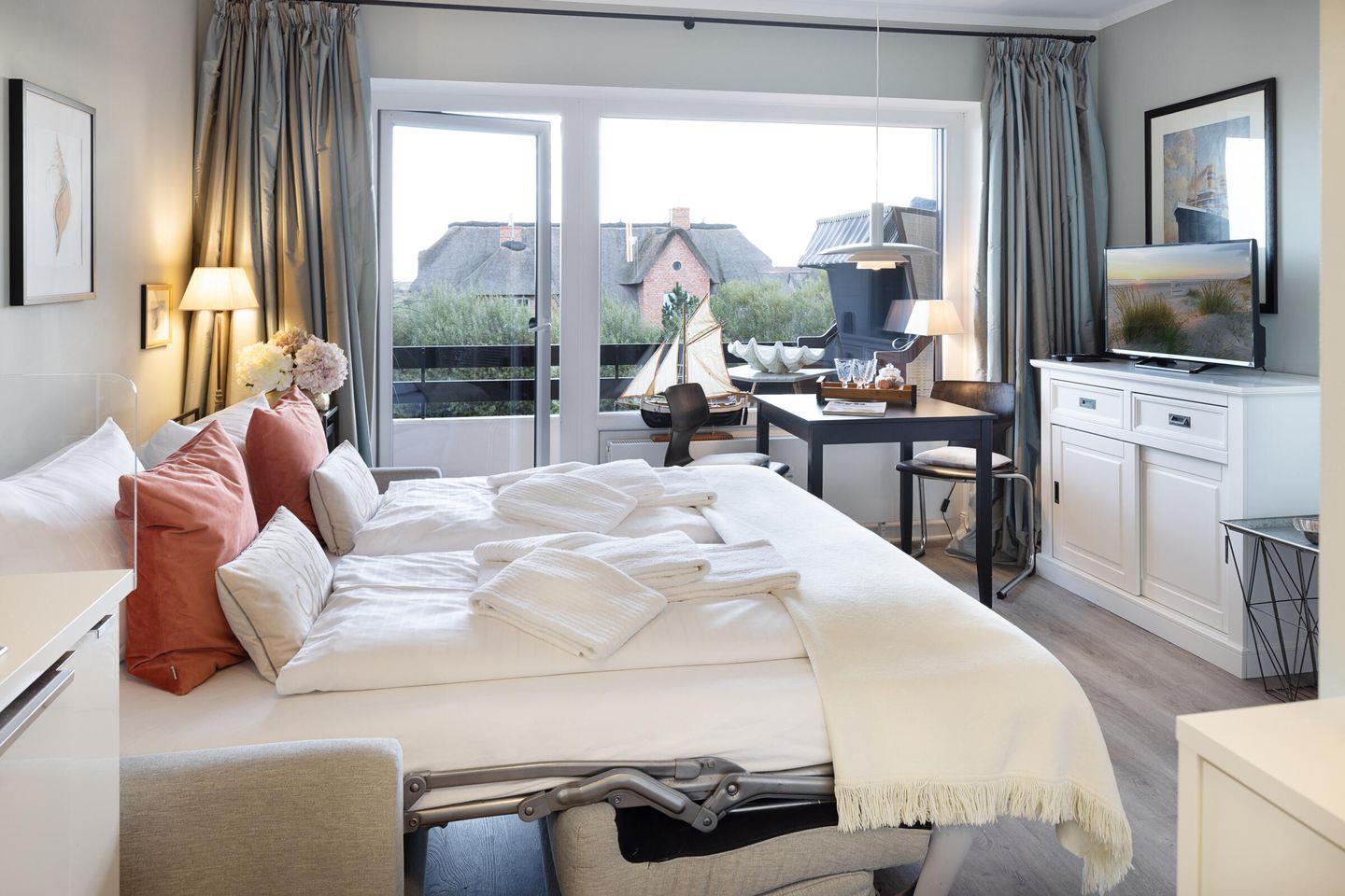 Gemütliche Ferienwohnung mit Balkon und Meerblick in List auf Sylt, ideal für entspannte Tage an der Nordsee.